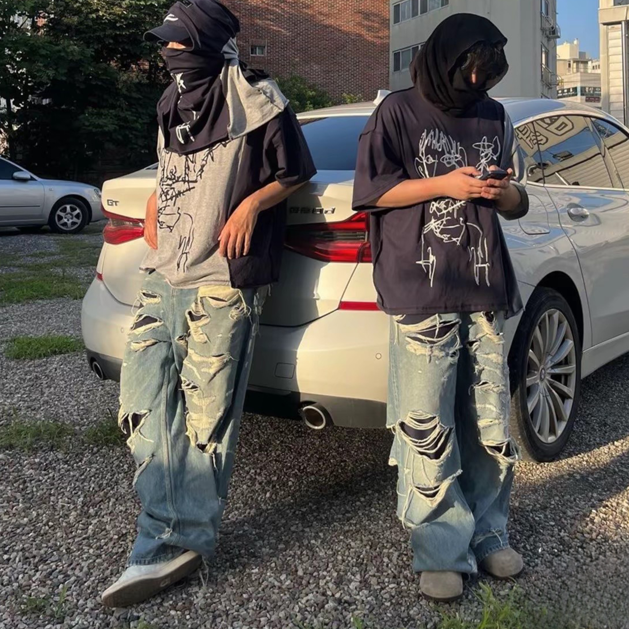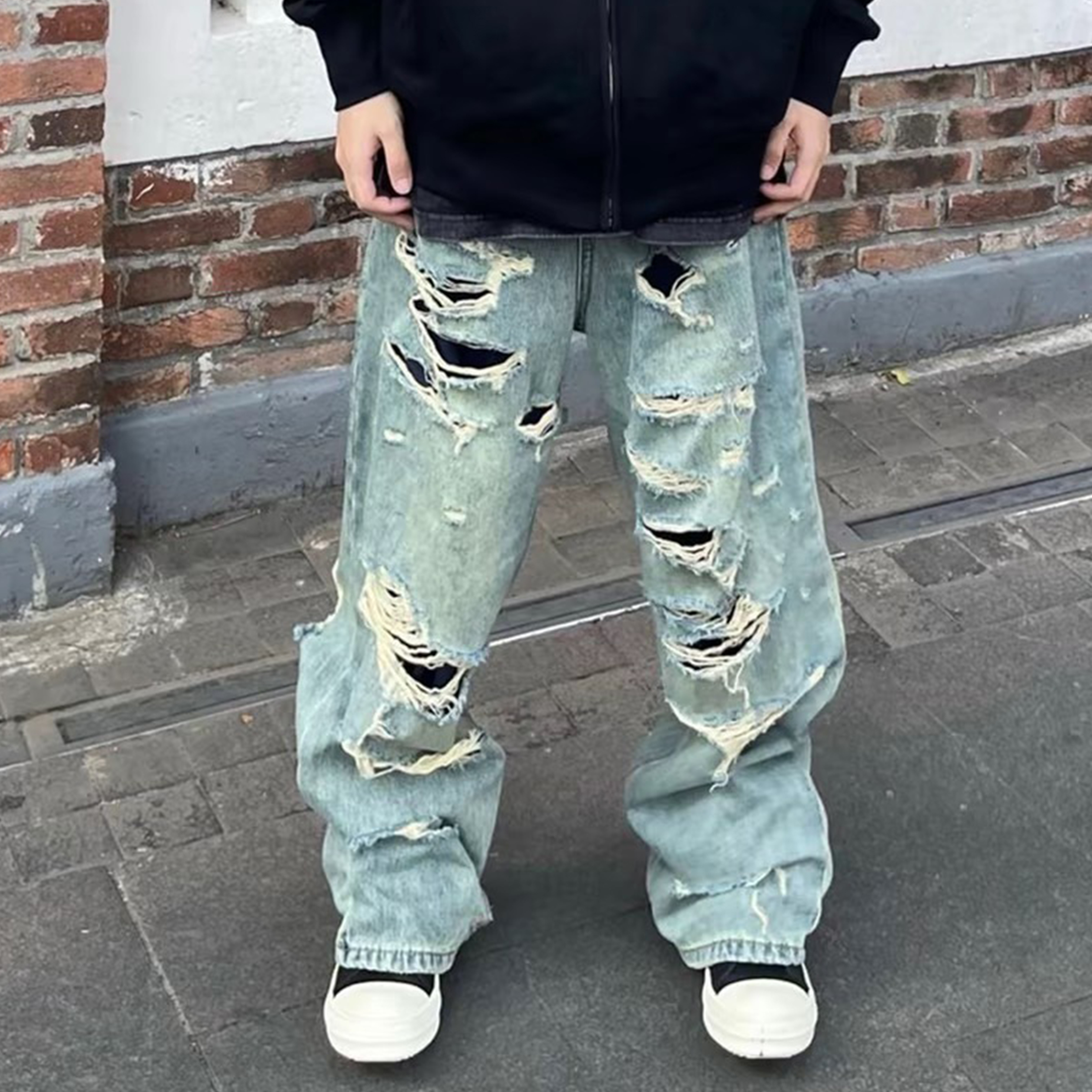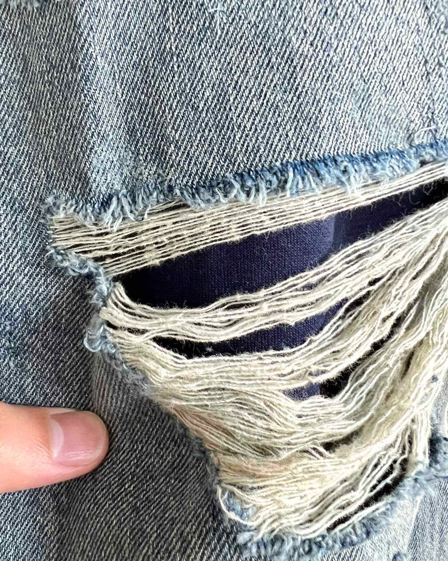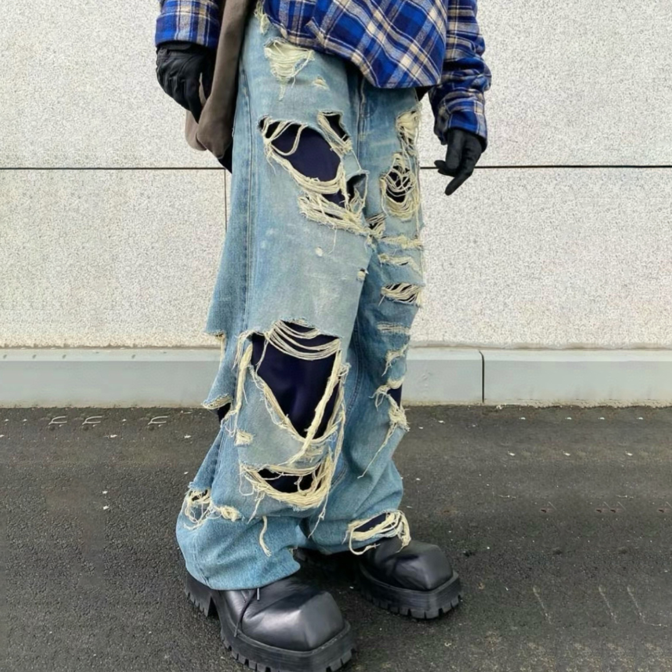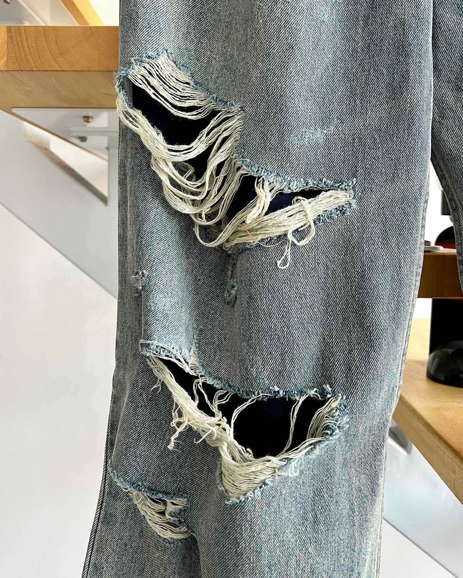 NIGO Balenciaga Men's Women's Four Seasons Fashion Destroyed Denim Trousers Blue Double Layer Casual Fit Straight Jeans Pants Ngvp #nigo8933