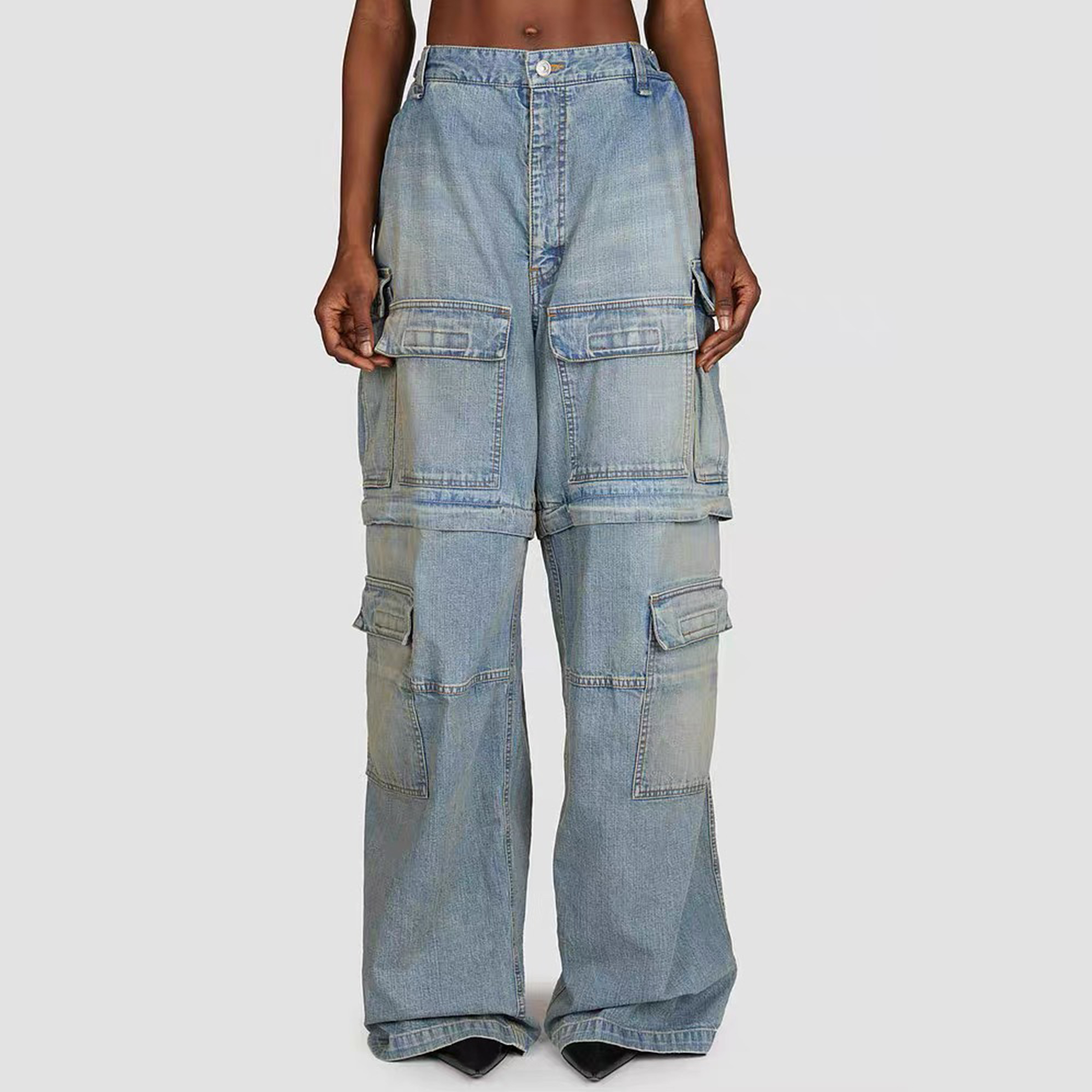NIGO Balenciaga Men's Women's Four Seasons Removable Multi-pocket Denim Workwear Pants High Street Casual Loose Ngvp #nigo8321