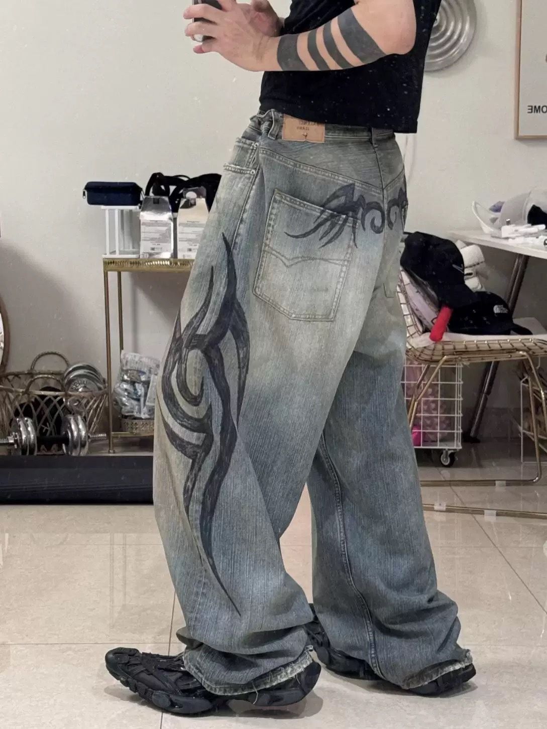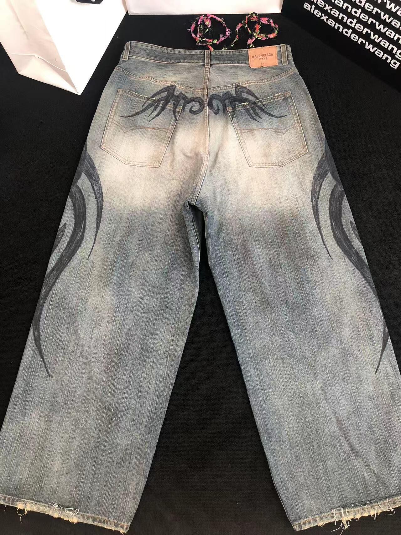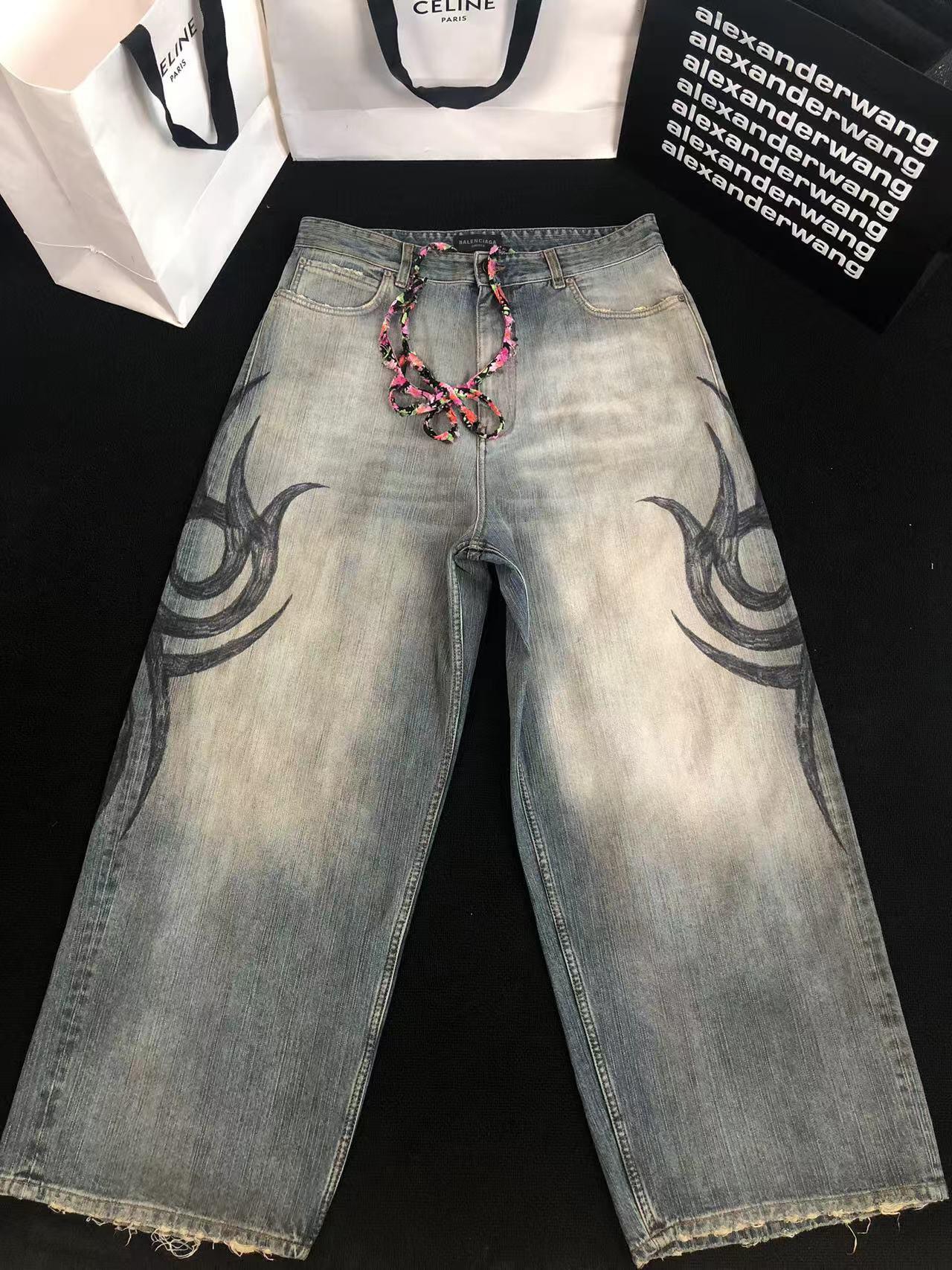 NIGO Balenciaga Men's Women's Four Seasons Y2K Logo Printed Cotton Mid Waist Loose Casual Denim Pants Ngvp #nigo9524