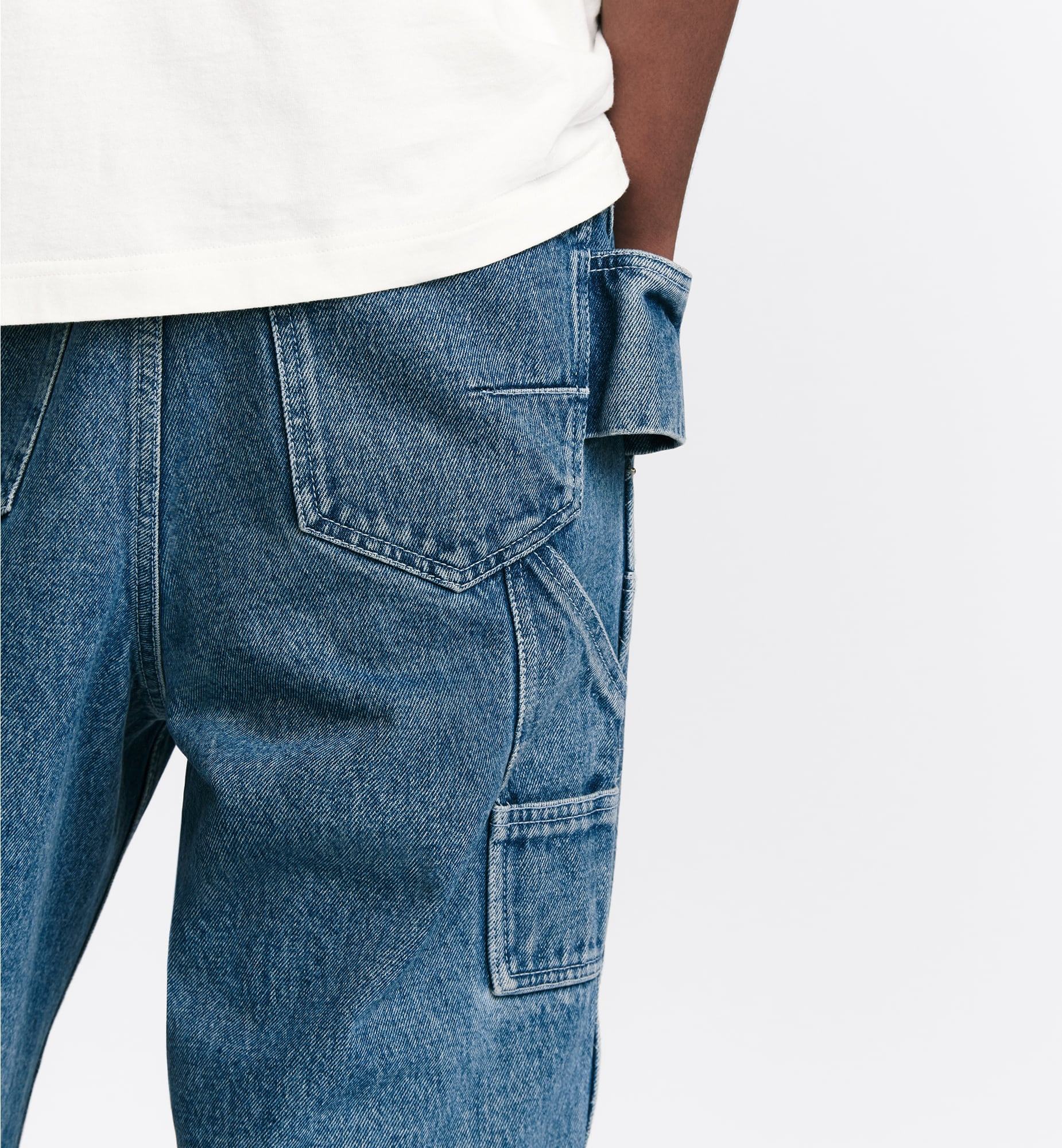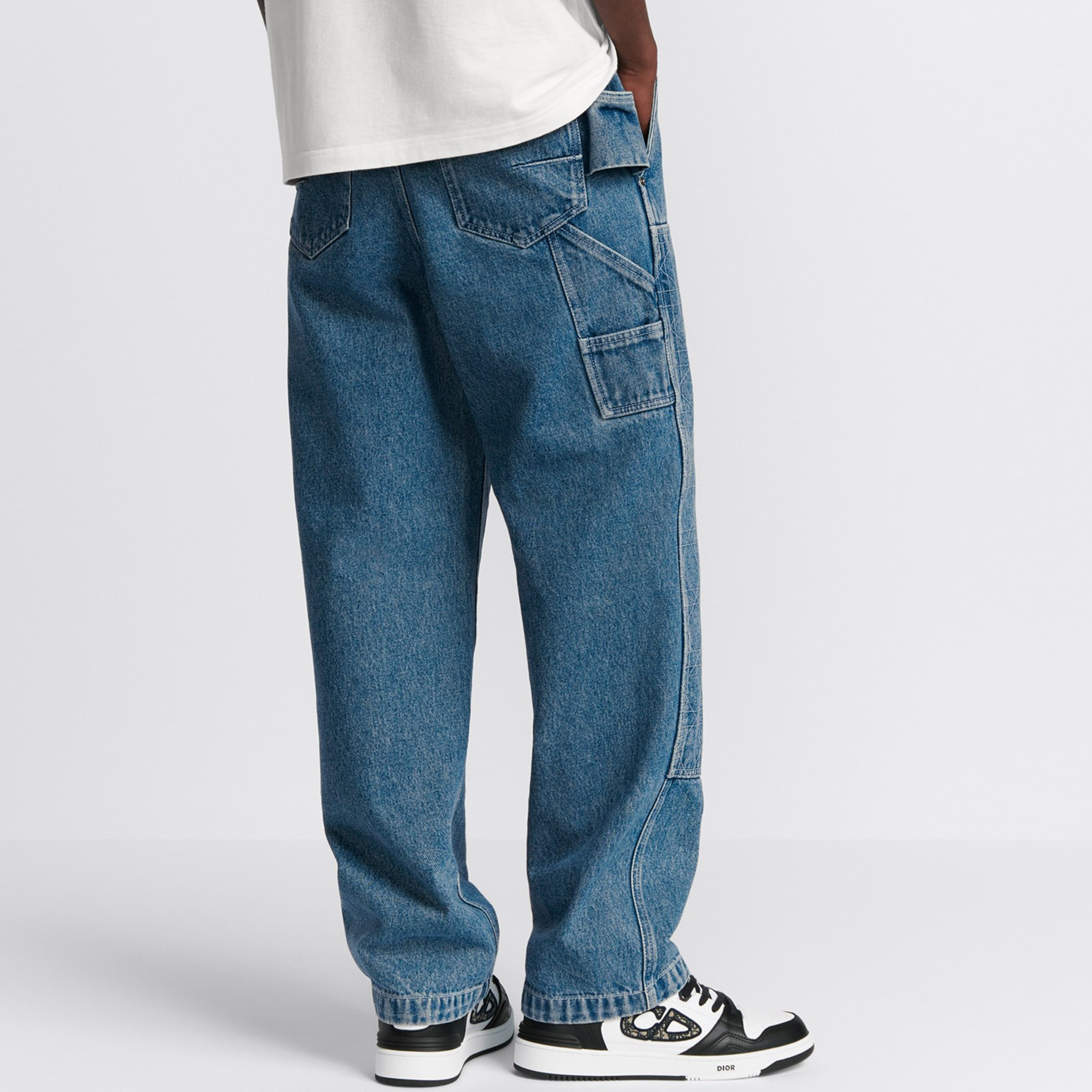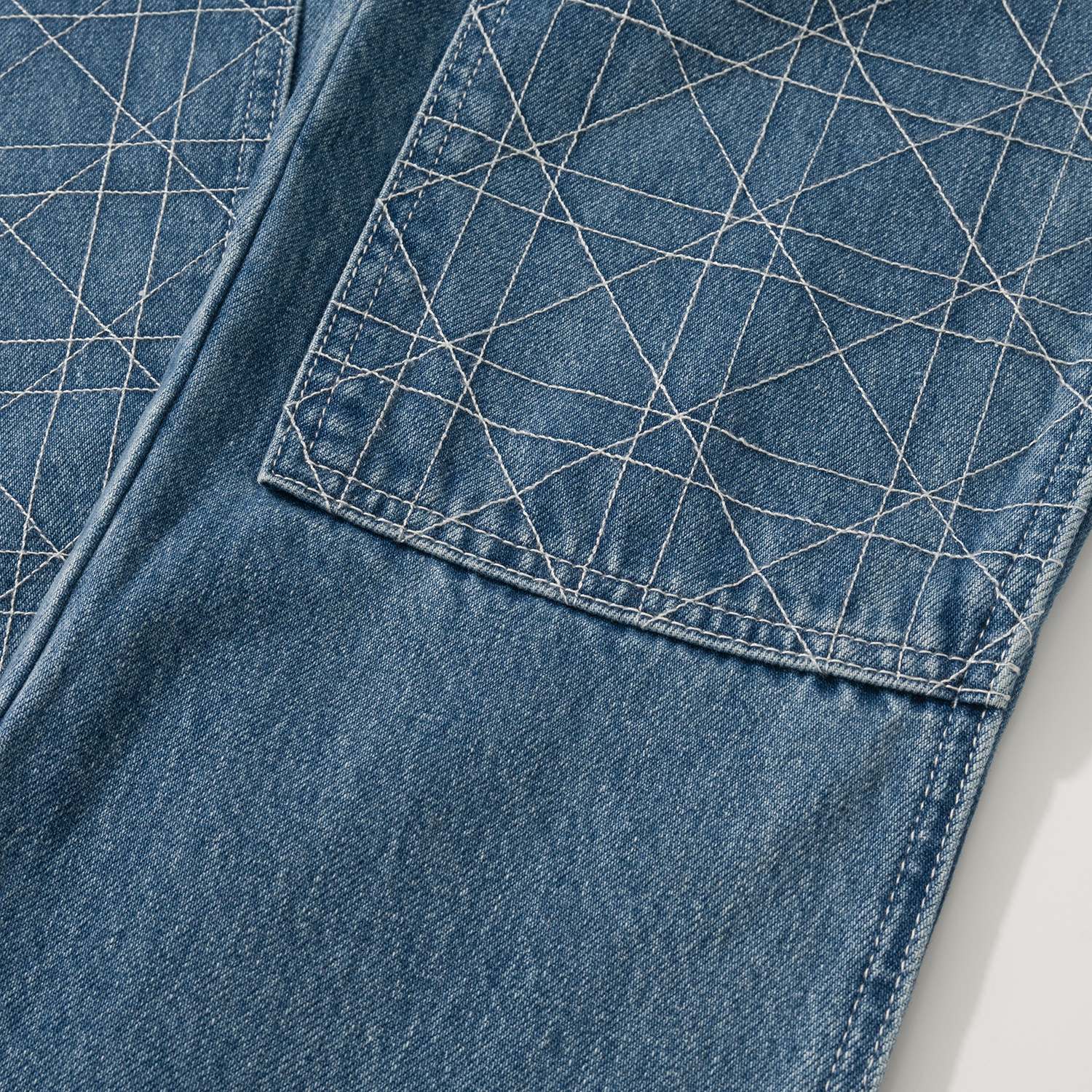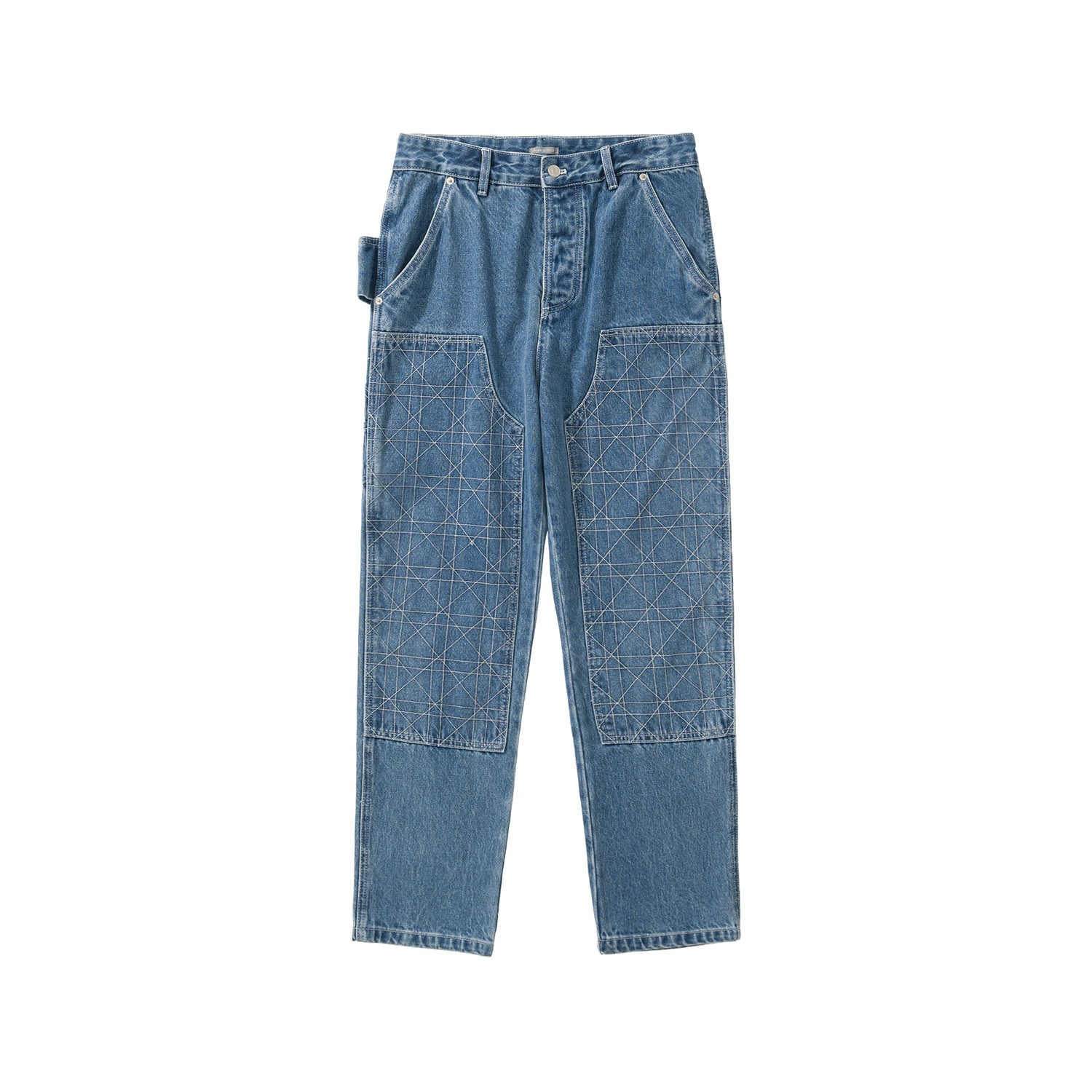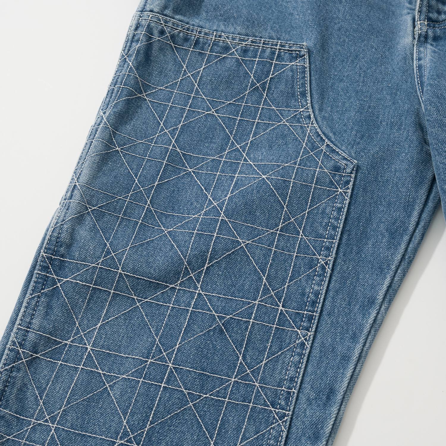 NIGO Dior Men's Seasonal Blue Cotton Plaid Line Workwear Jeans Casual Fashion Straight Leg Pants #nigo71294
