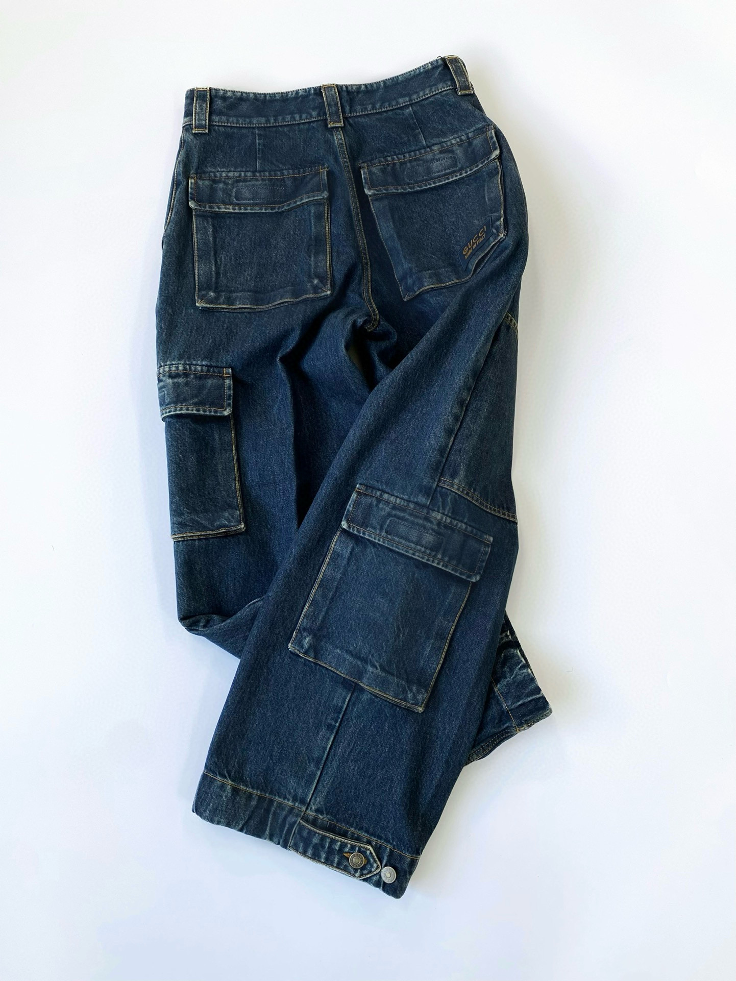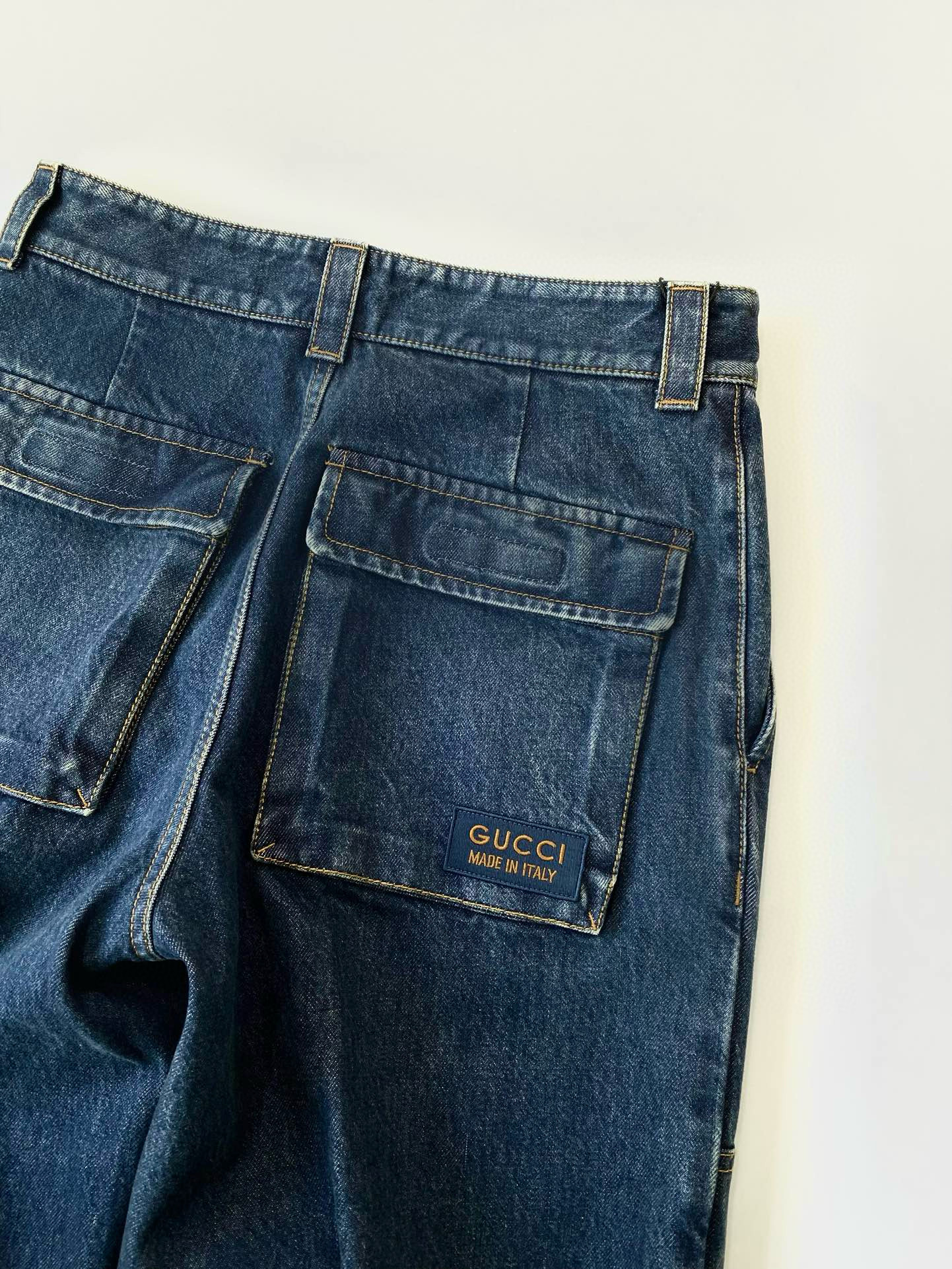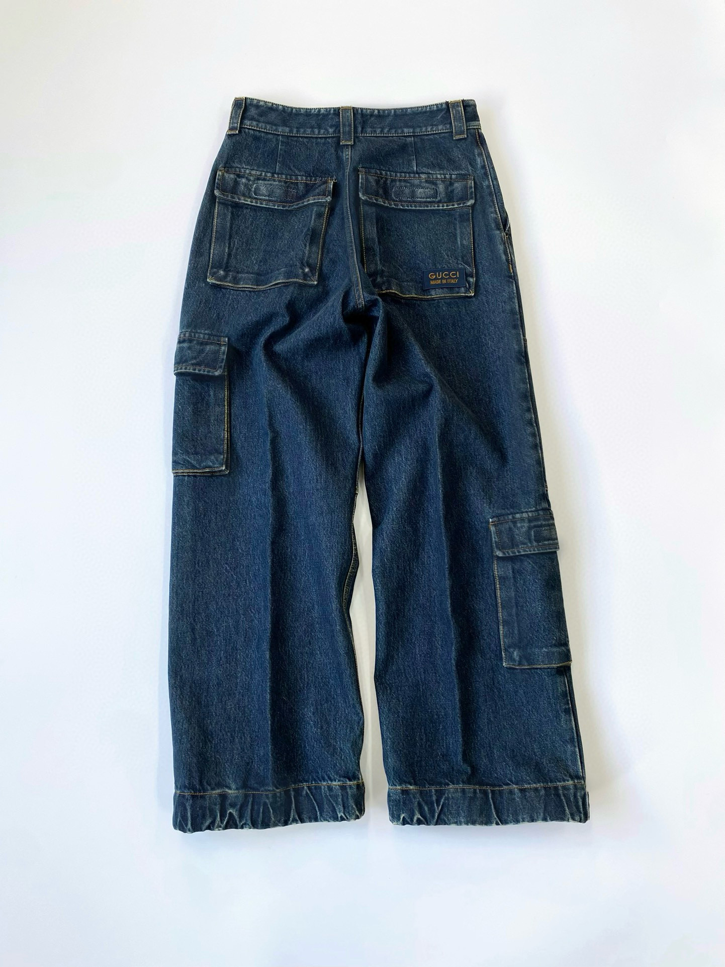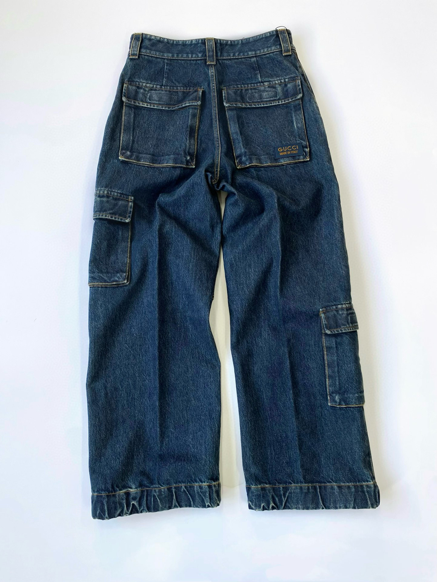 NIGO Gucci Men's Clothes For All Seasons Dark Blue Zipper Pocket Cropped Casual Jeans Pants #nigo98383