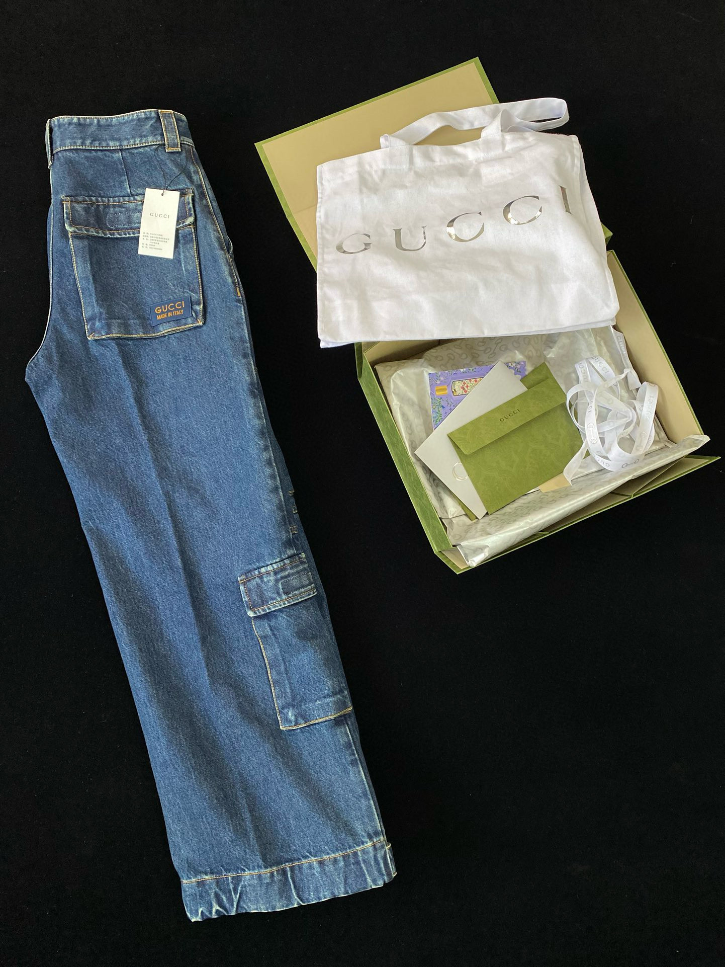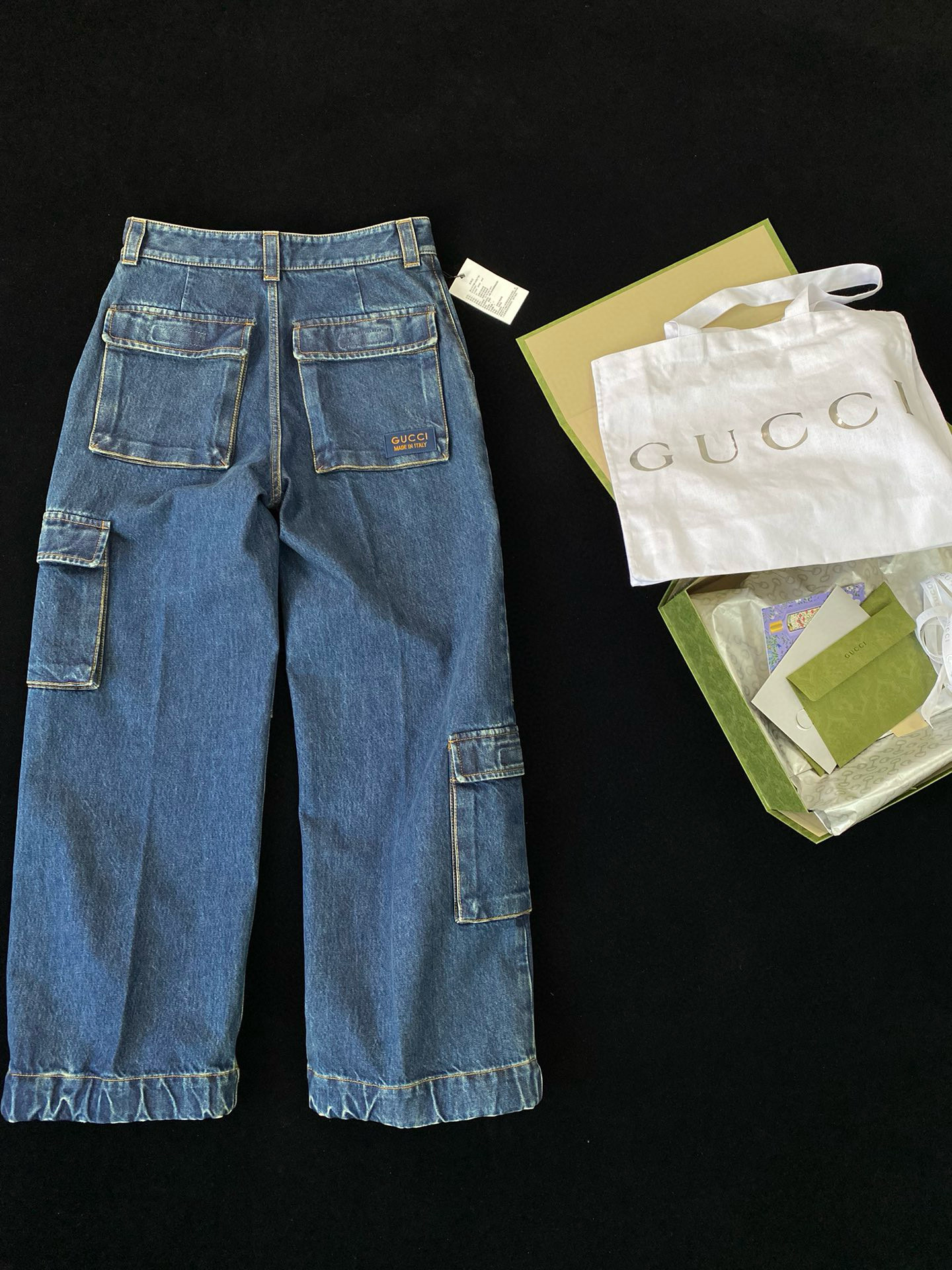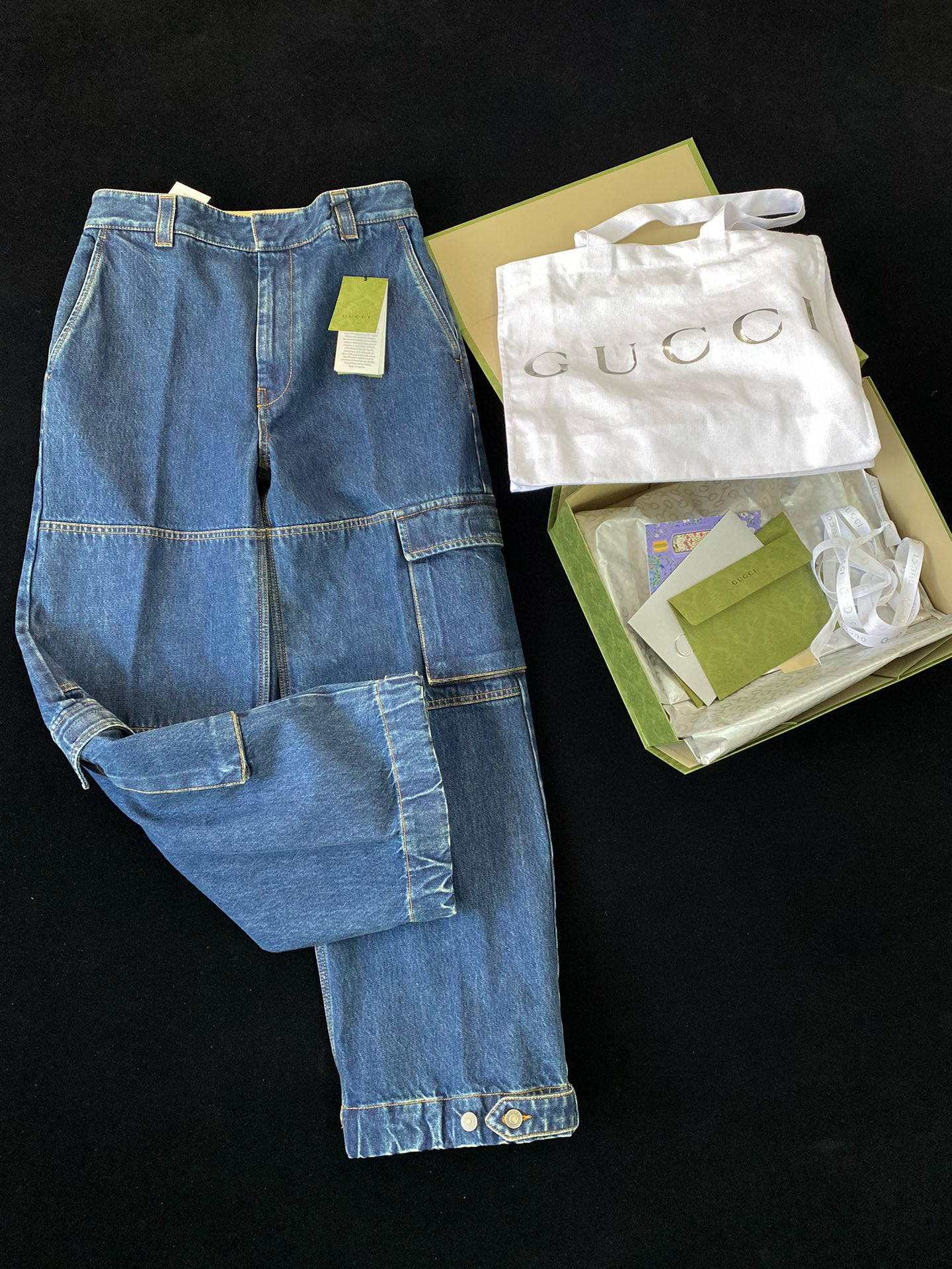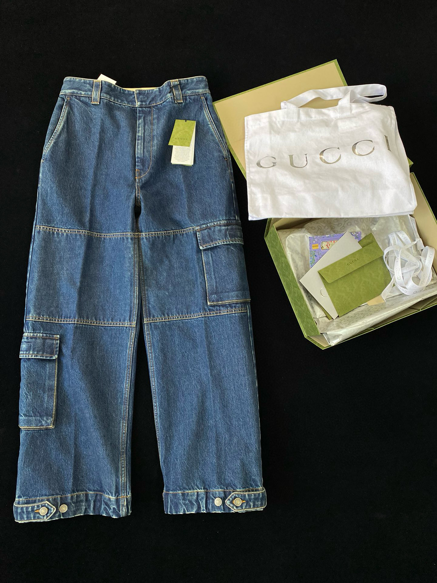 NIGO Gucci Men's Clothes For All Seasons Dark Blue Zipper Pocket Cropped Casual Jeans Pants #nigo98383