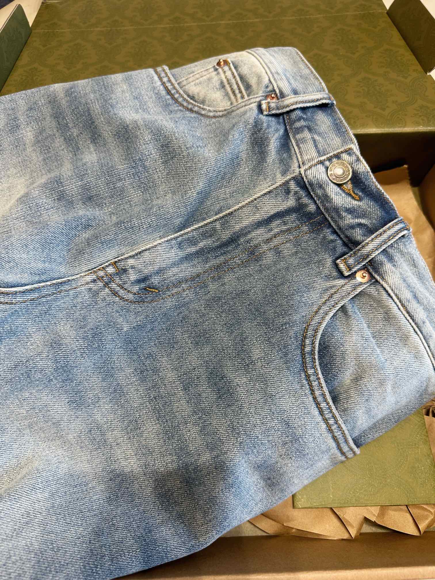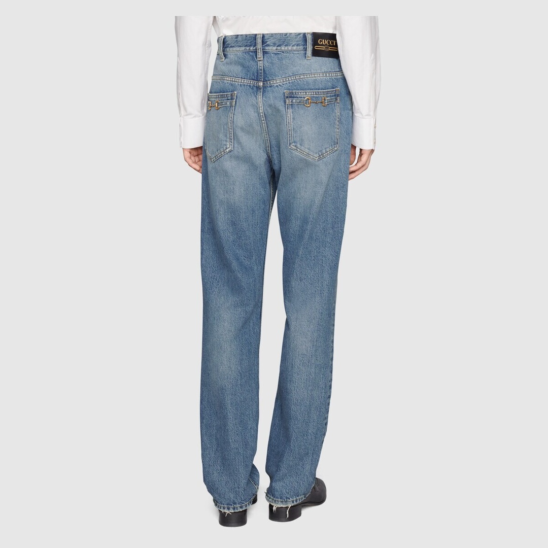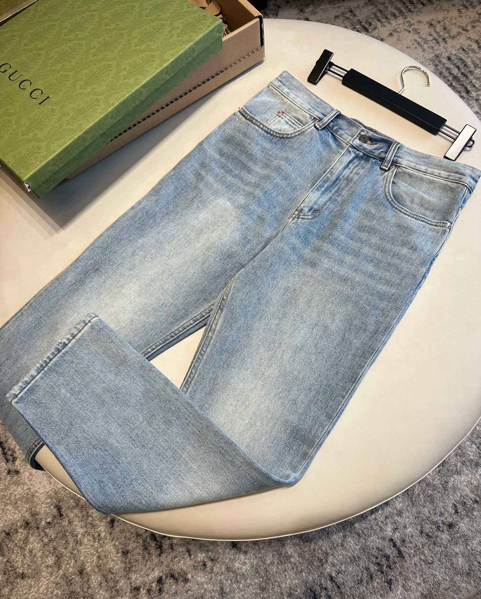 NIGO Gucci Men's Summer Logo Blue Gradient Washed Retro Casual Straight Leg Denim Pants #nigo71265