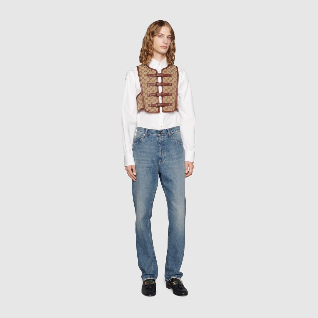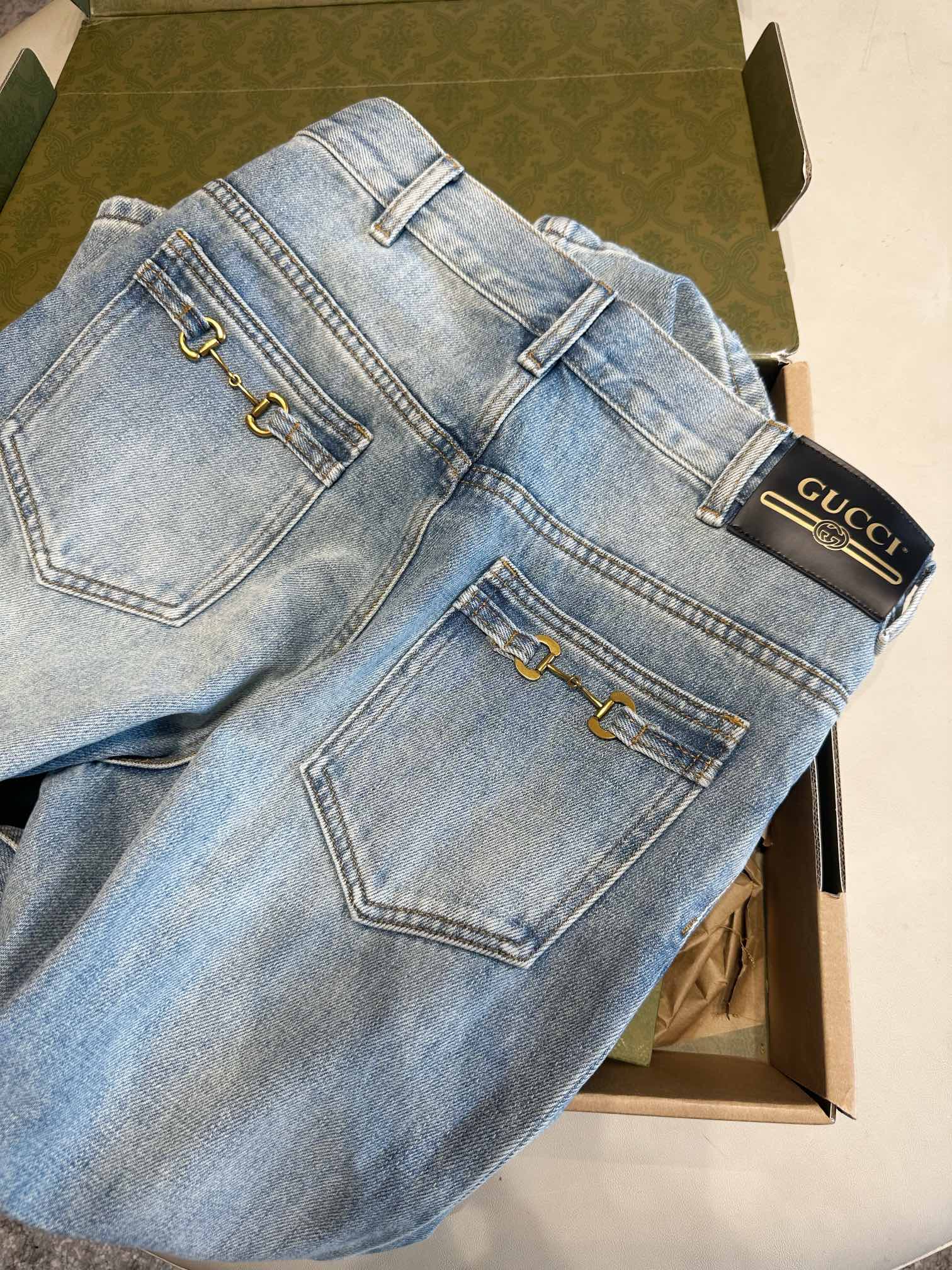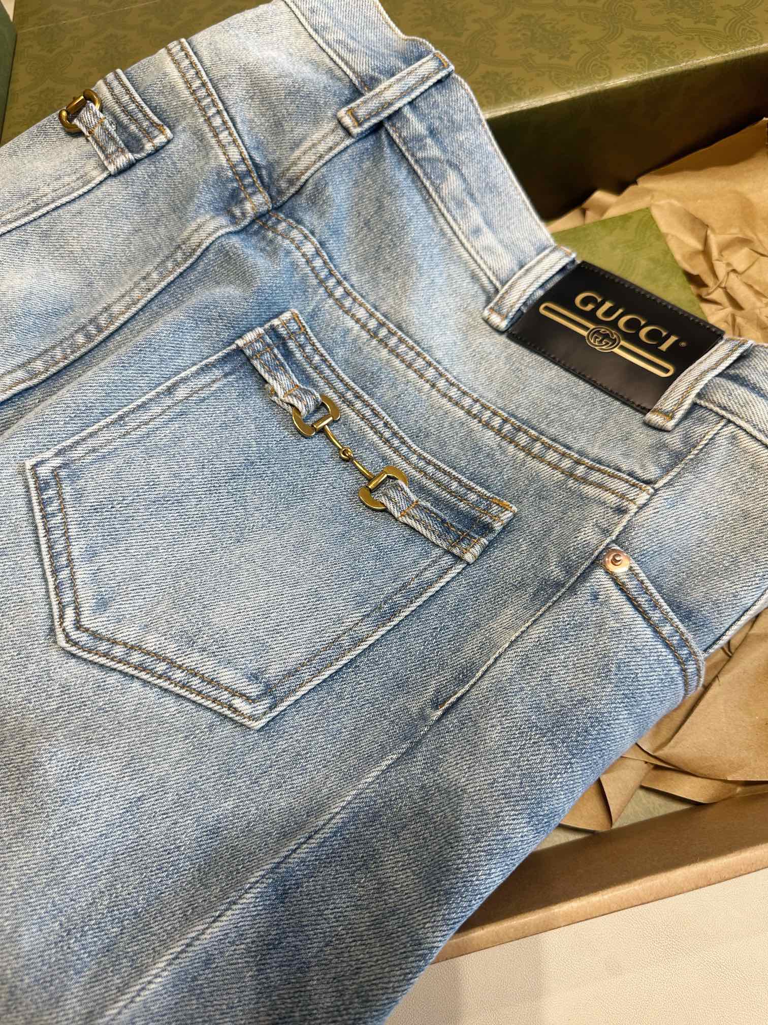 NIGO Gucci Men's Summer Logo Blue Gradient Washed Retro Casual Straight Leg Denim Pants #nigo71265