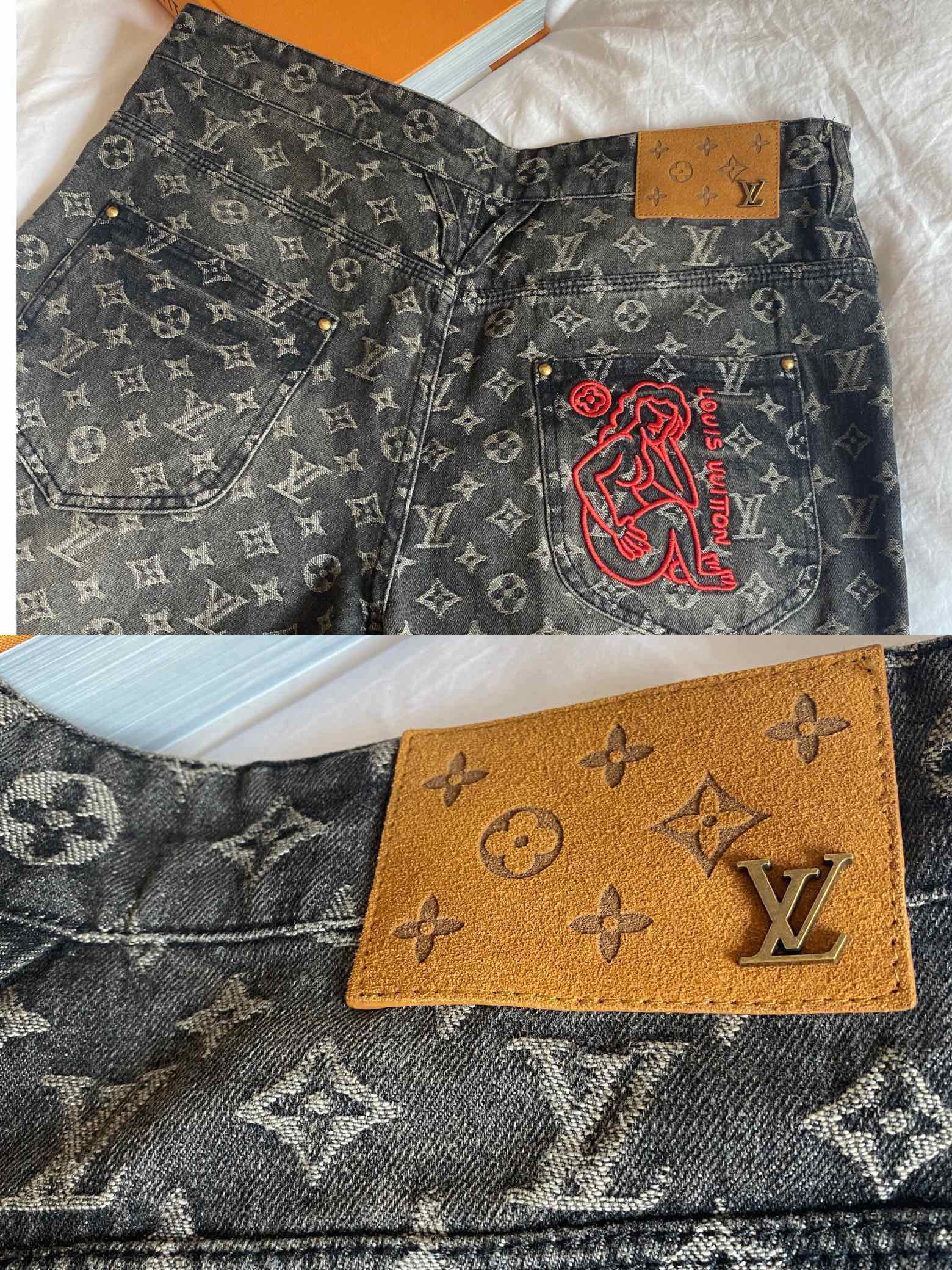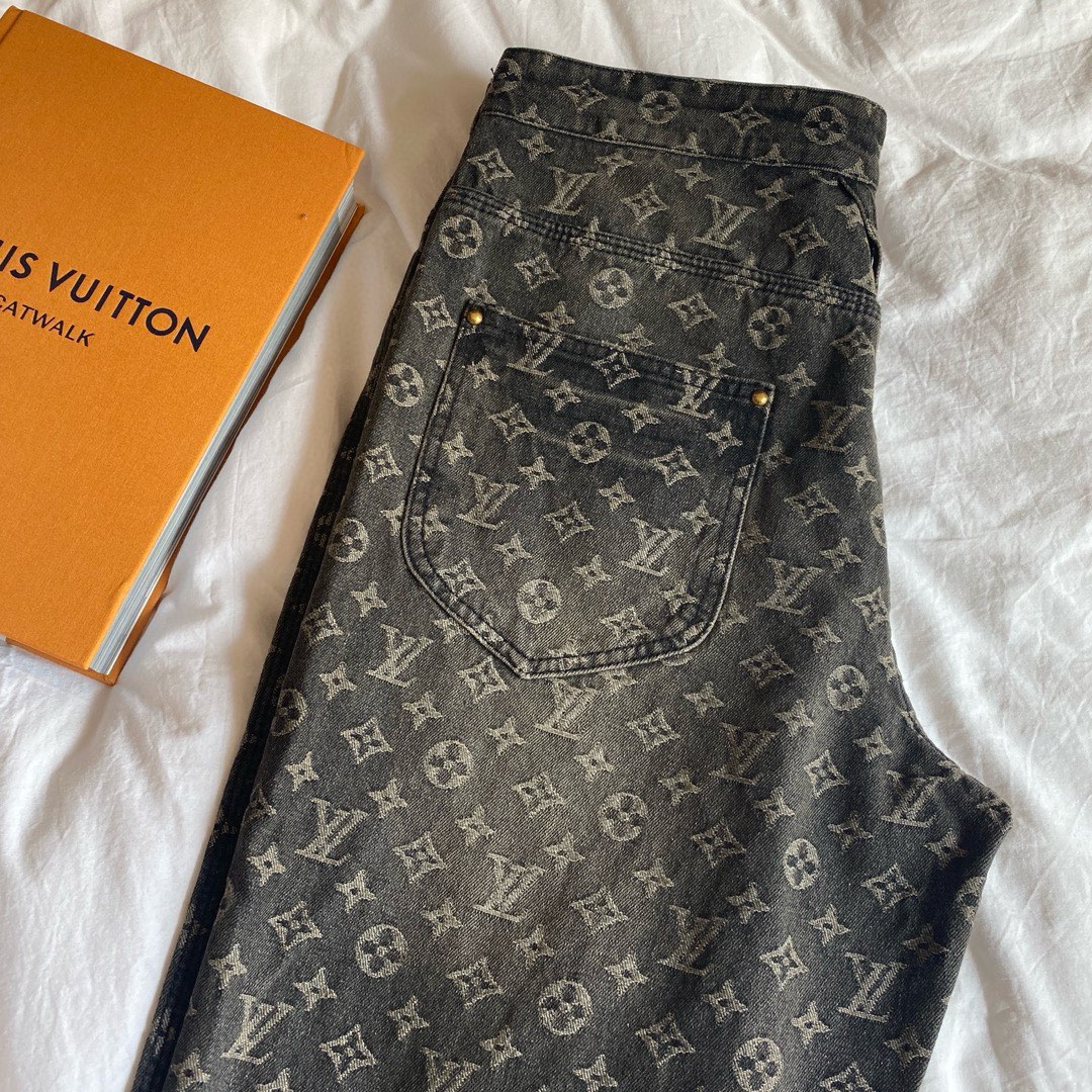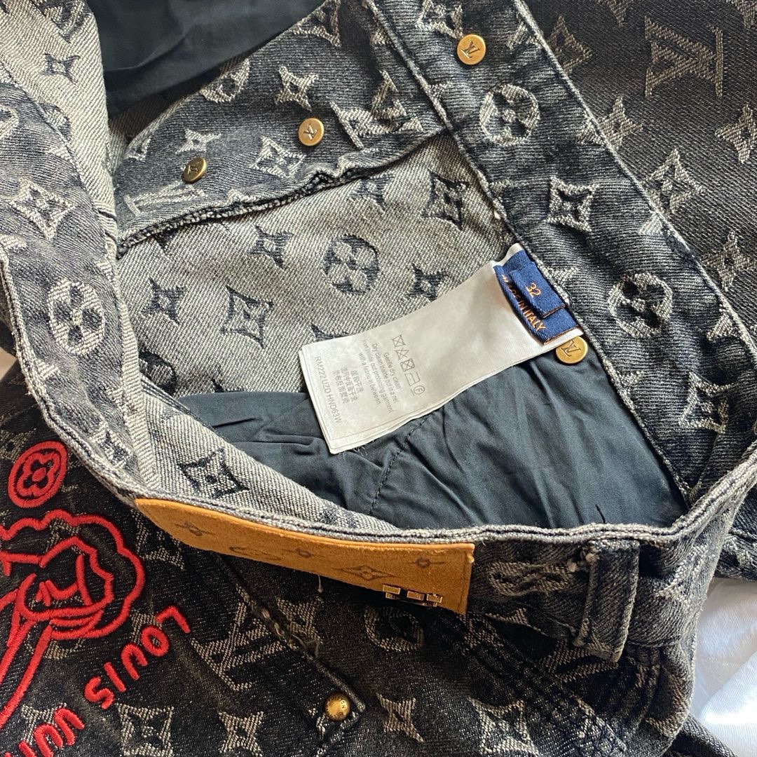 NIGO Louis Vuitton Men's Retro Washed And Embroidered Monogram Pattern Loose Jeans Spring And Autumn Fashion High Street Straight Wide Leg TrousersCasual Pants #nigo71848