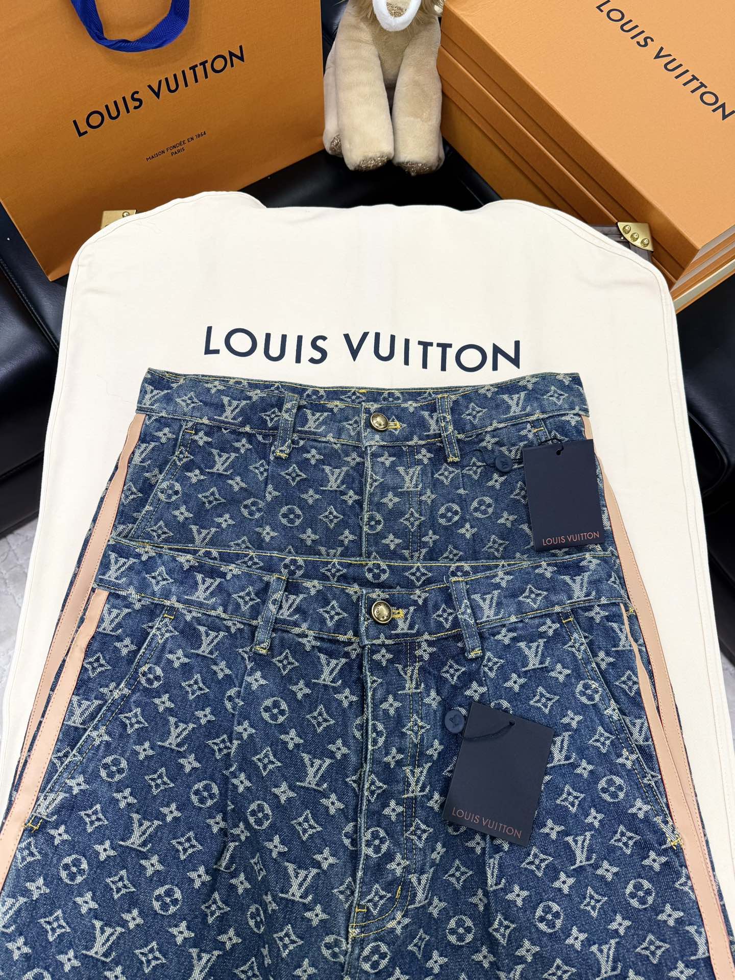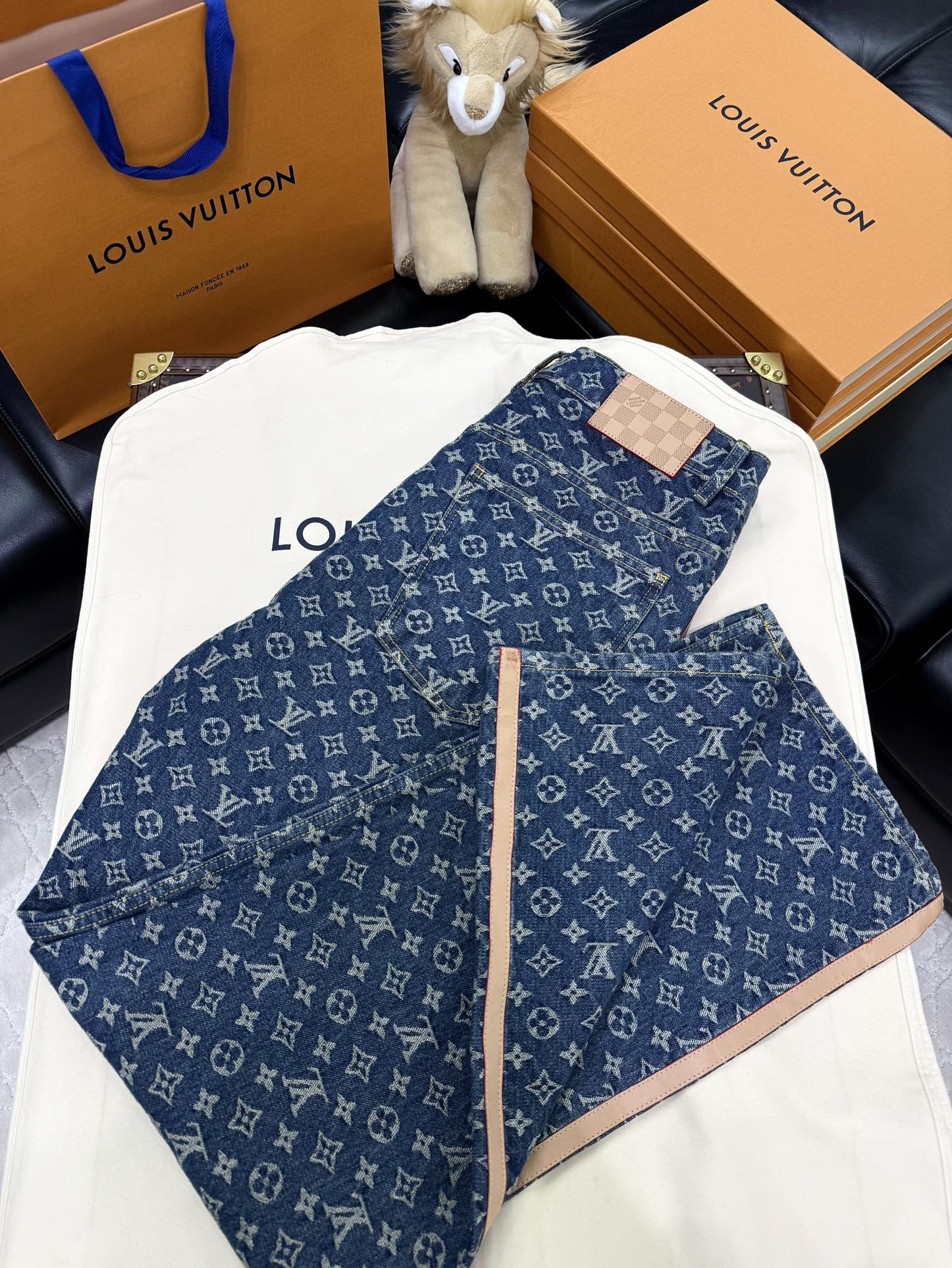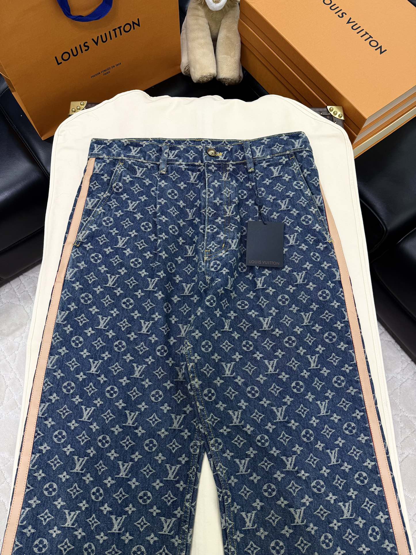 NIGO Louis Vuitton Men's Spring and Autumn Blue Cotton Monogrammed Full Print Jeans Pants #nigo74415