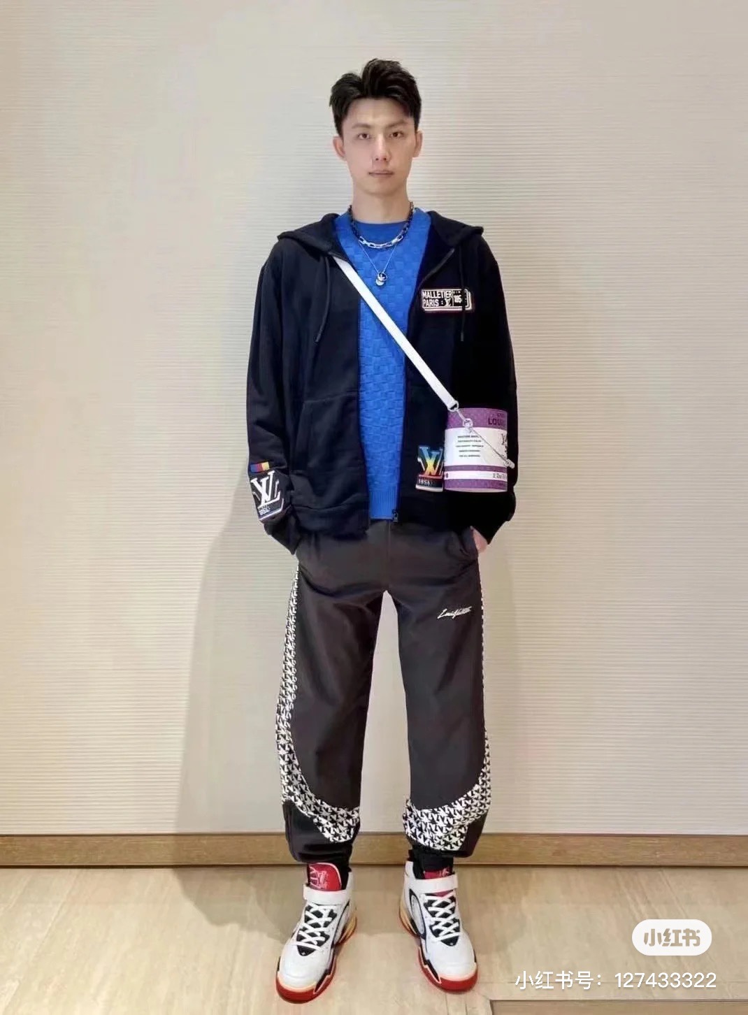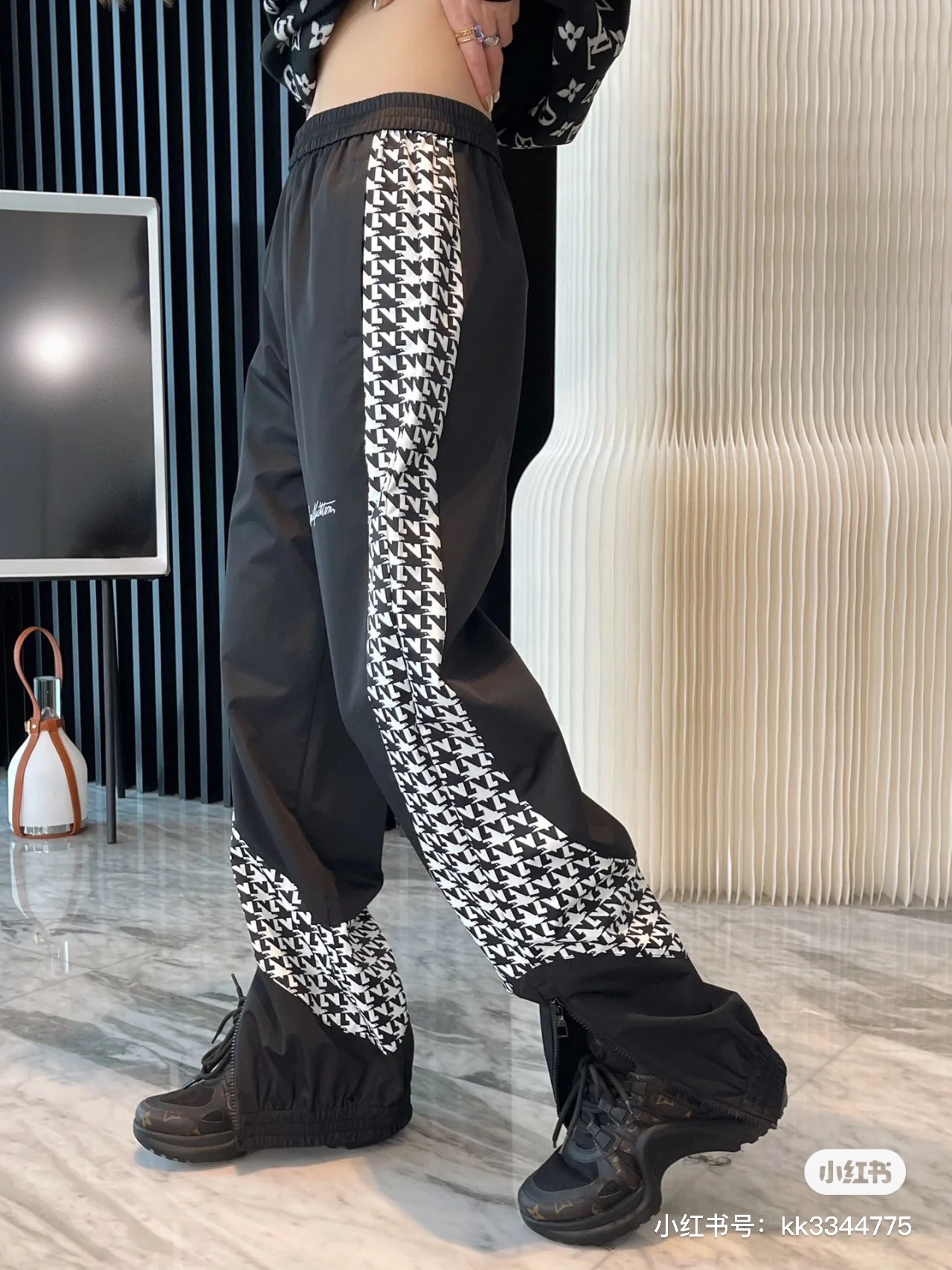 NIGO Louis Vuitton Men's Spring and Fall Thousand Bird Check Printed Embroidered Letter Logo Drawstring Casual Pants #nigo72822