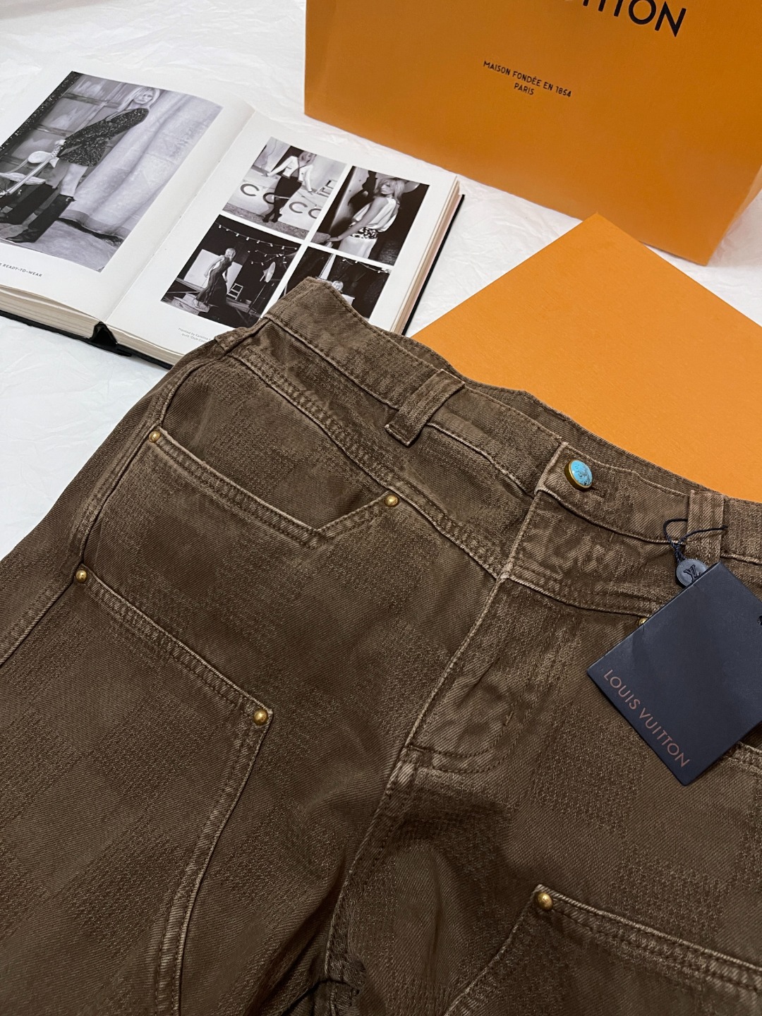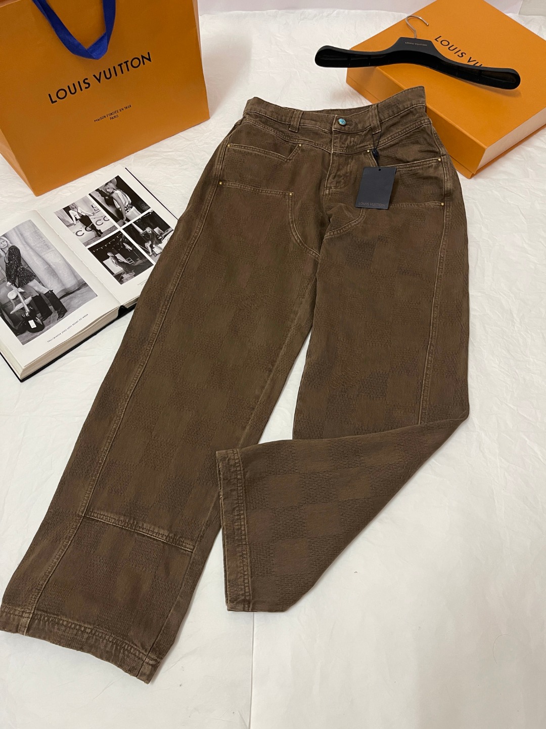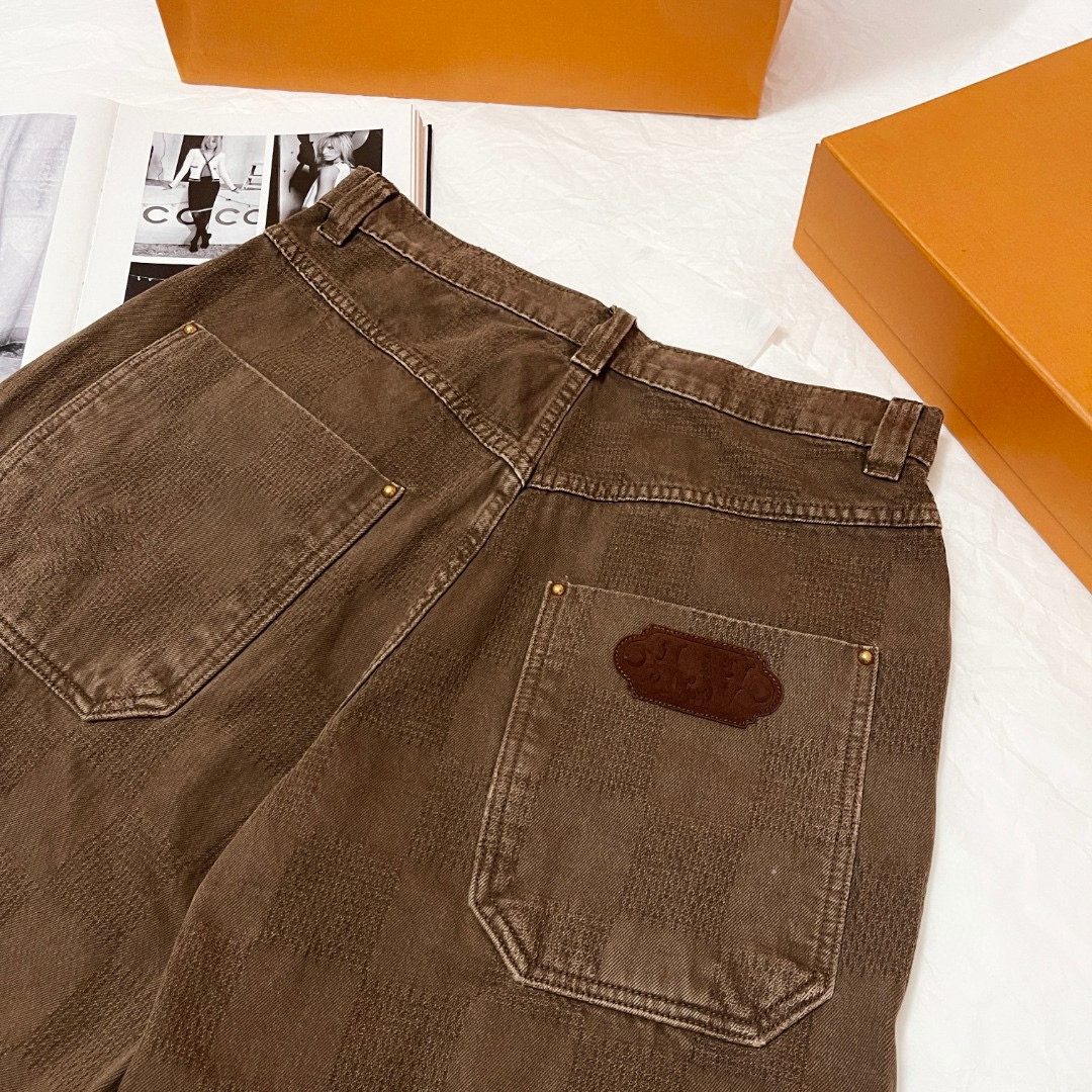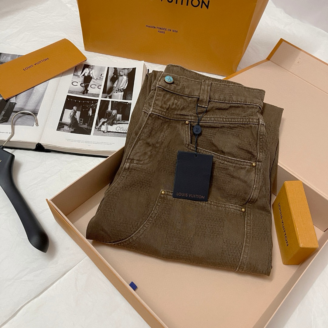 NIGO Louis Vuitton Men's Spring Autumn Brown Washed Effect Zipper Closure Straight Leg Jeans Pants #nigo75359