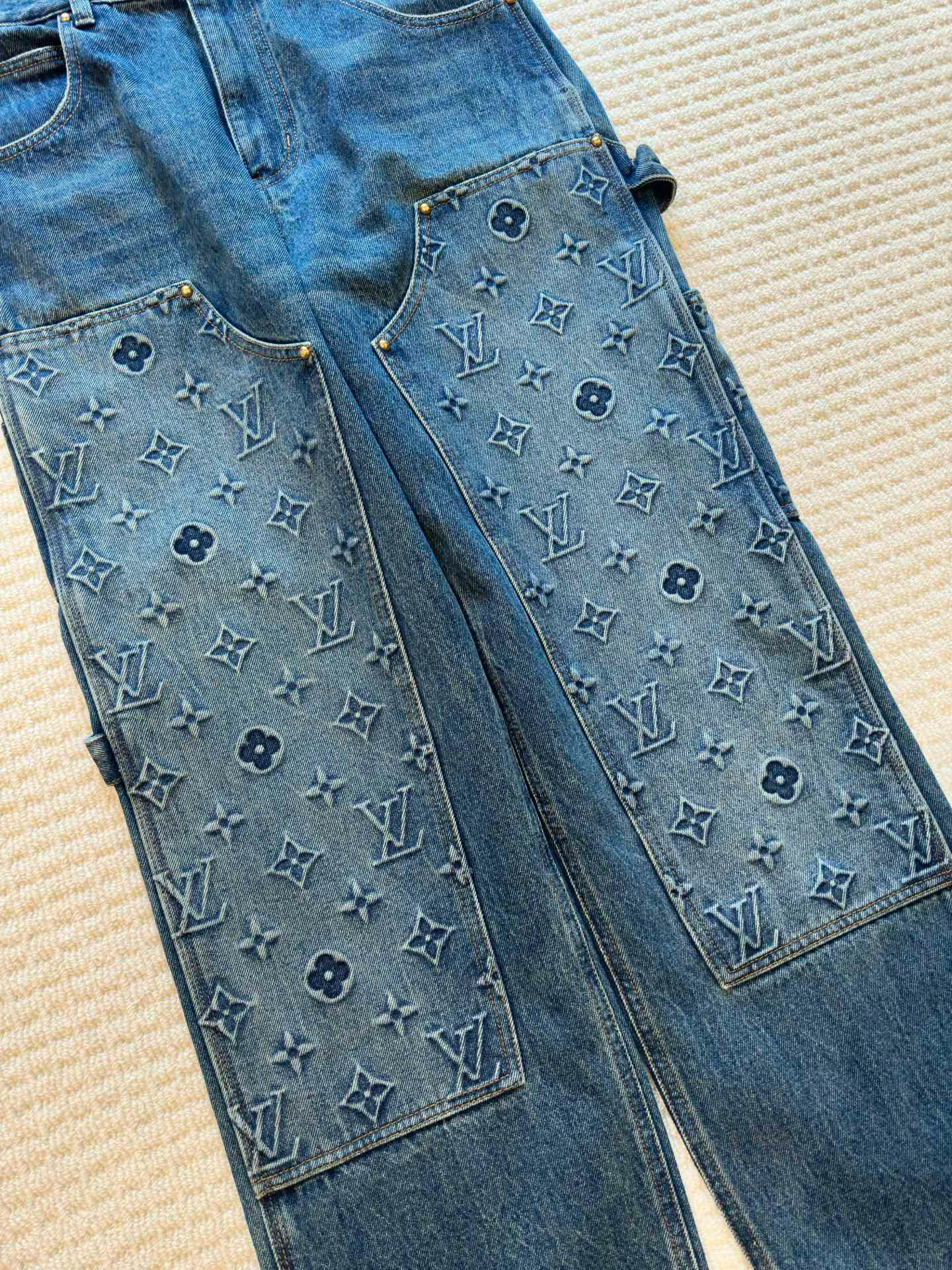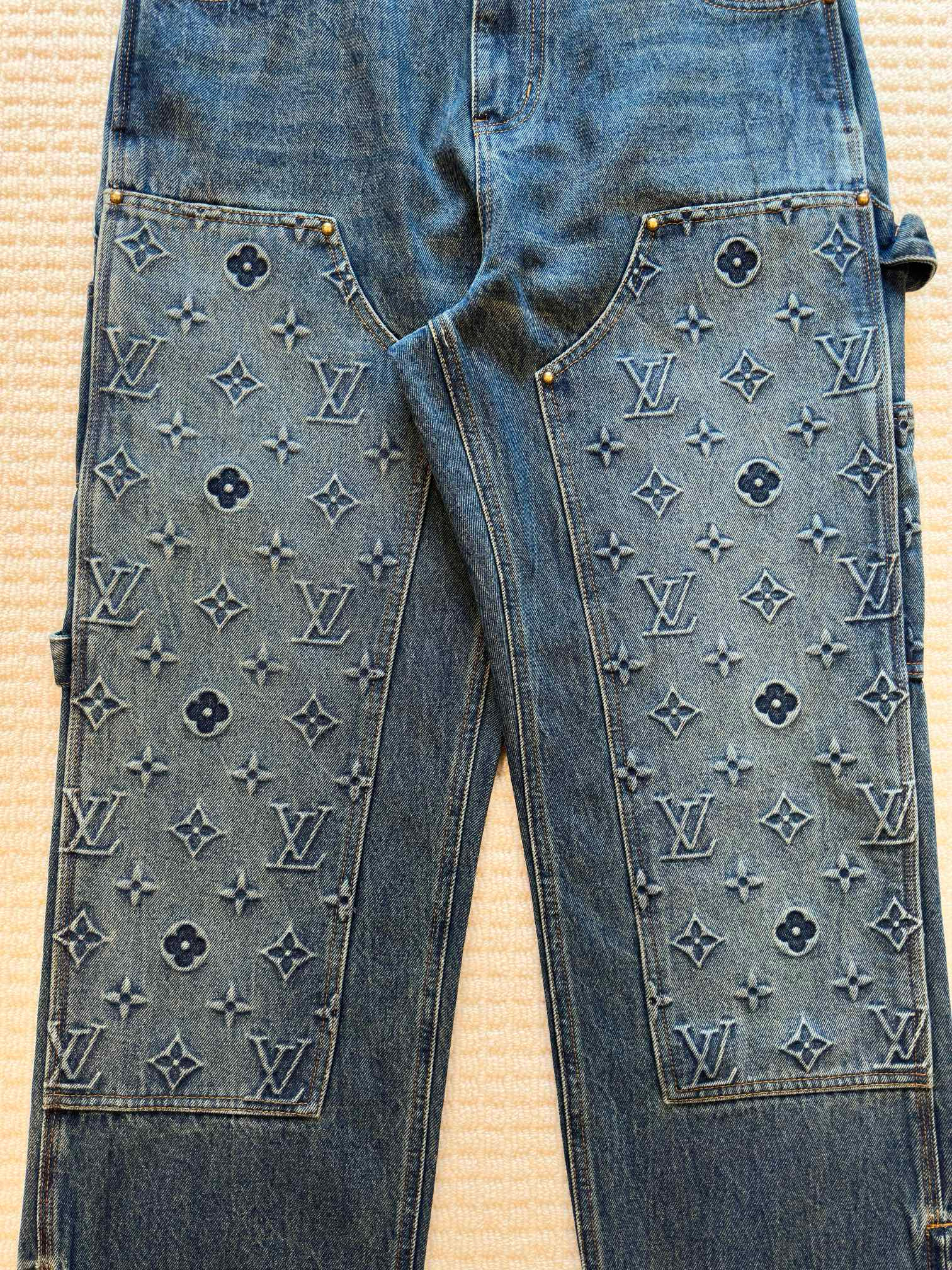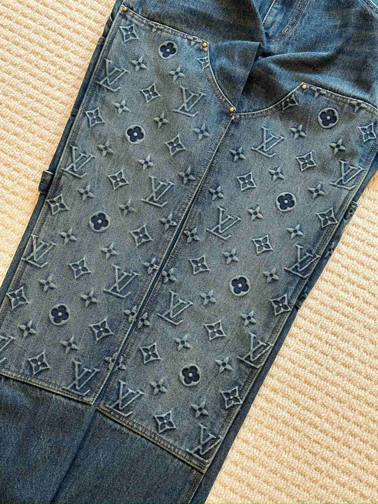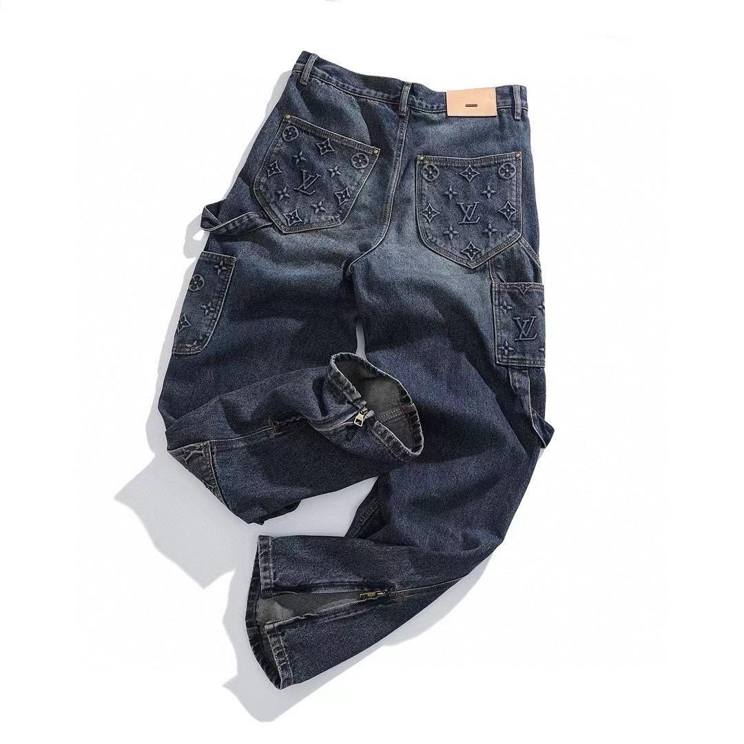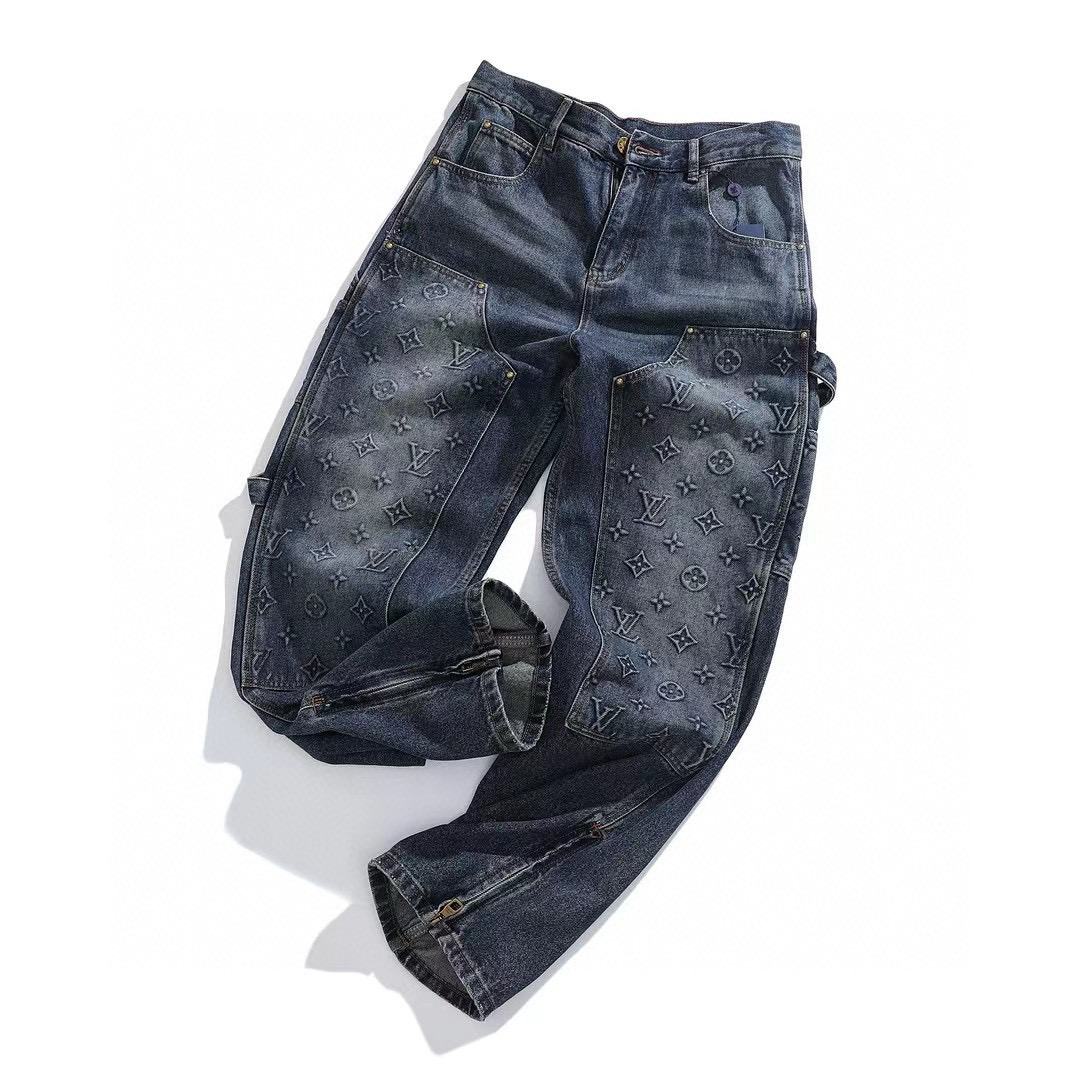 NIGO Louis Vuitton Men's Spring/autumn Fashion Casual Classic Logo Embossed Loose Straight Leg Workwear Denim Pants #nigo78388