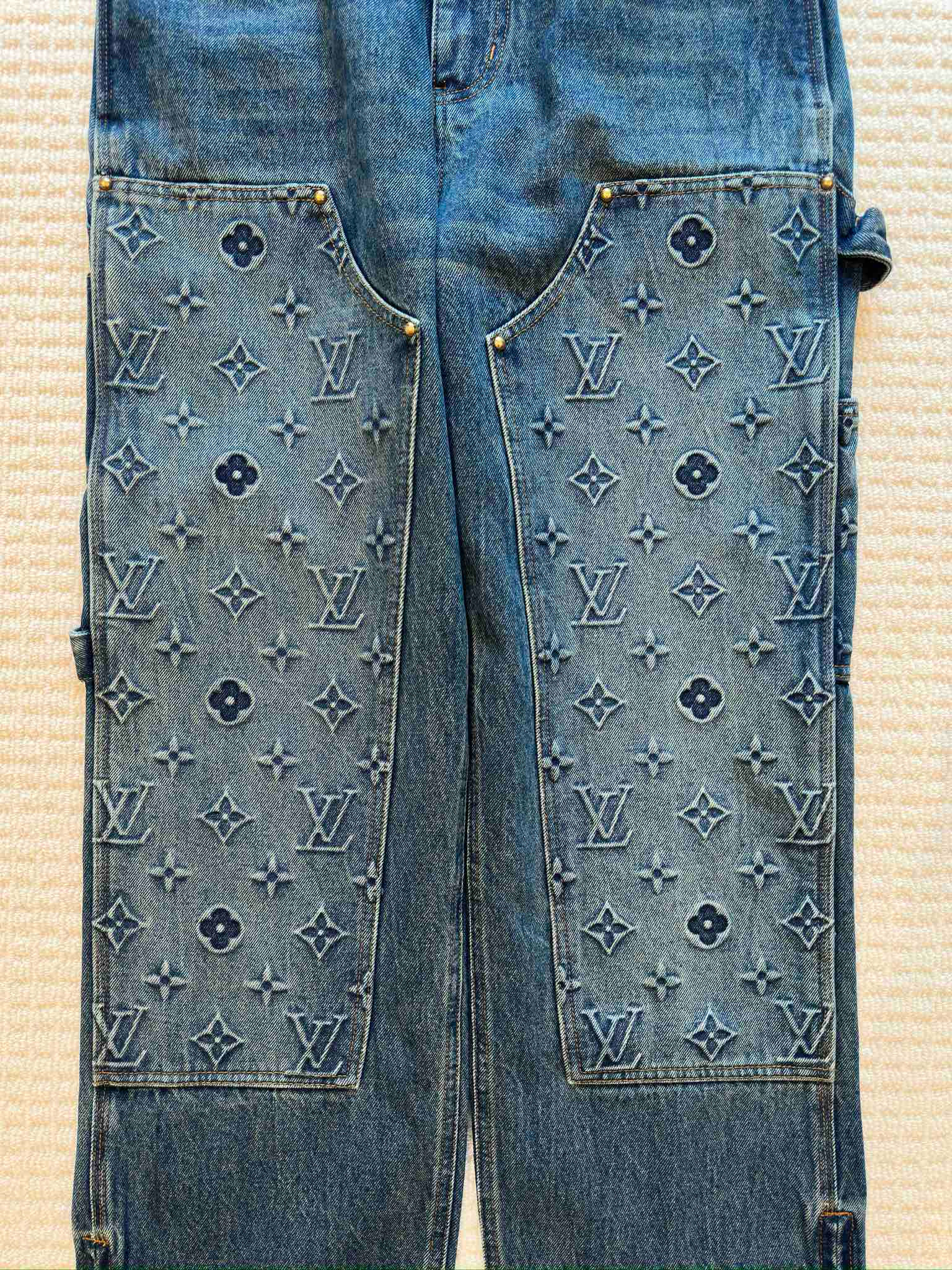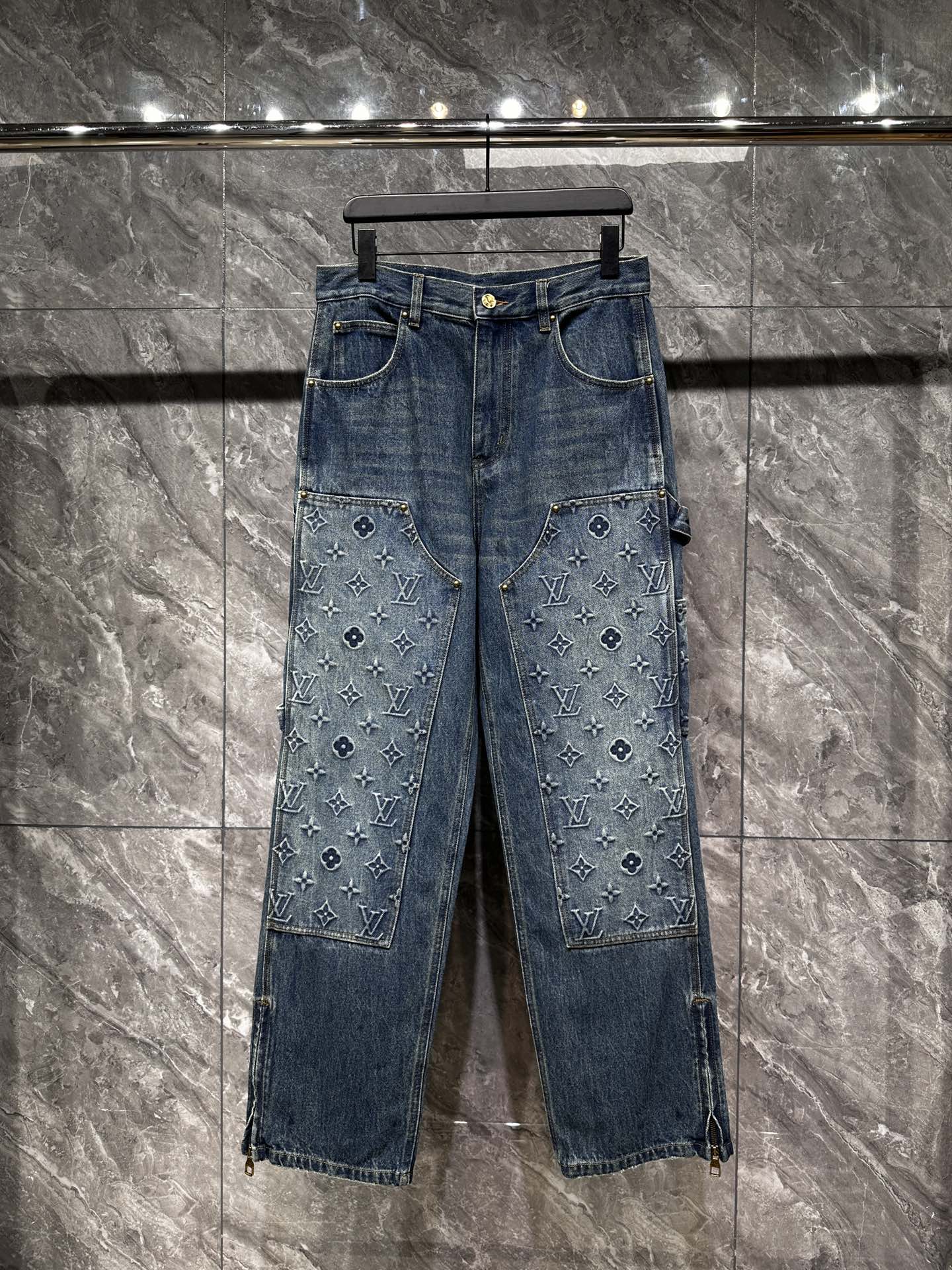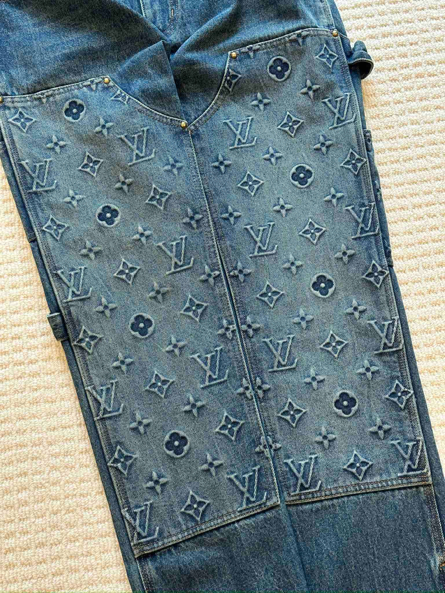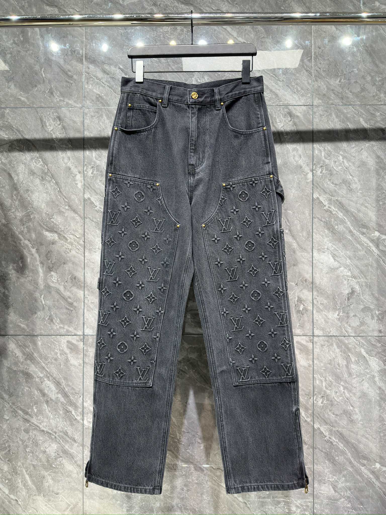 NIGO Louis Vuitton Men's Spring/autumn Fashion Casual Classic Logo Embossed Loose Straight Leg Workwear Denim Pants #nigo78388