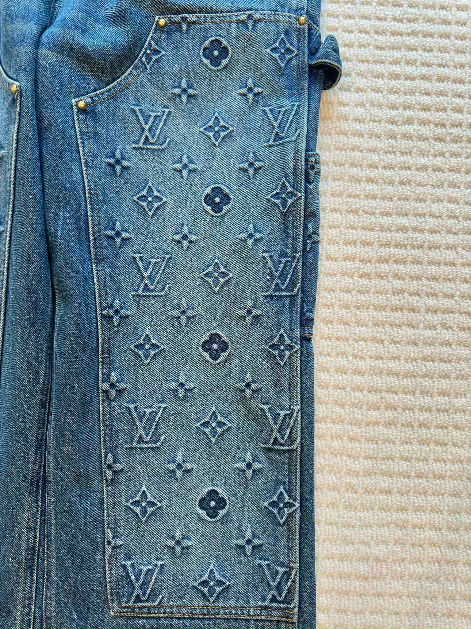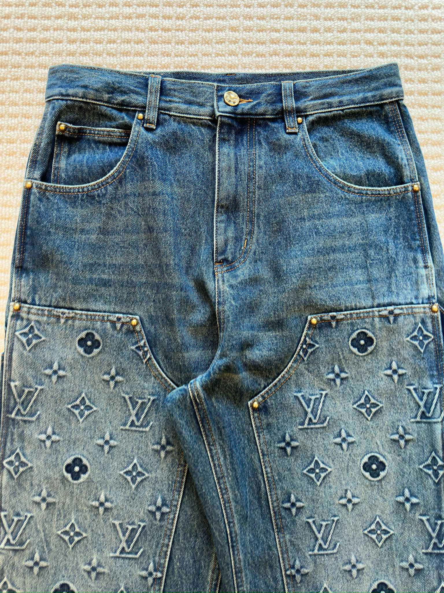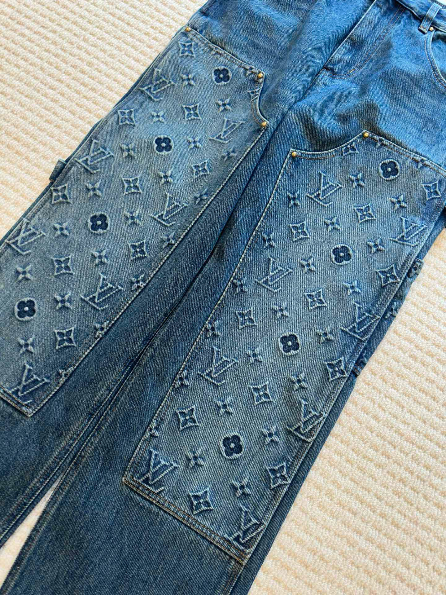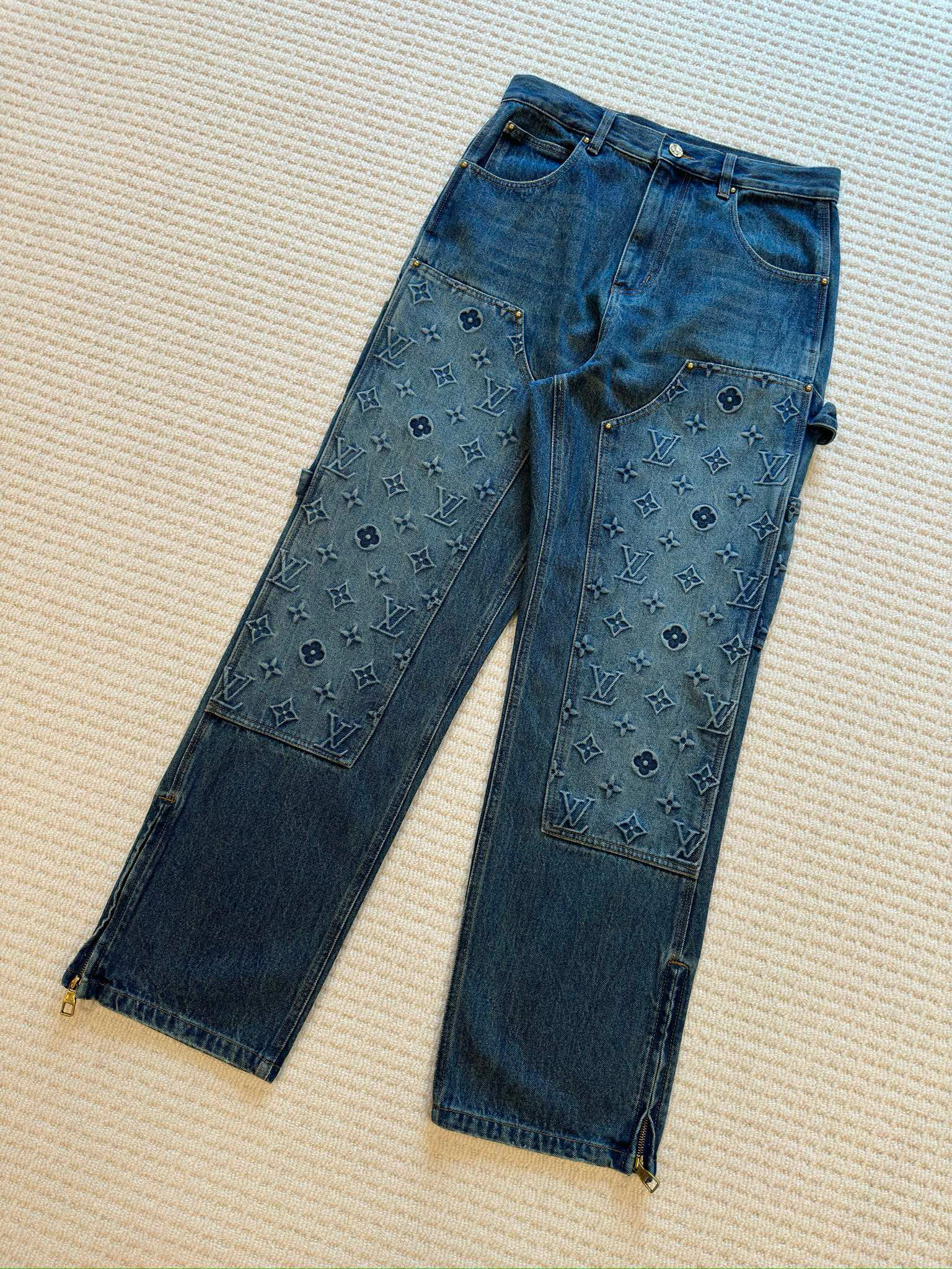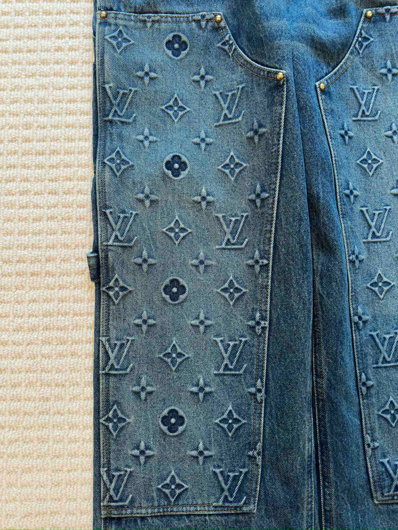 NIGO Louis Vuitton Men's Spring/autumn Fashion Casual Classic Logo Embossed Loose Straight Leg Workwear Denim Pants #nigo78388