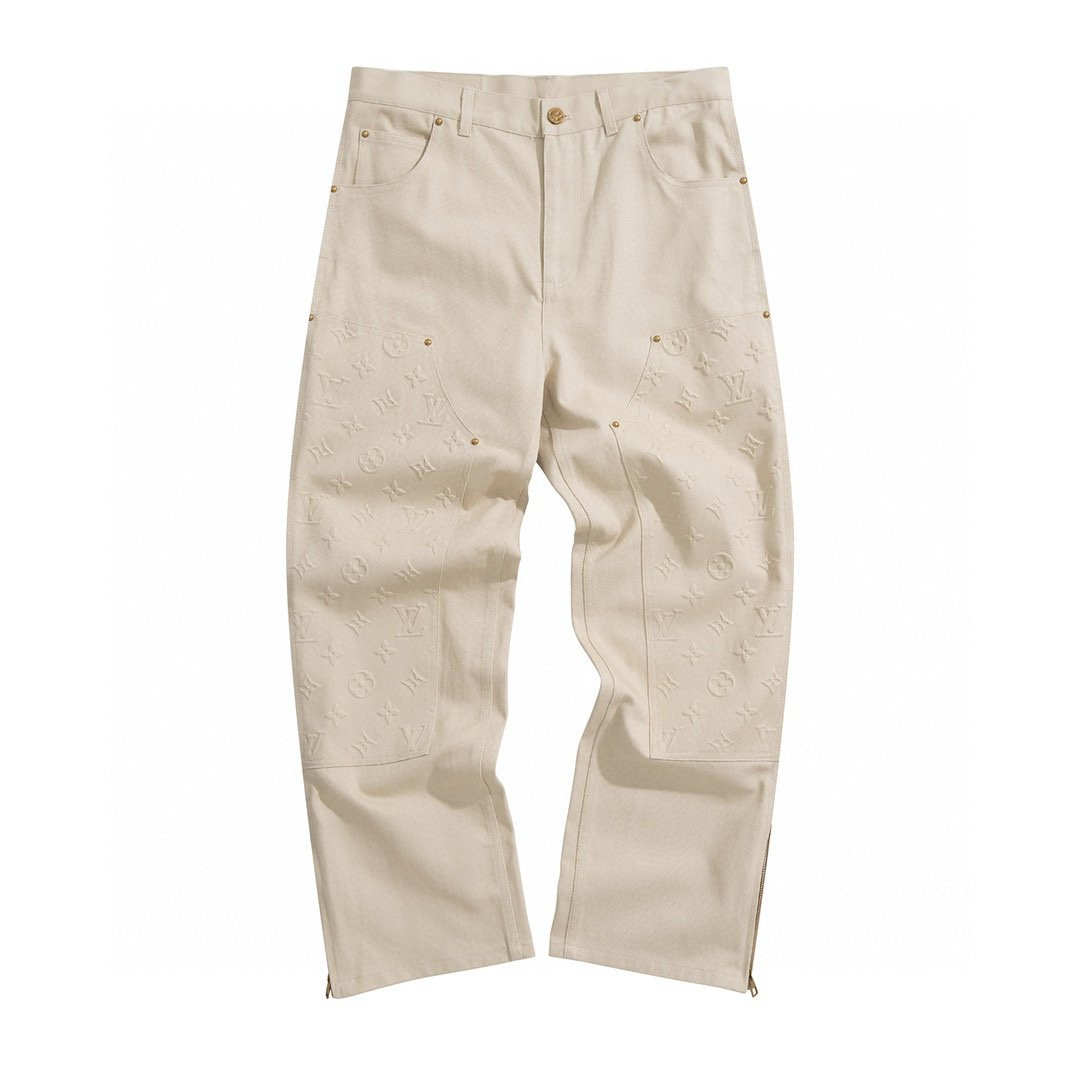 NIGO Louis Vuitton Men's Spring/Summer Monogrammed Khaki Mid-Rise Zipper Slim Straight Jeans Pants #nigo98427
