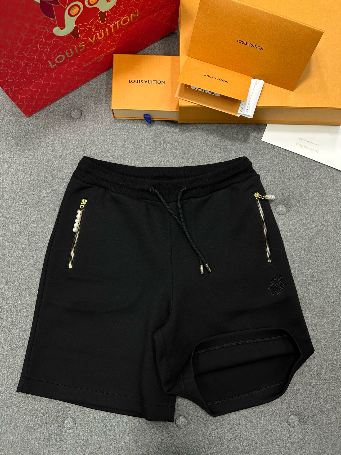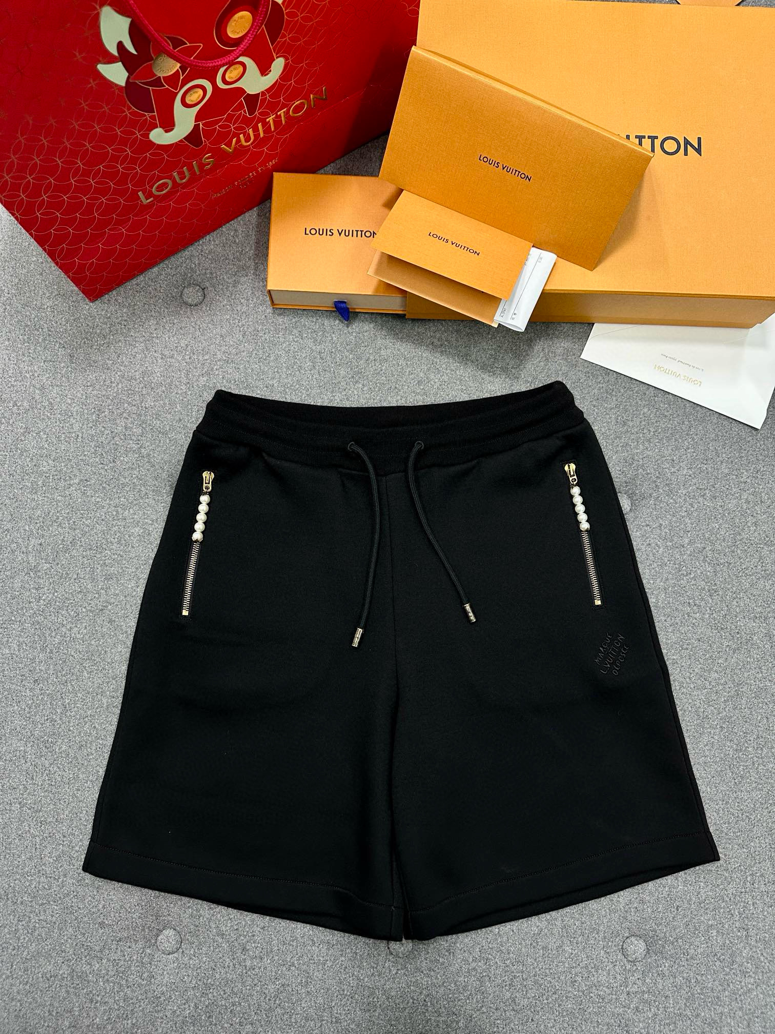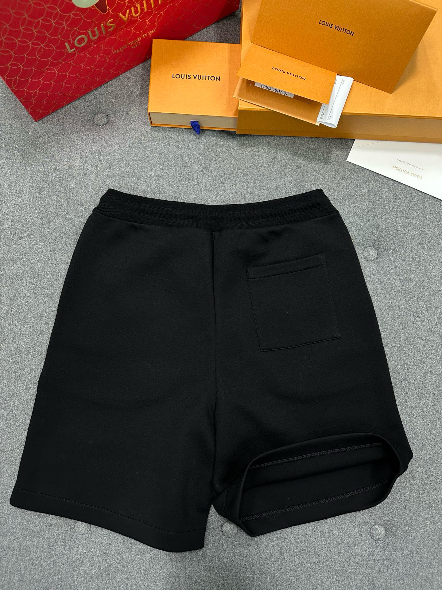 NIGO Louis Vuitton Men's Summer Black Embroidered Knit Fabric Casual Lace-Up Shorts Pants #nigo98794