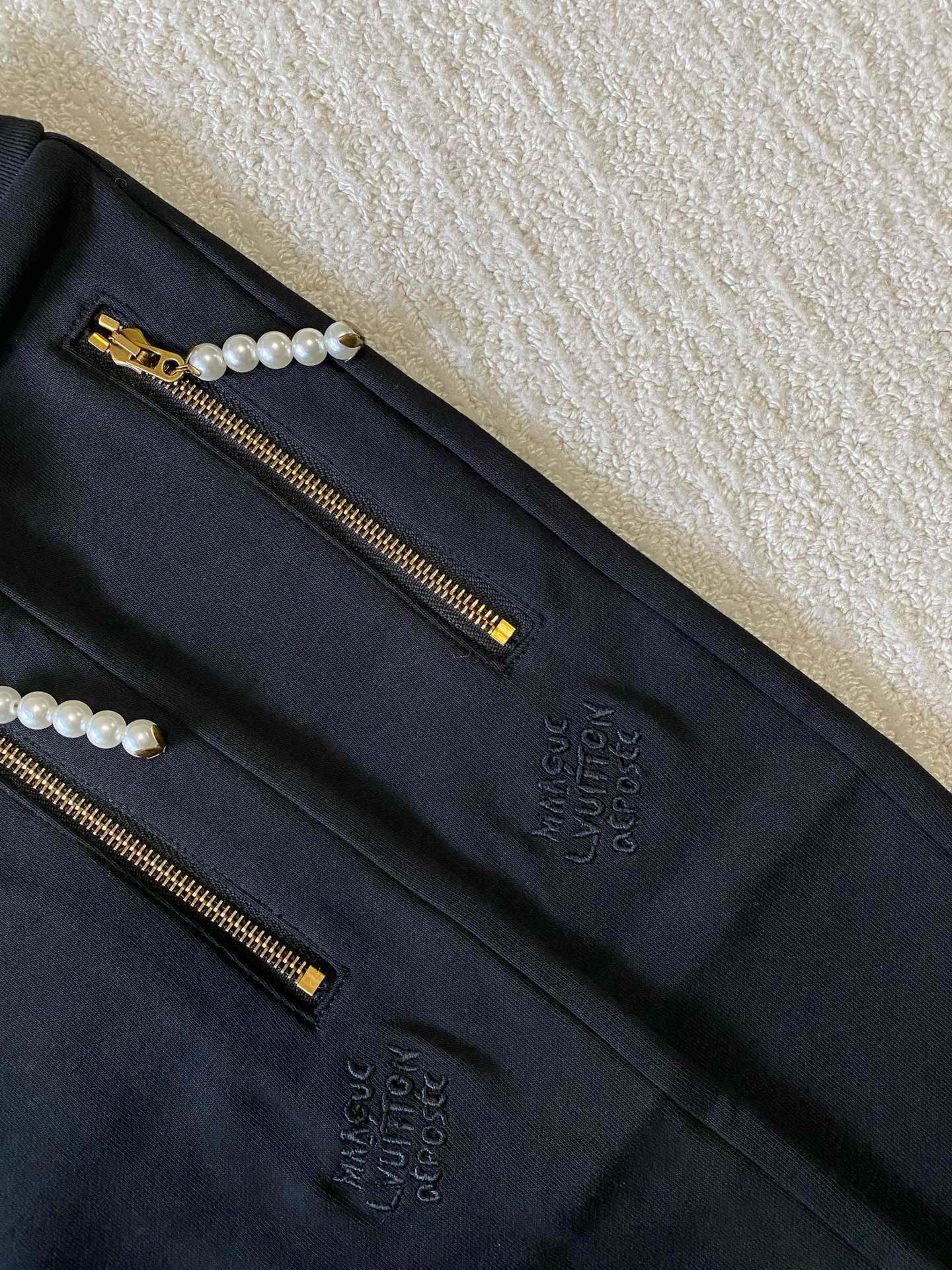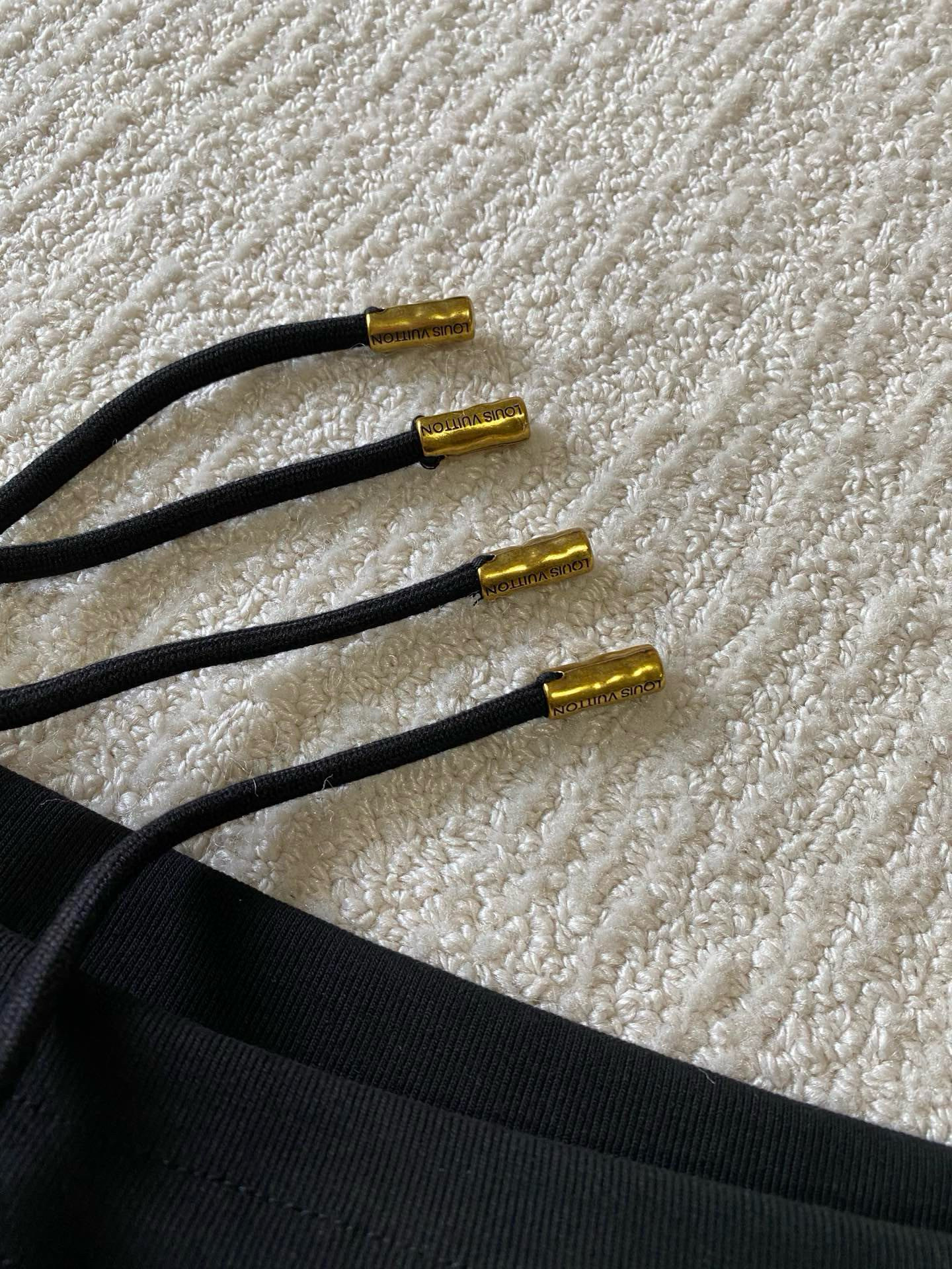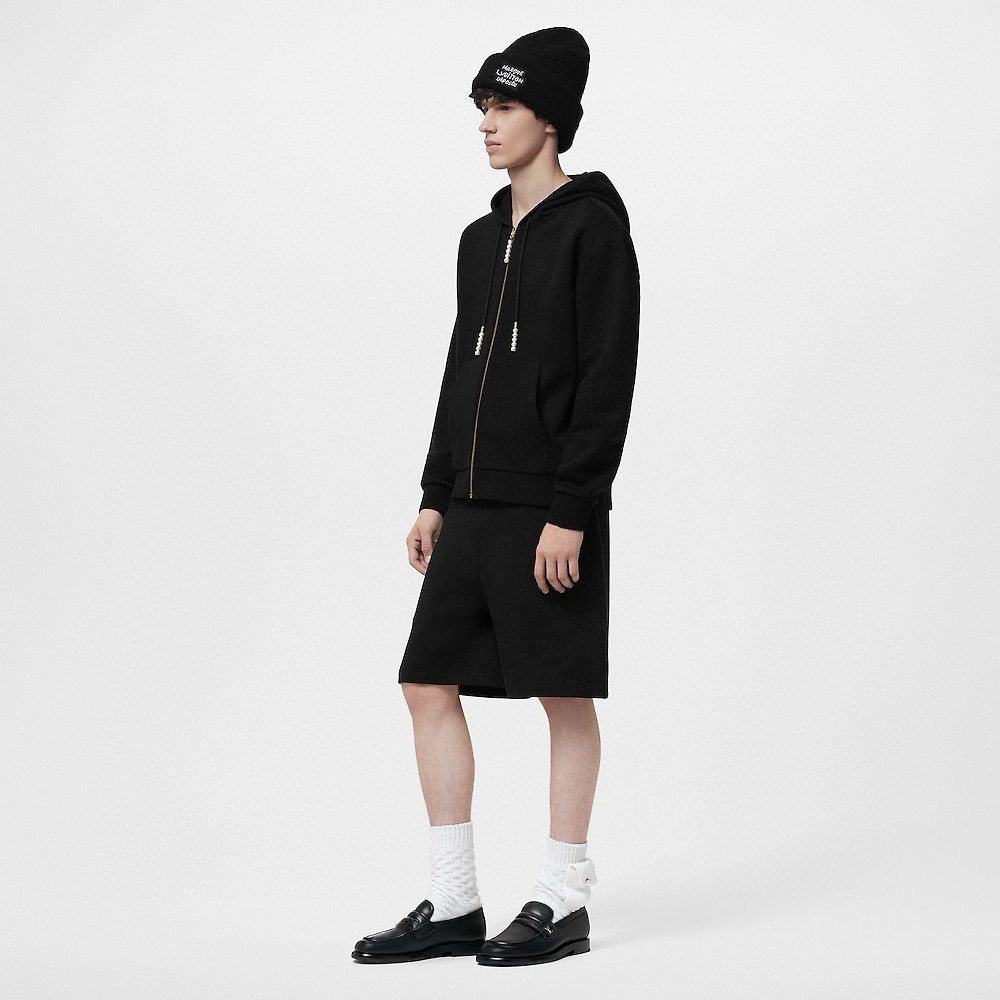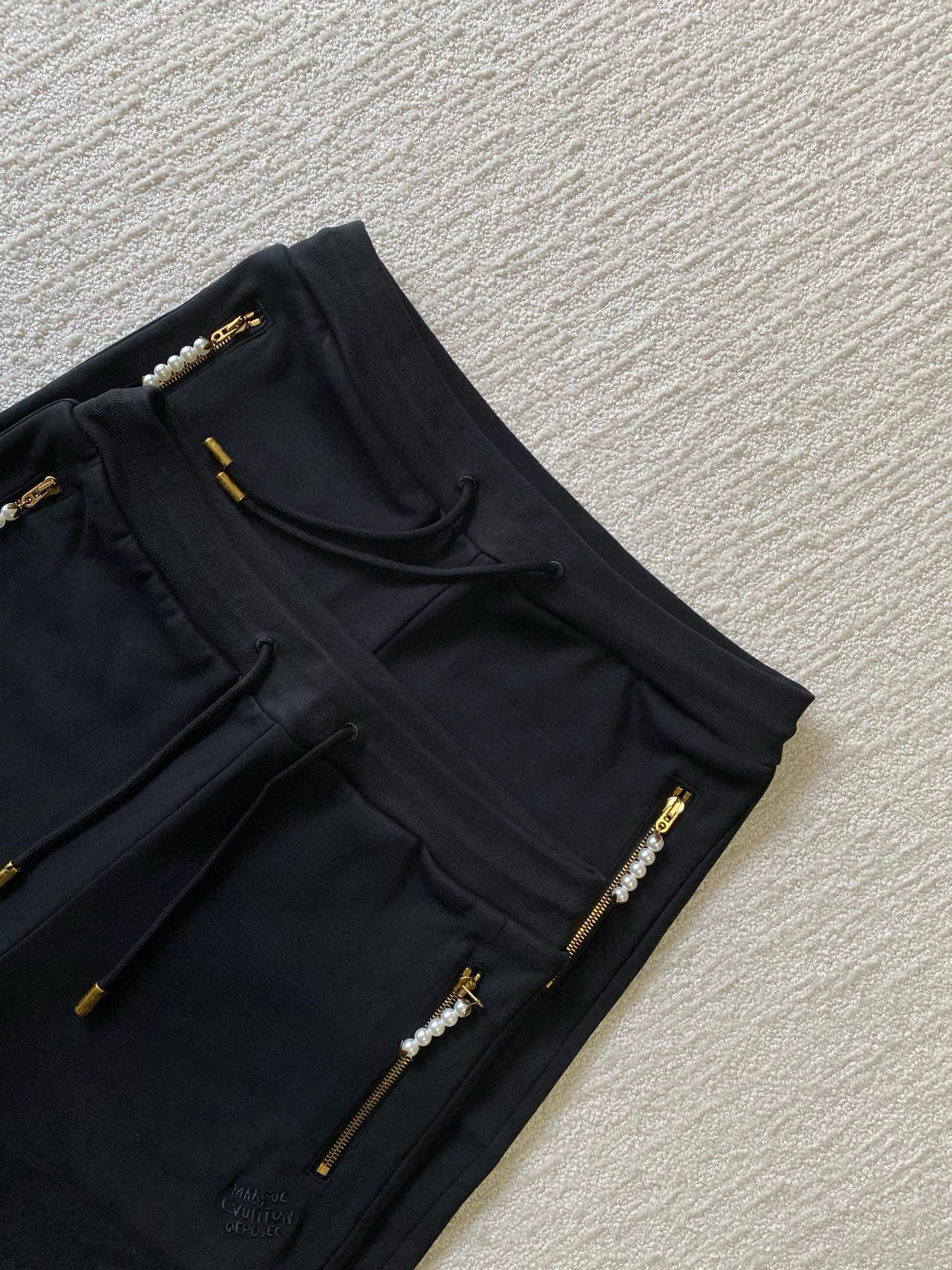 NIGO Louis Vuitton Men's Summer Black Embroidered Knit Fabric Casual Lace-Up Shorts Pants #nigo98794