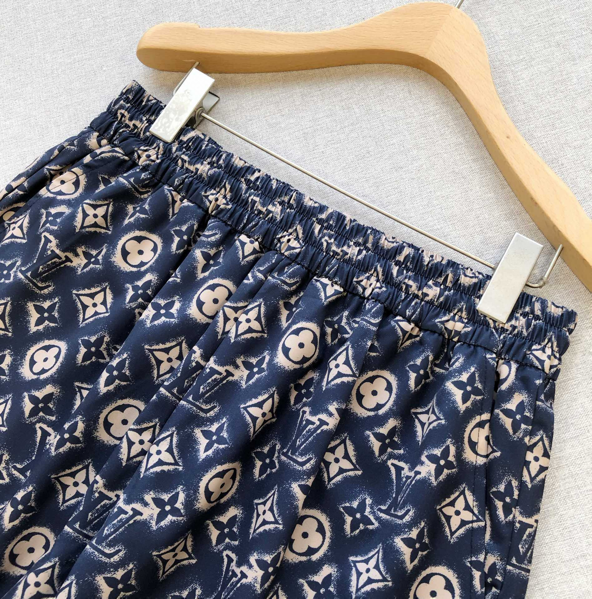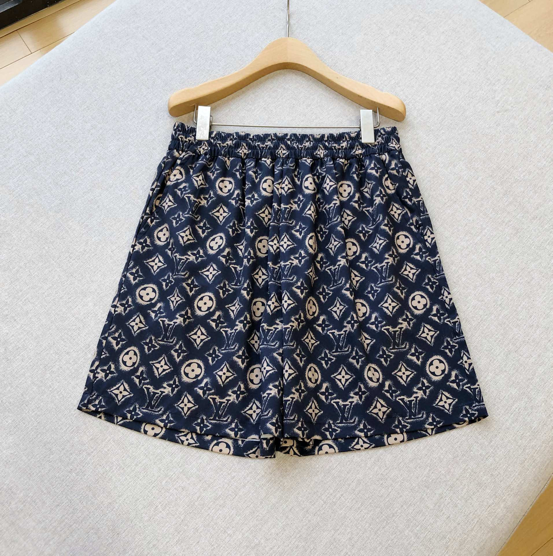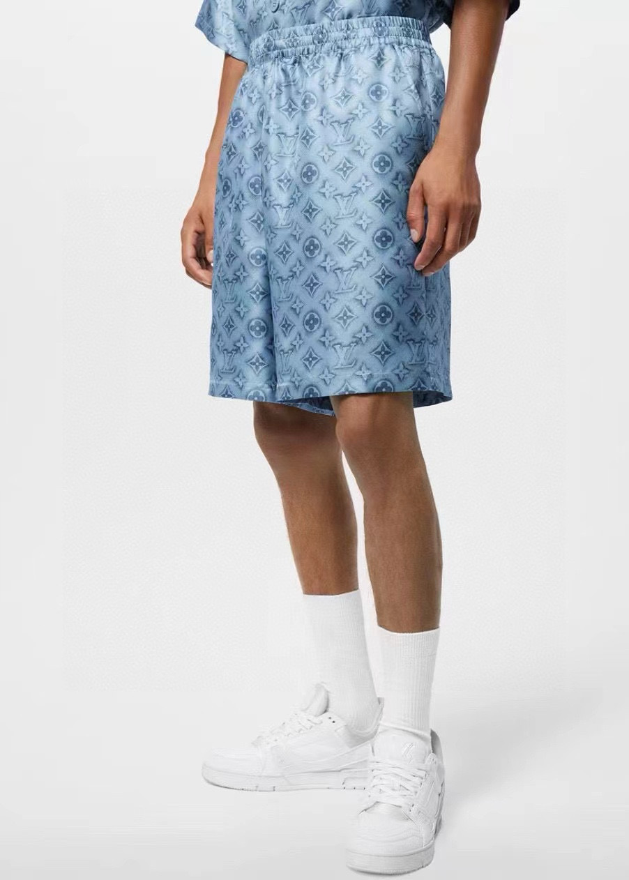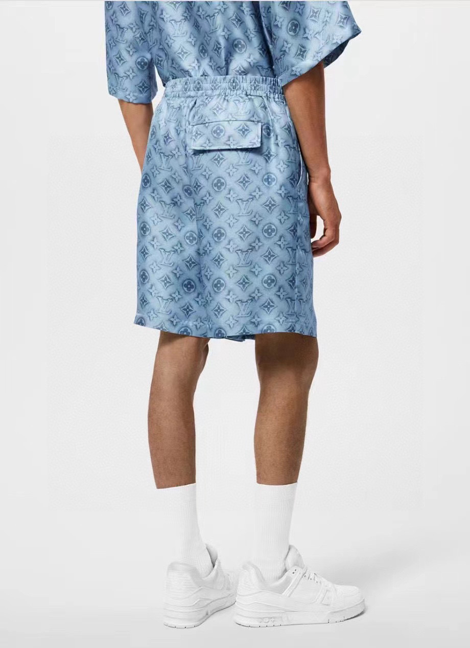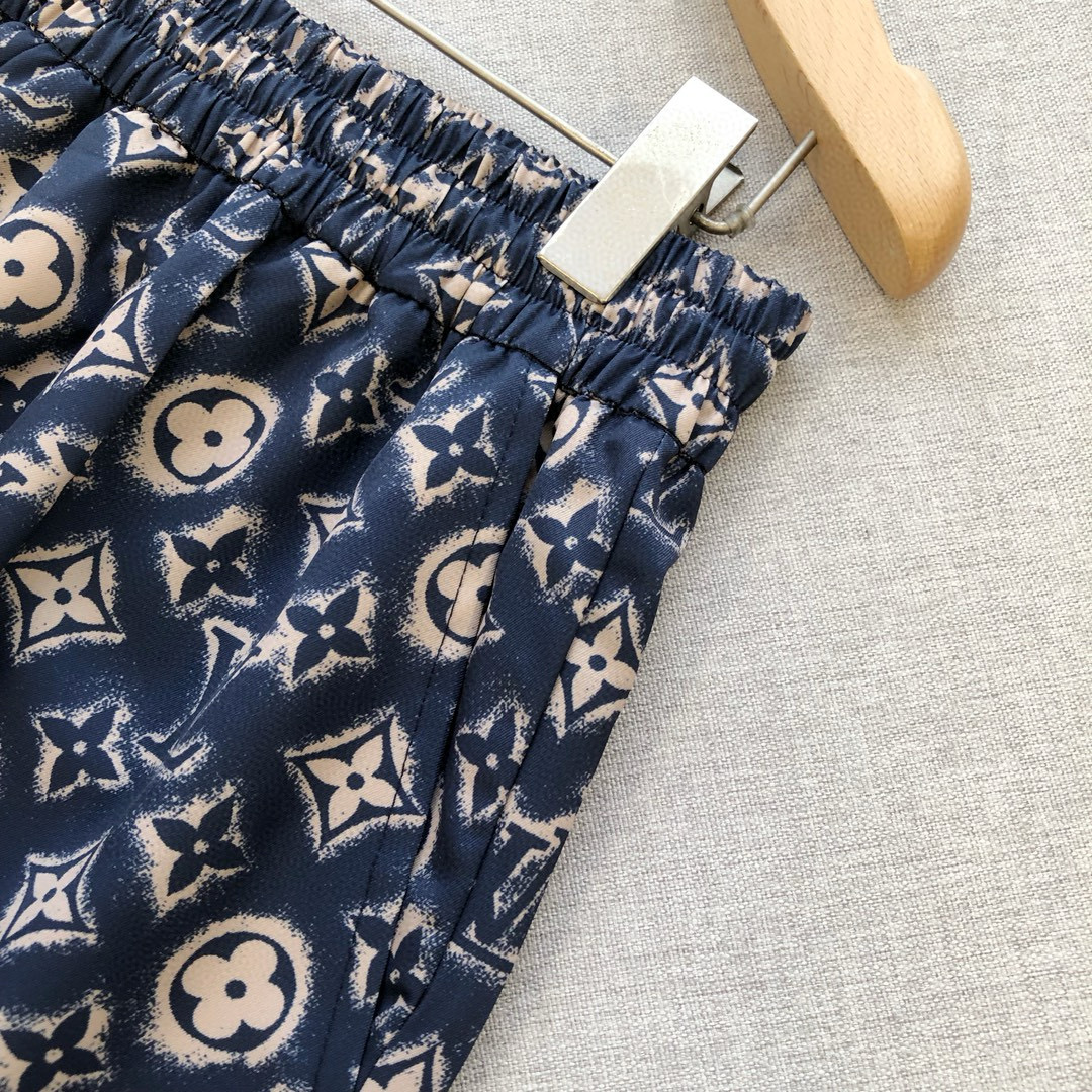 NIGO Louis Vuitton Men's Summer Blue Logo Full Print Elastic Waist Casual Shorts Pants #nigo98981