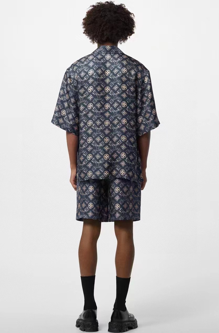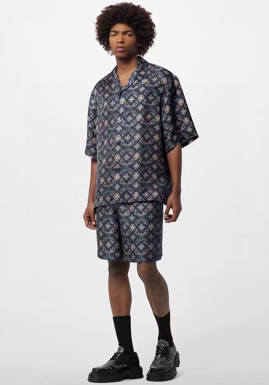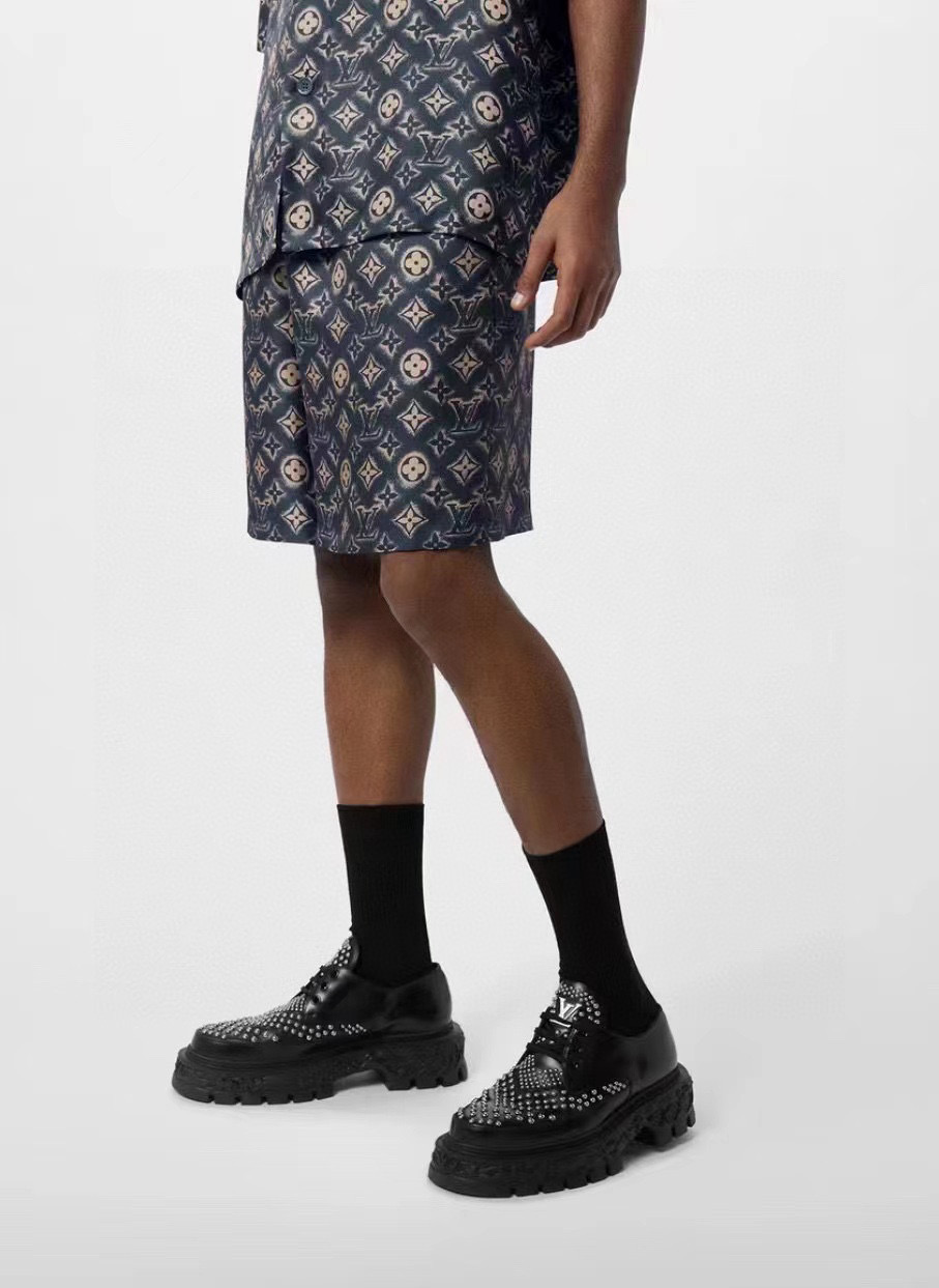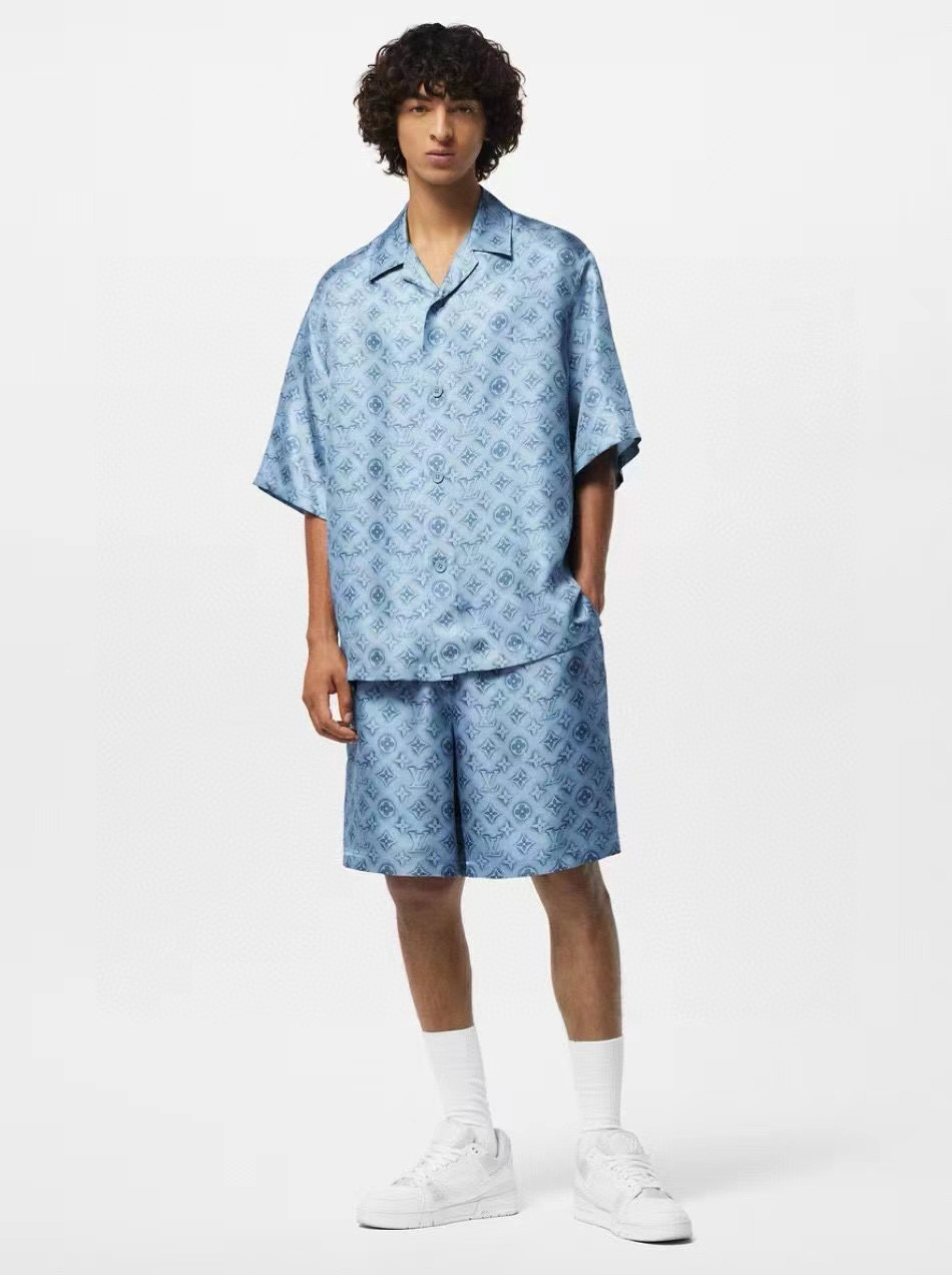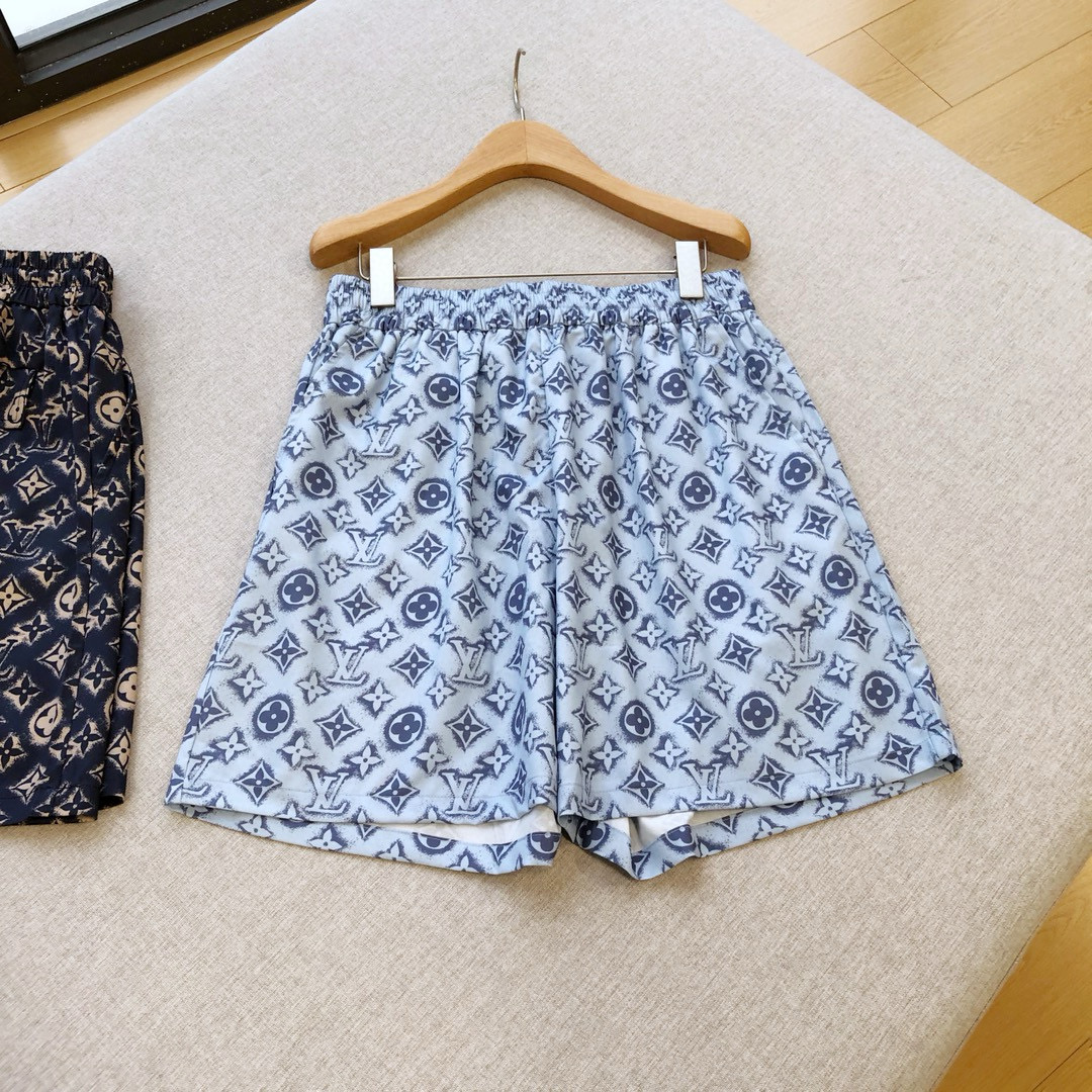 NIGO Louis Vuitton Men's Summer Blue Logo Full Print Elastic Waist Casual Shorts Pants #nigo98981