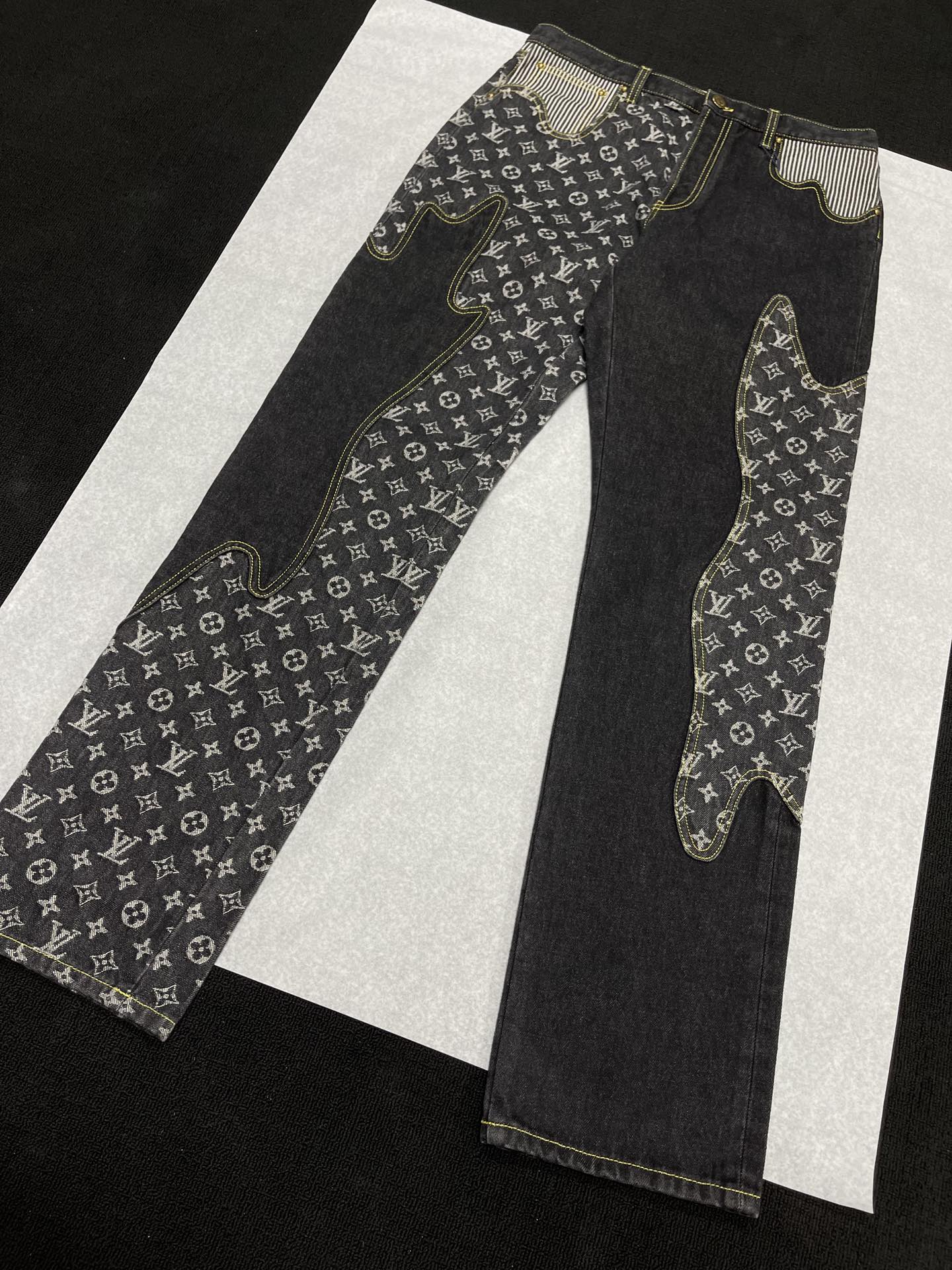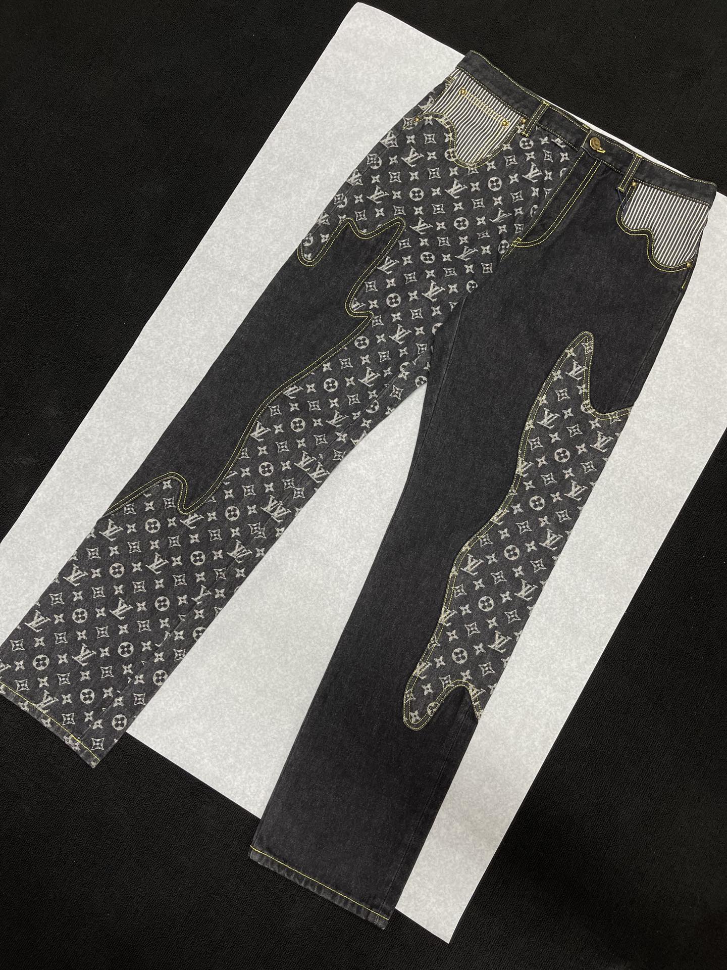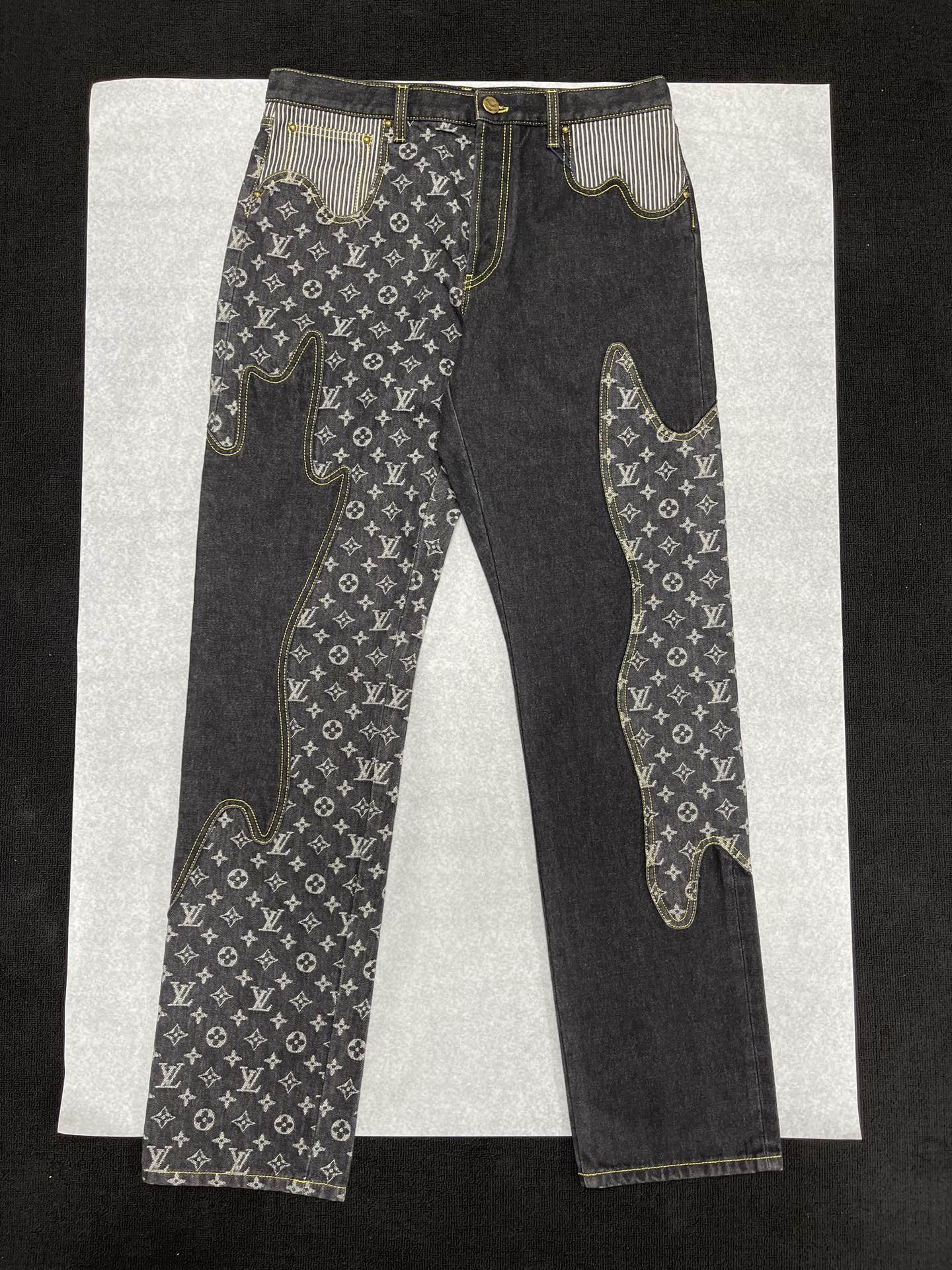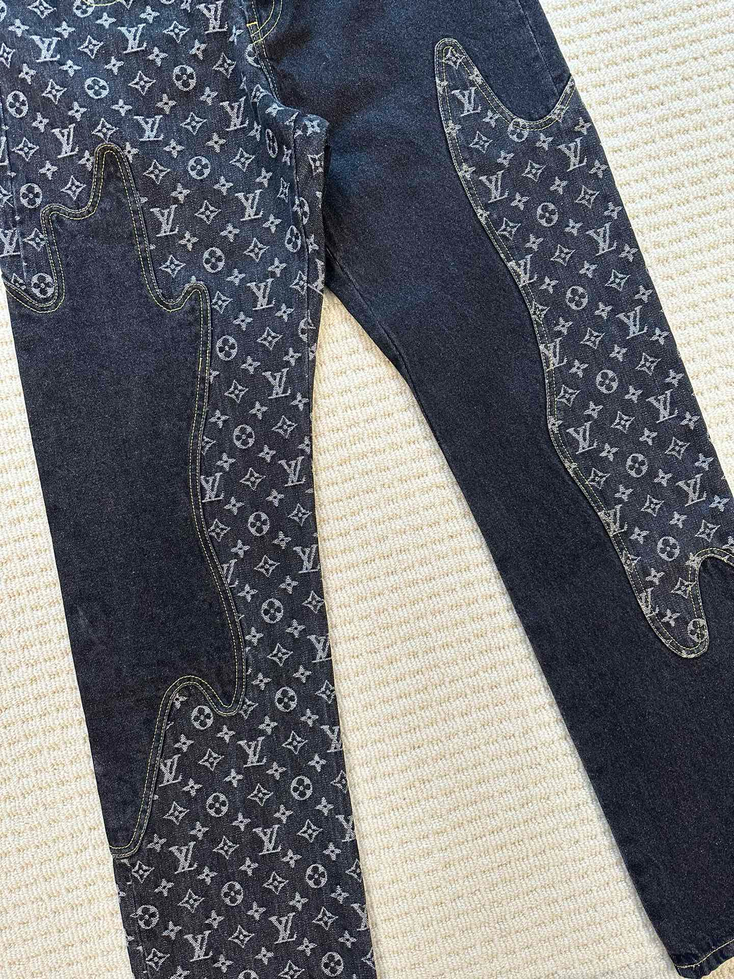 NIGO Louis Vuitton X Nigo2 Collaboration Men's Spring And Summer Structural Splicing Monogram Flower Denim Pants Fashionable Casual Wide Leg Pants #nigo71849
