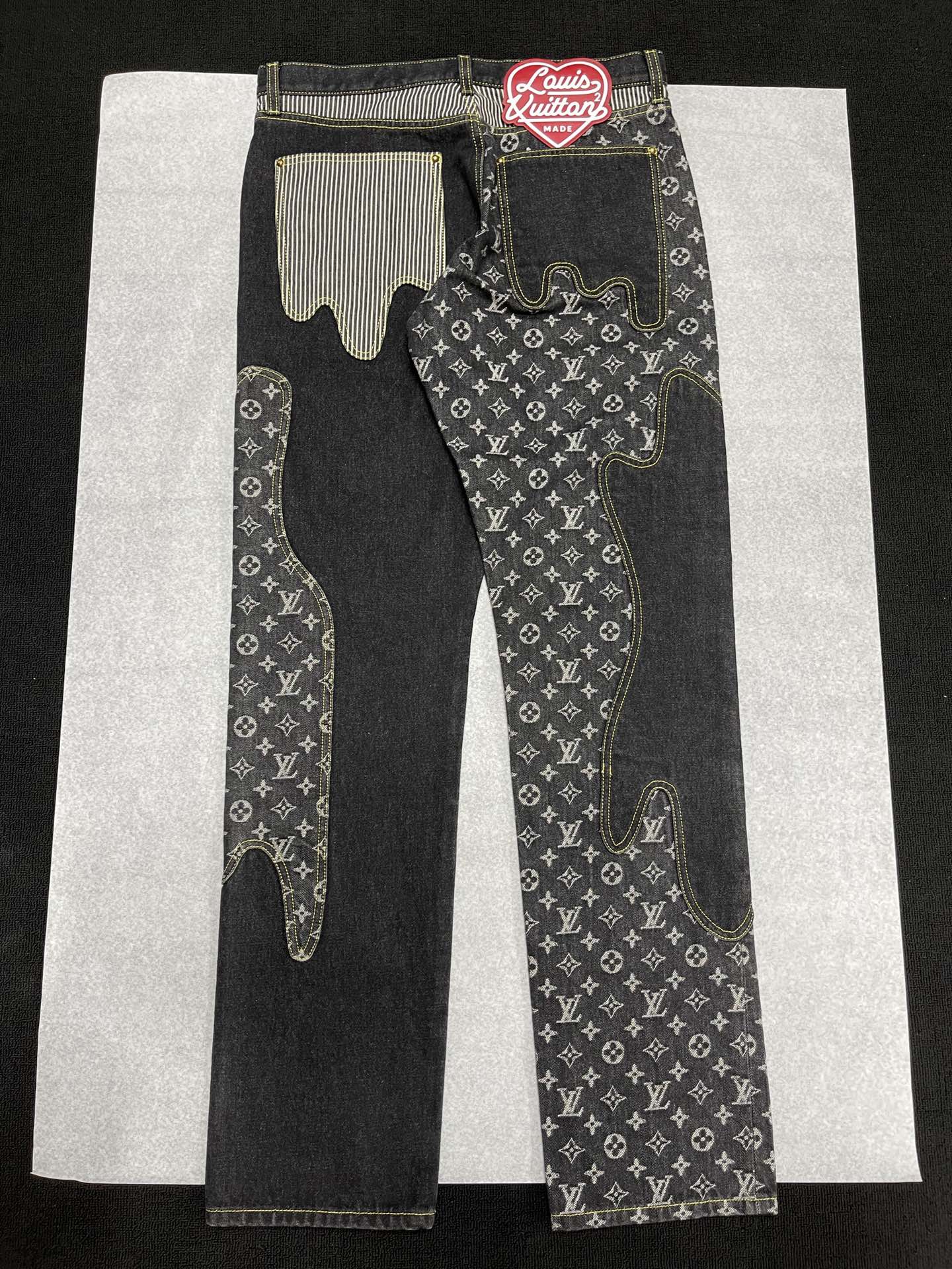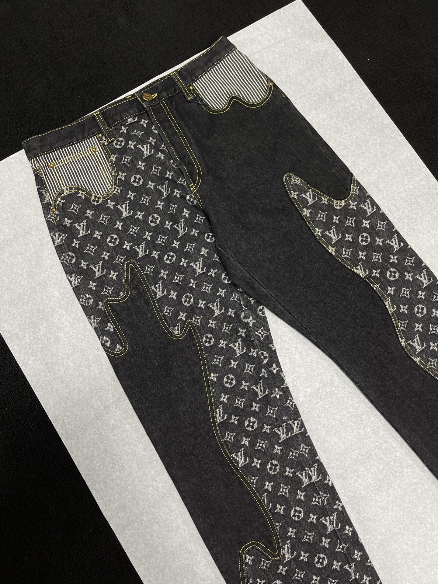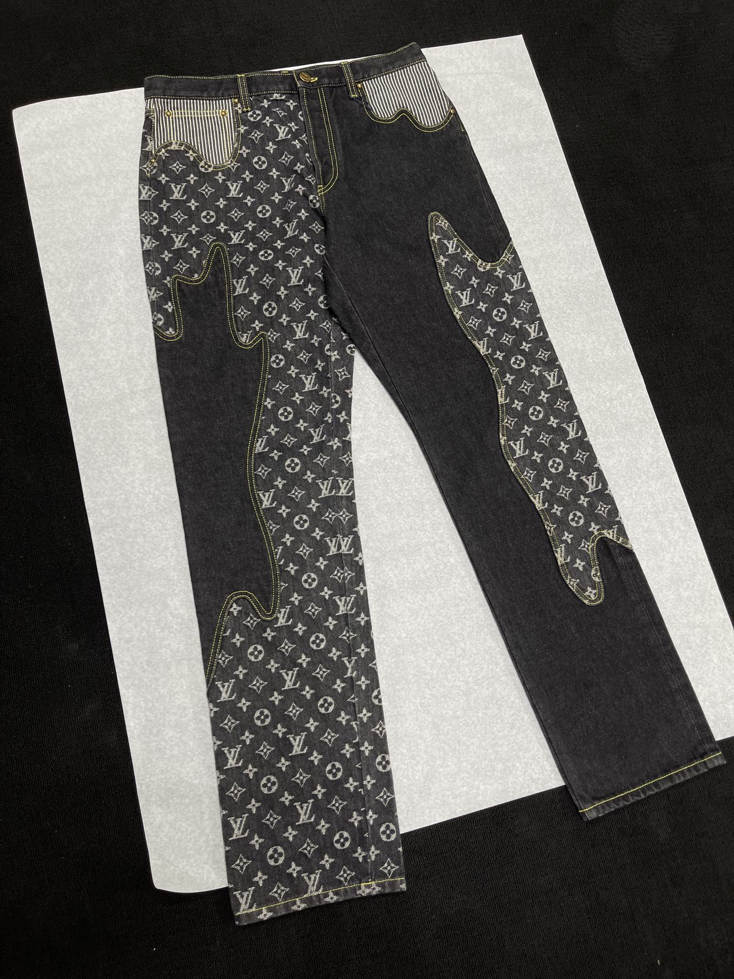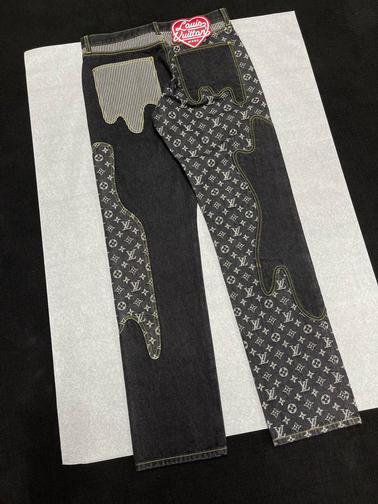 NIGO Louis Vuitton X Nigo2 Collaboration Men's Spring And Summer Structural Splicing Monogram Flower Denim Pants Fashionable Casual Wide Leg Pants #nigo71849