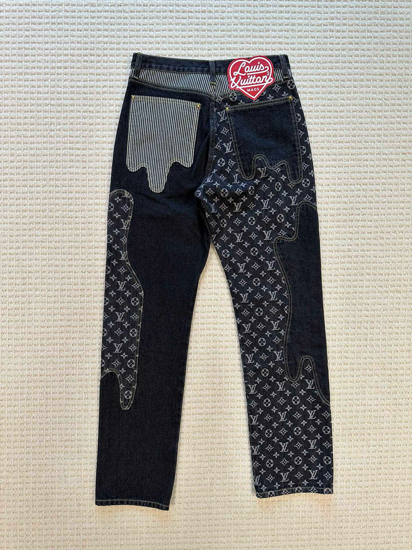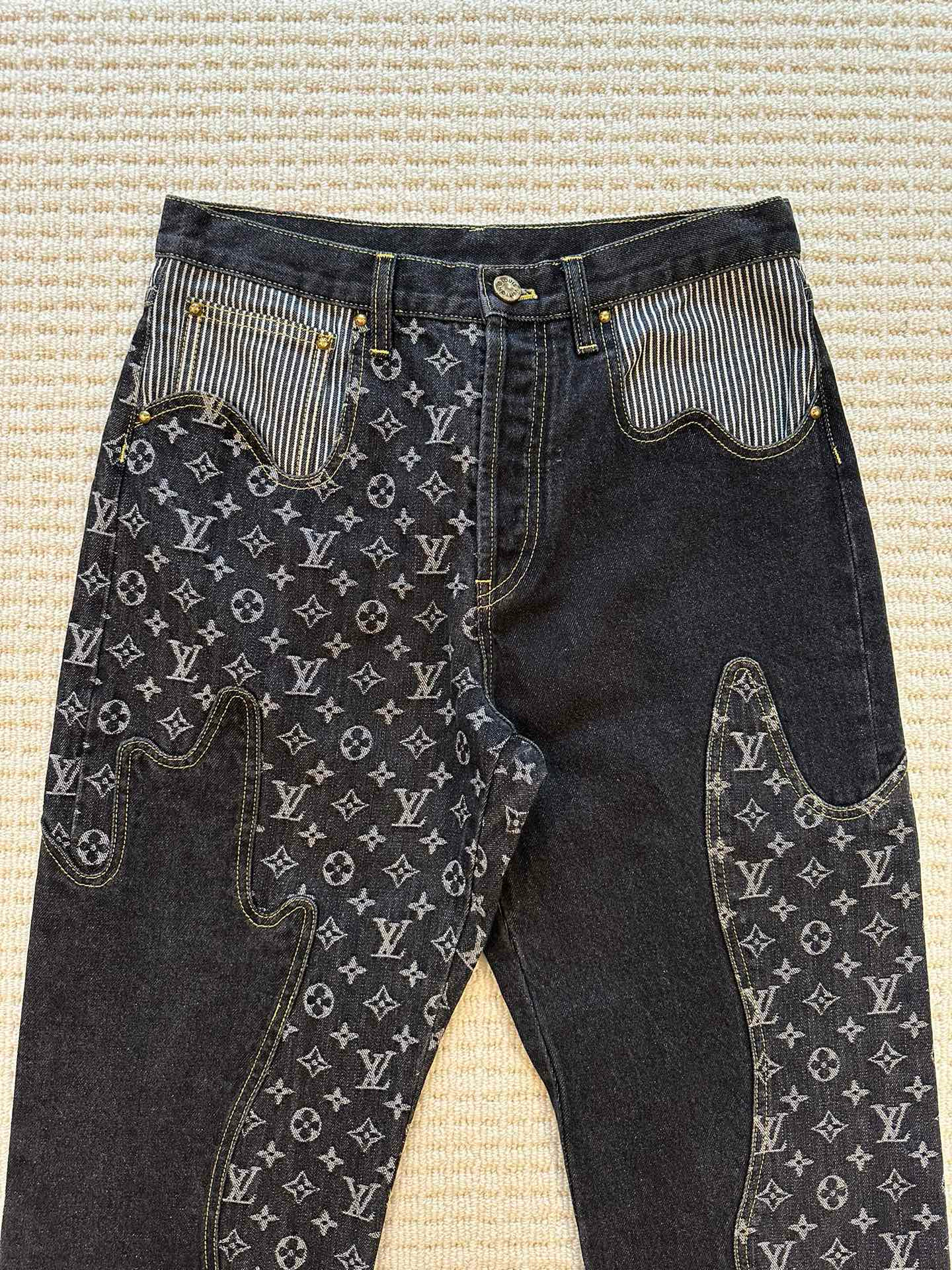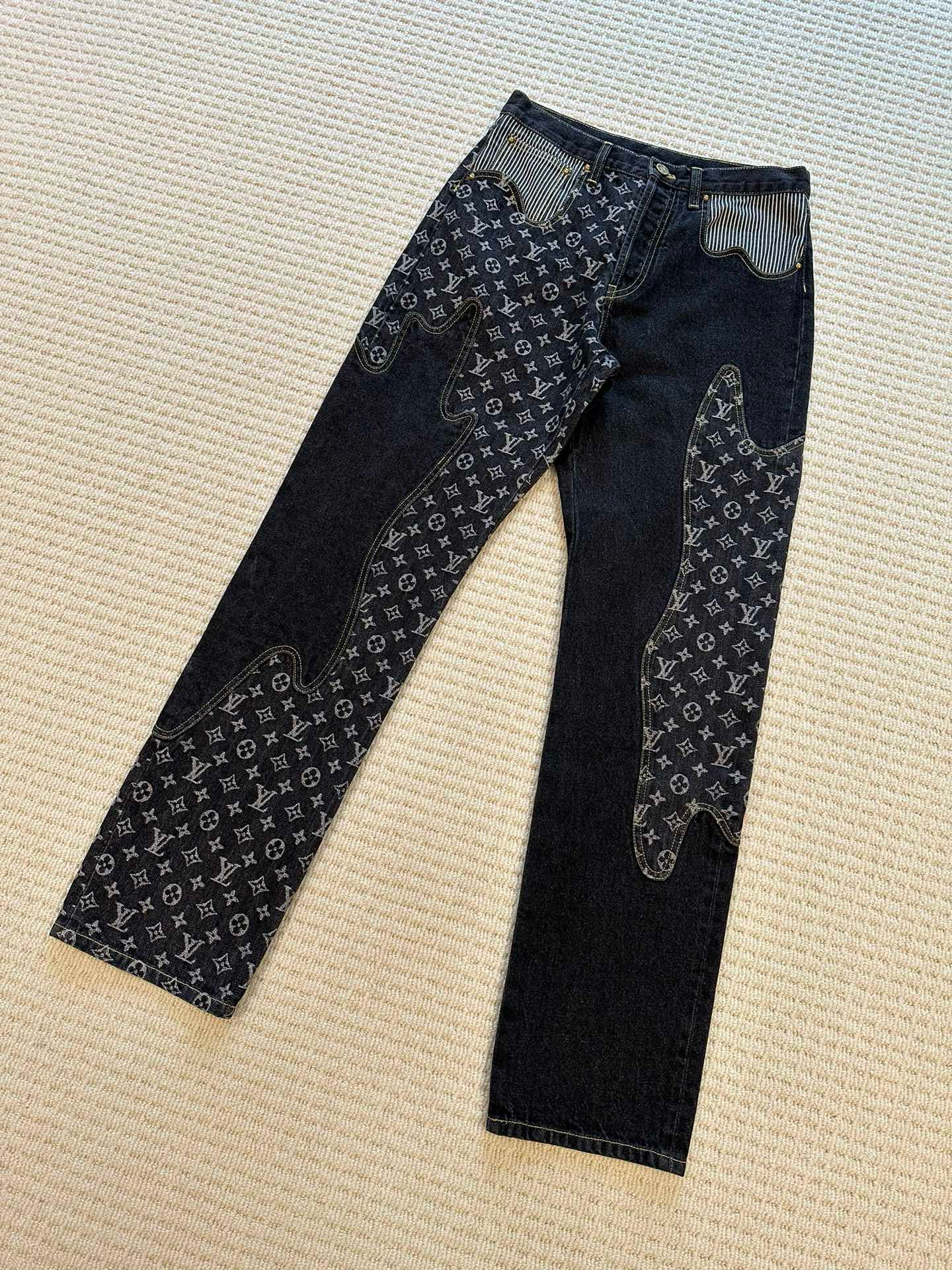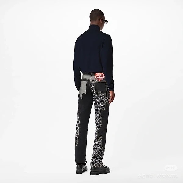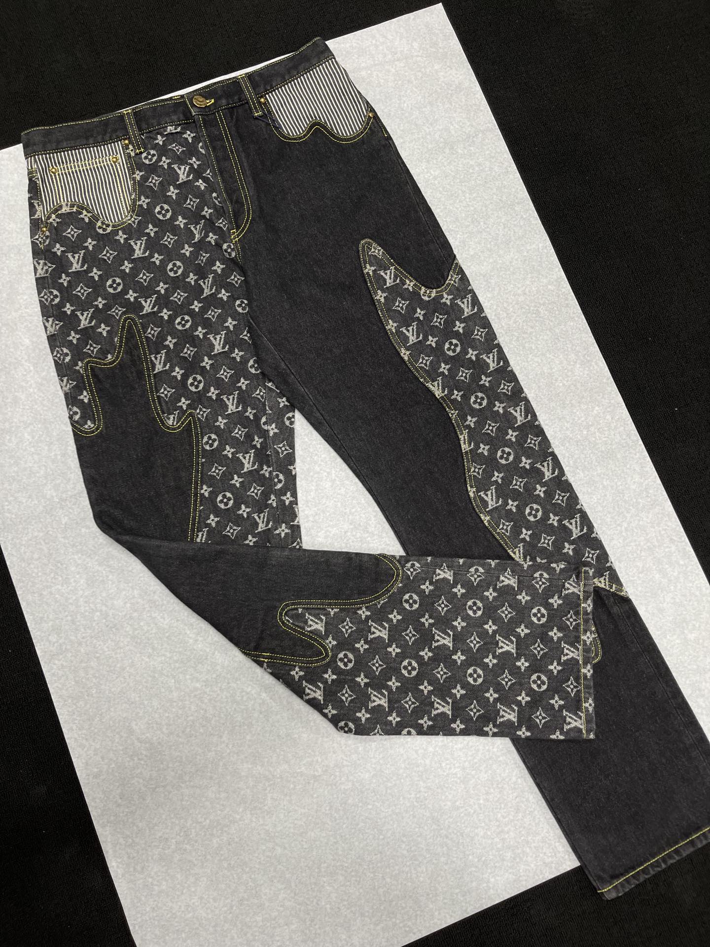 NIGO Louis Vuitton X Nigo2 Collaboration Men's Spring And Summer Structural Splicing Monogram Flower Denim Pants Fashionable Casual Wide Leg Pants #nigo71849