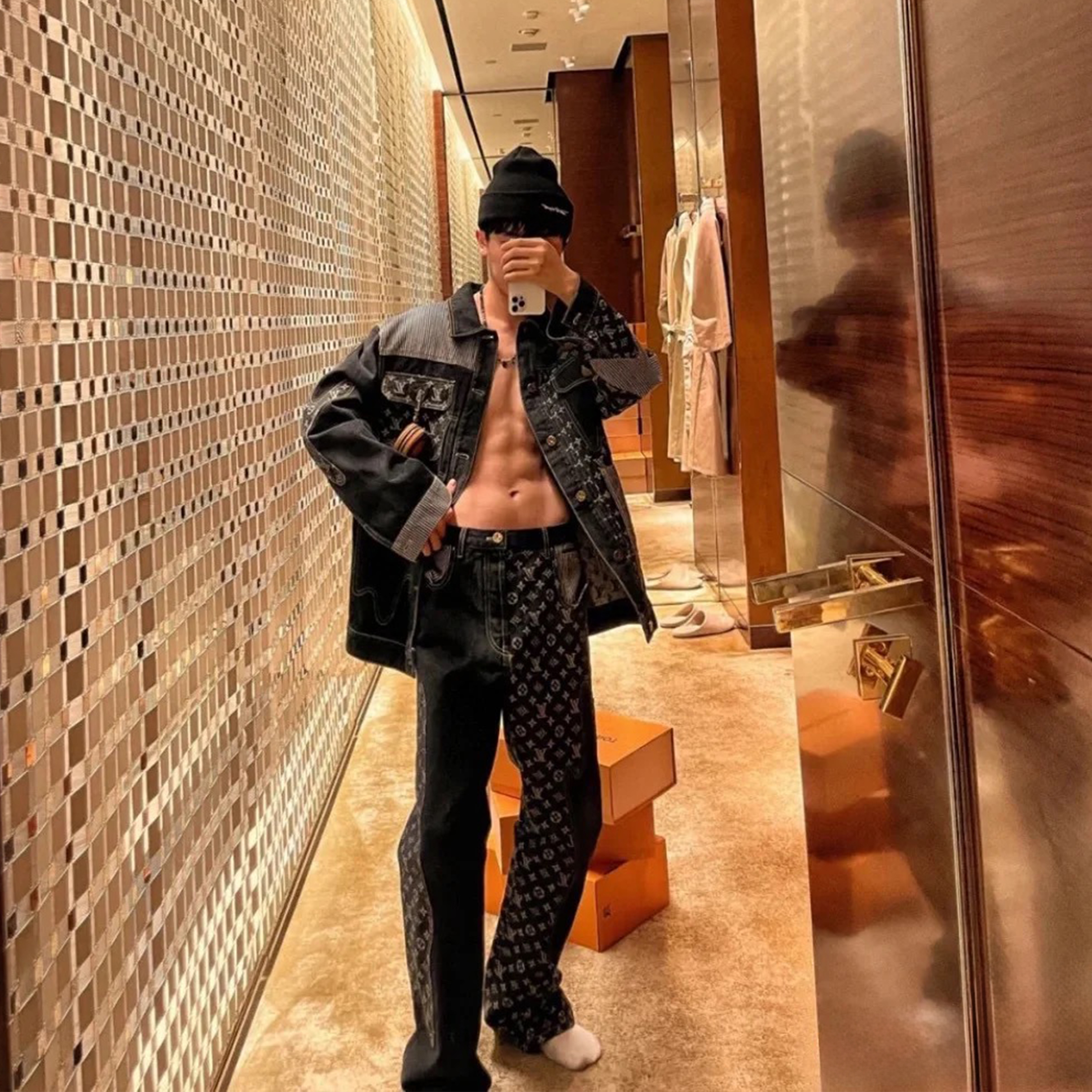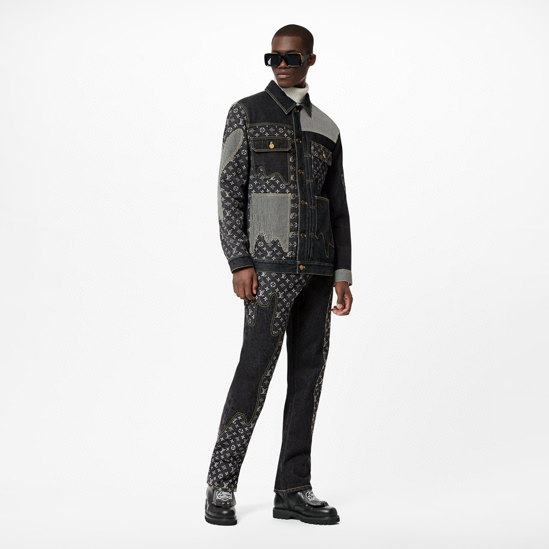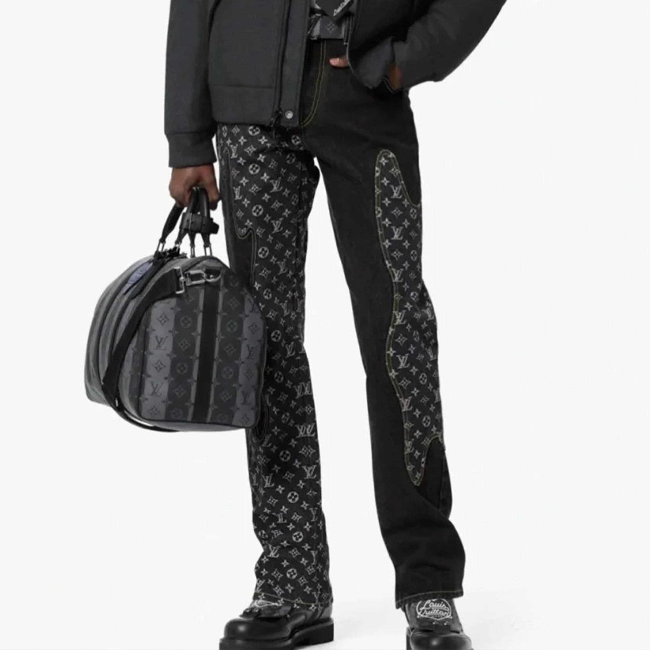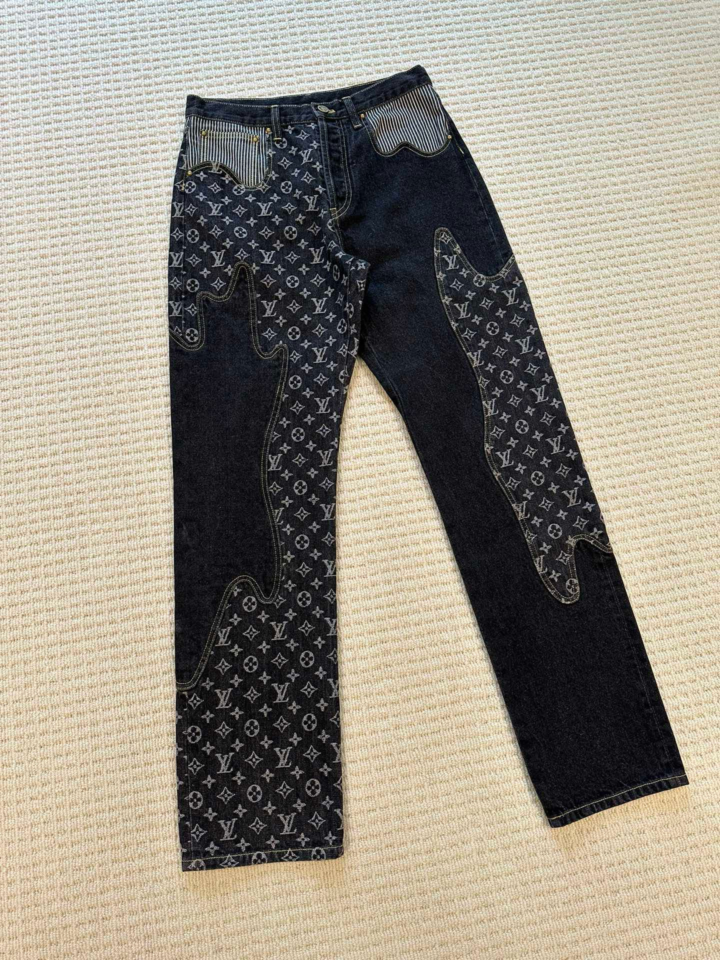 NIGO Louis Vuitton X Nigo2 Collaboration Men's Spring And Summer Structural Splicing Monogram Flower Denim Pants Fashionable Casual Wide Leg Pants #nigo71849