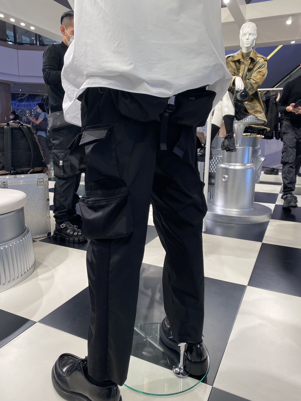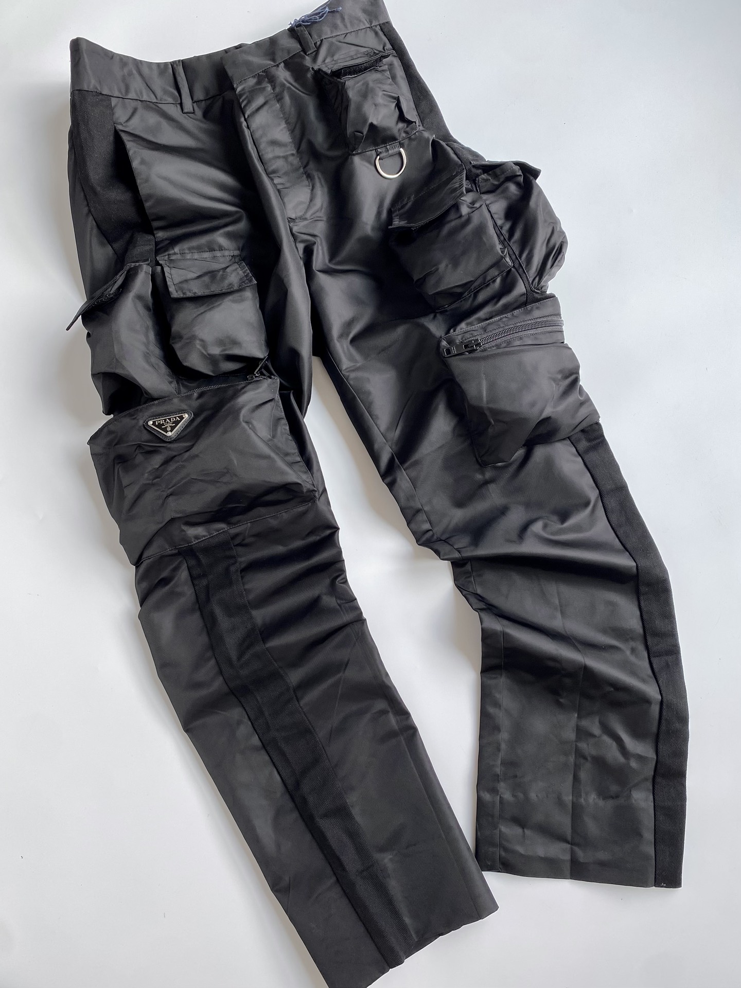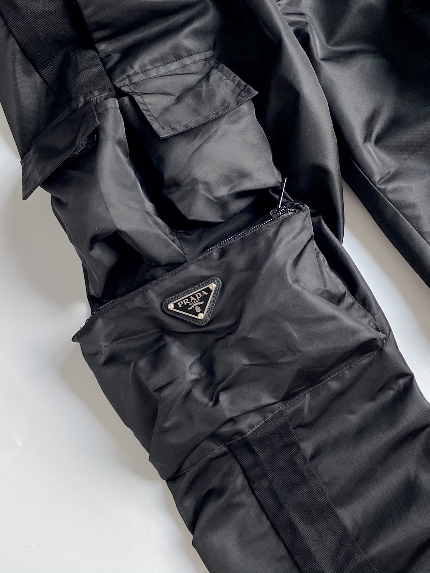 NIGO Prada Men's Spring and Autumn Black Triangle Label Multi-Pocket Zipper Nylon Workwear Long Pants #nigo72861