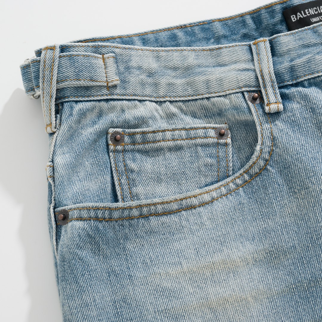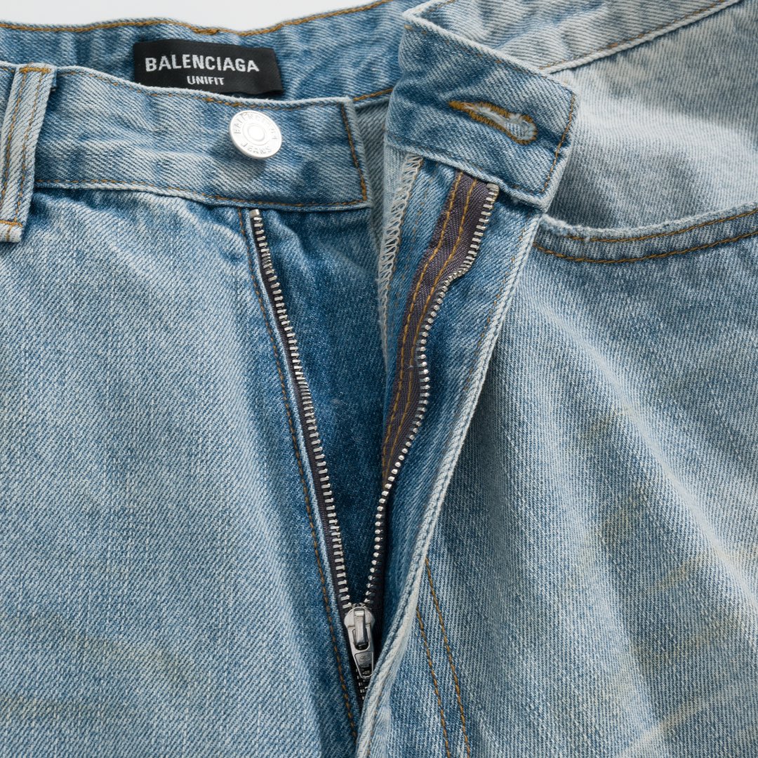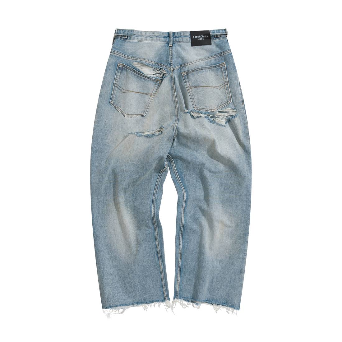 NIGO Balenciaga Men's and Women's Spring Solid Color Blue Ripped Raw Edge Jeans Pants #nigo75762