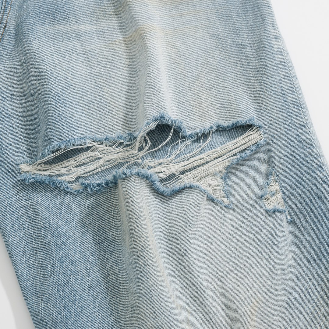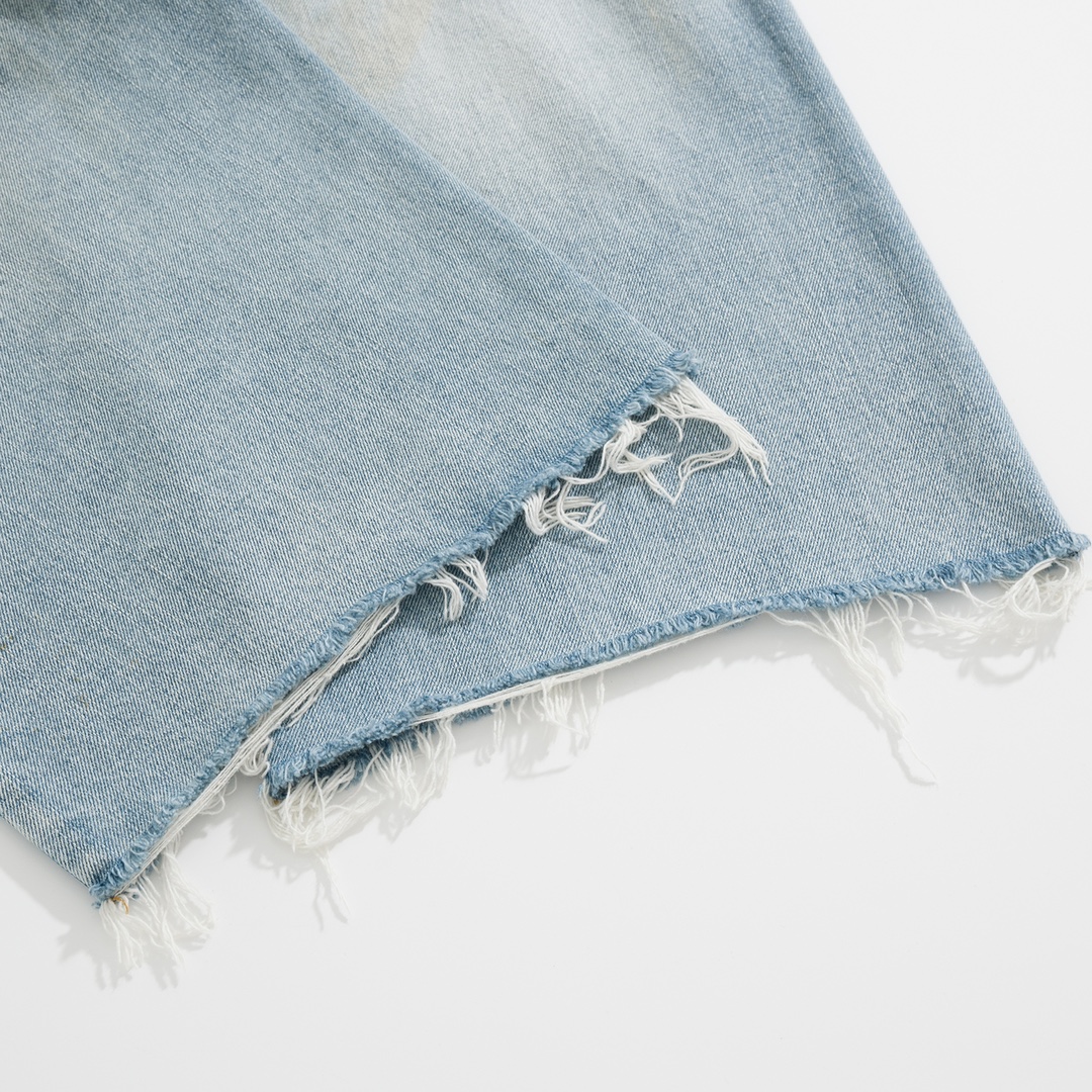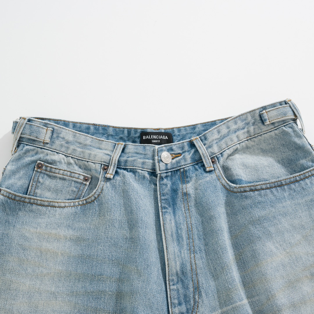 NIGO Balenciaga Men's and Women's Spring Solid Color Blue Ripped Raw Edge Jeans Pants #nigo75762