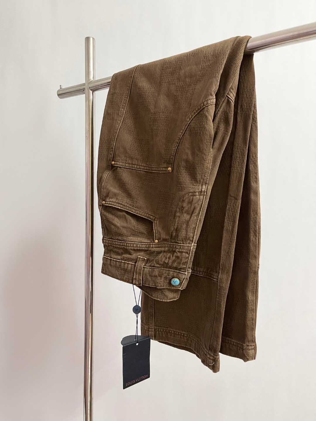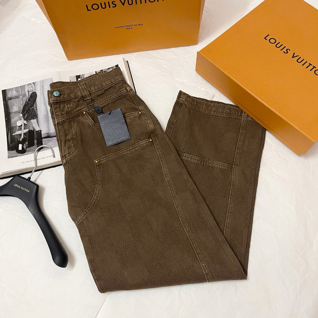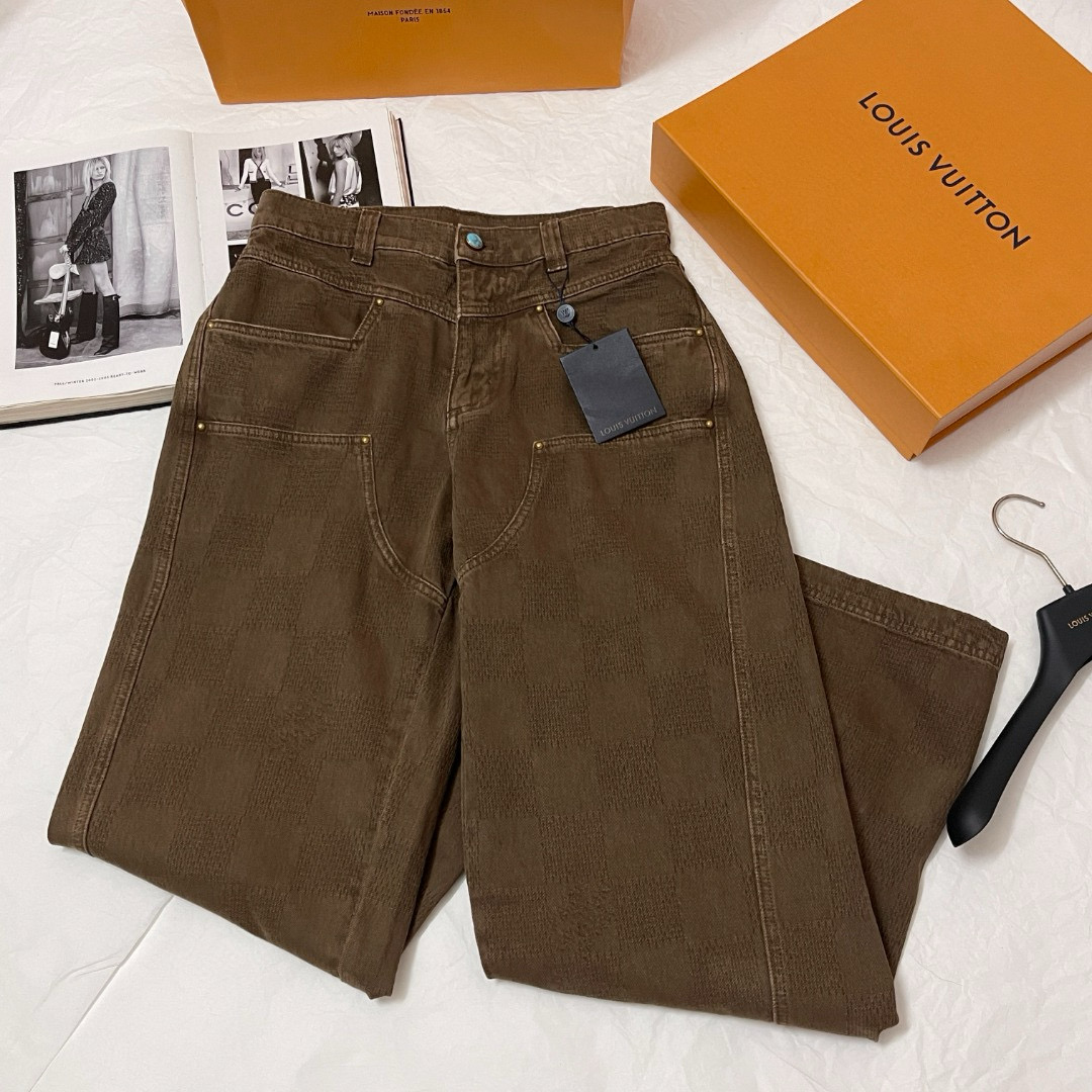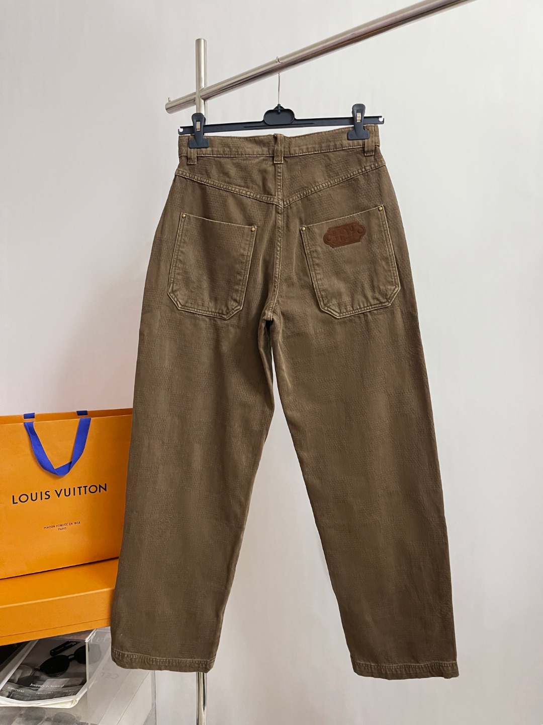 NIGO Louis Vuitton Men's Spring Autumn Brown Washed Effect Zipper Closure Straight Leg Jeans Pants #nigo75359