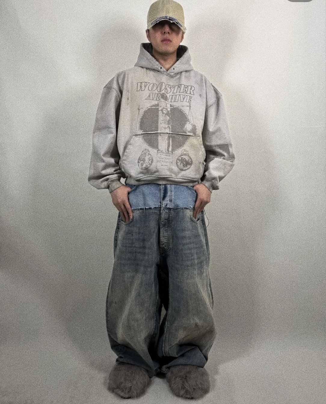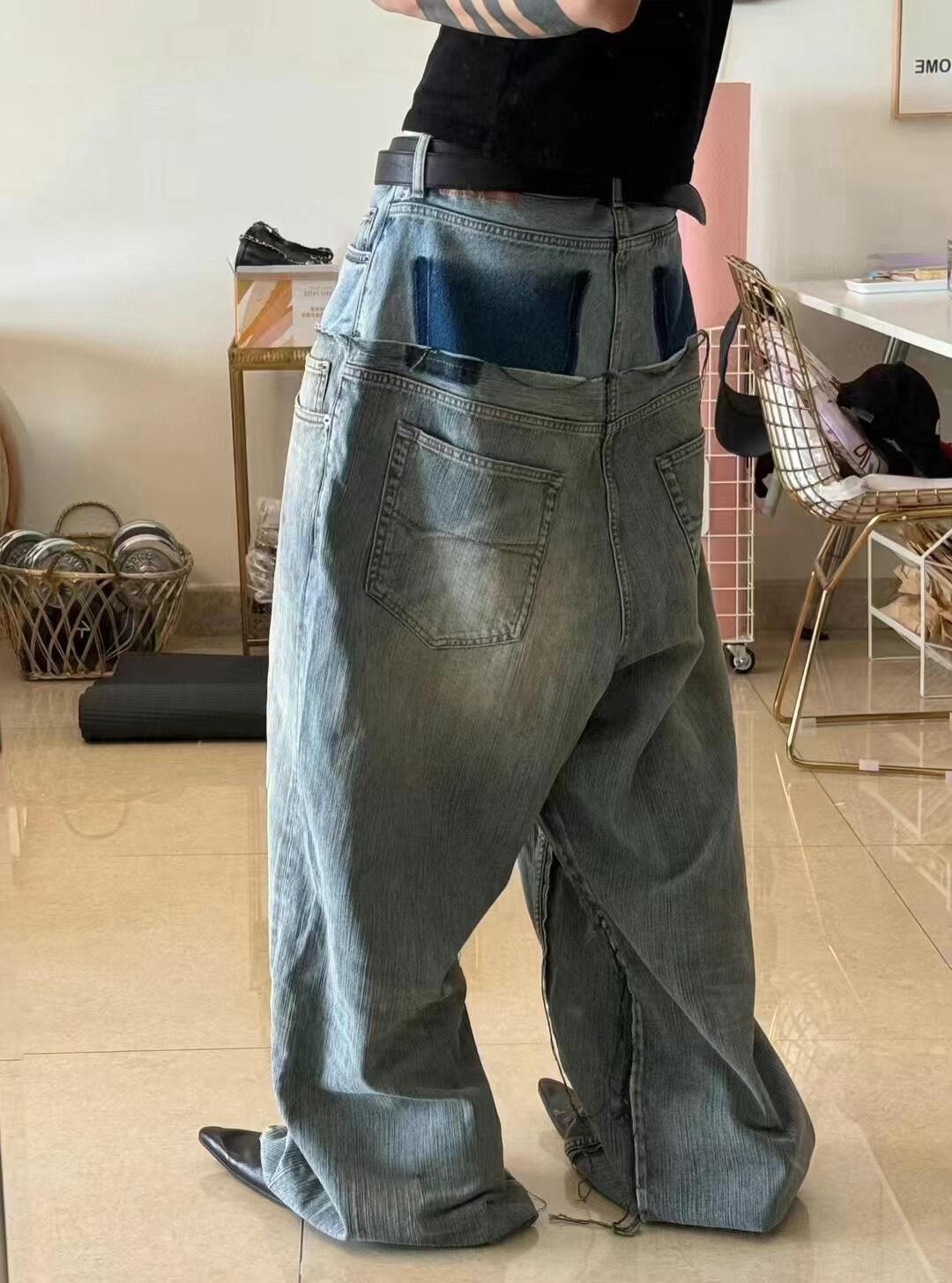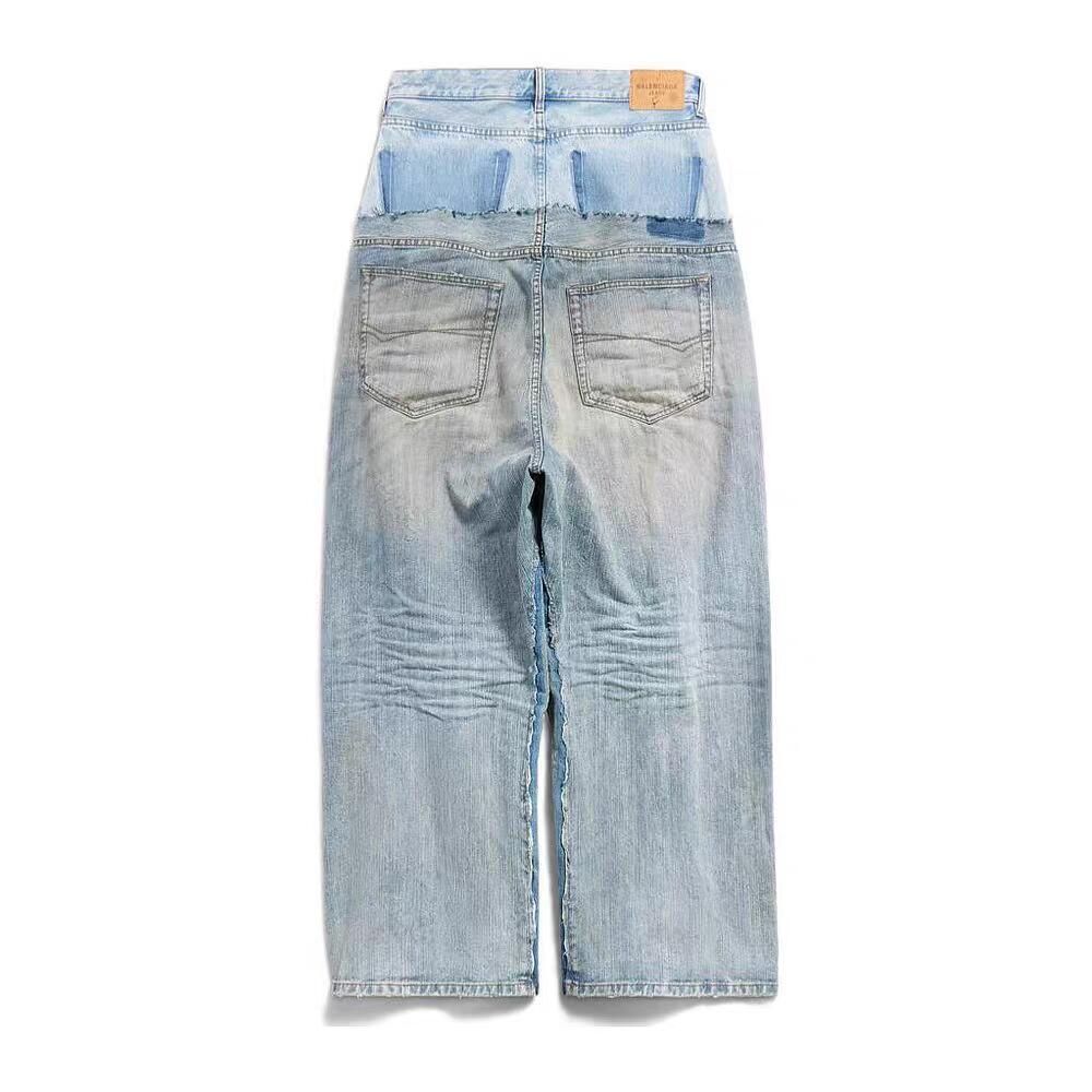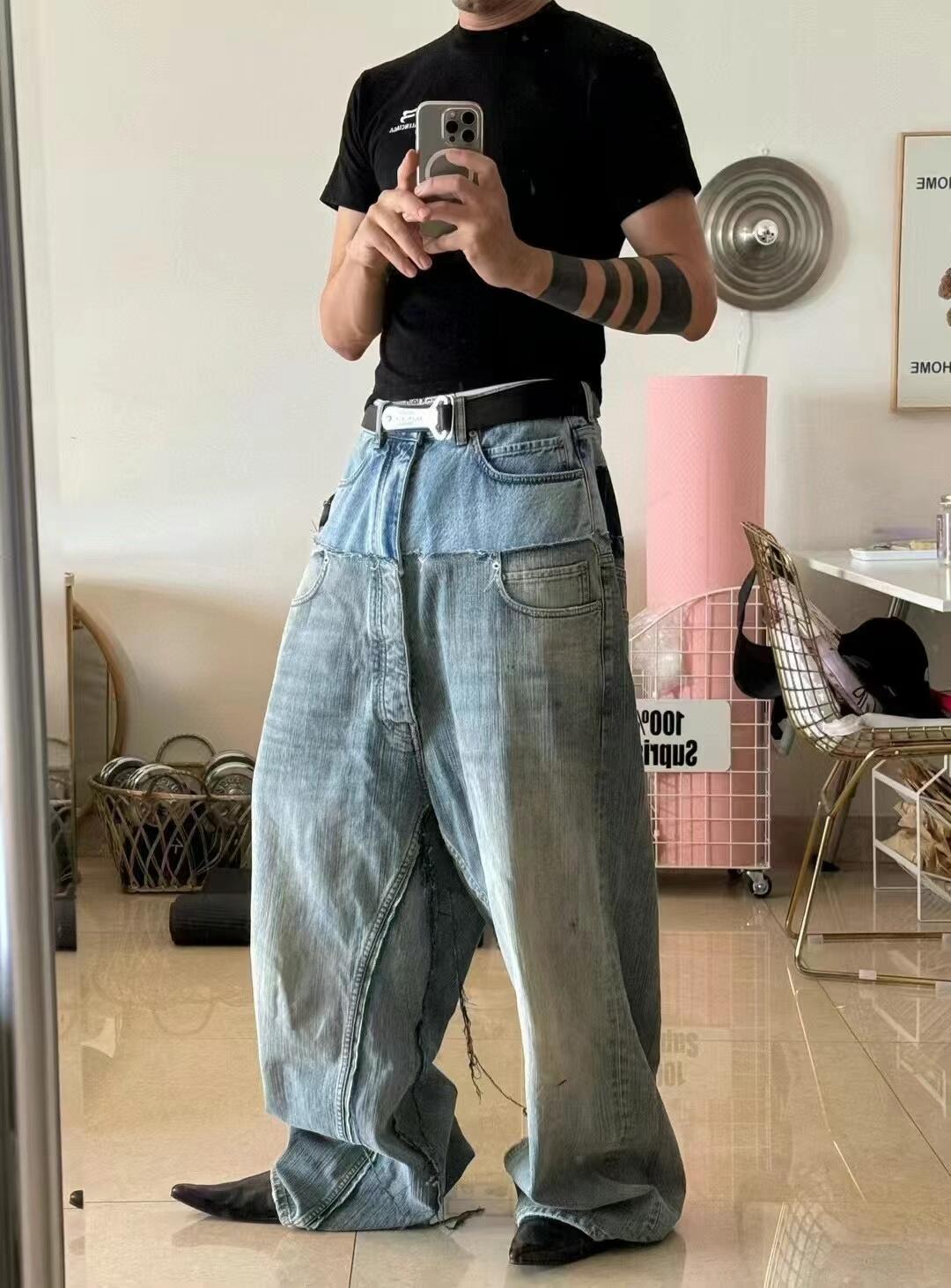 NIGO Balenciaga Men's Old Solid Color Splicing Old Jeans Casual Cut-Up Baggy Straight Pants Ngvp #nigo1146