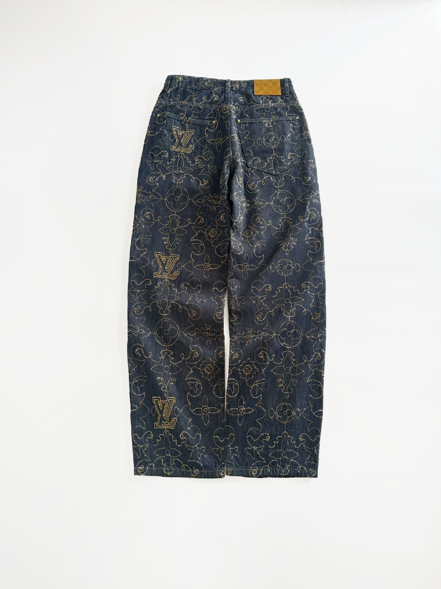 NIGO Louis Vuitton Men's Spring and Autumn Logo Letter Embroidery Zipper Insert Pocket Jeans Pants #nigo74334