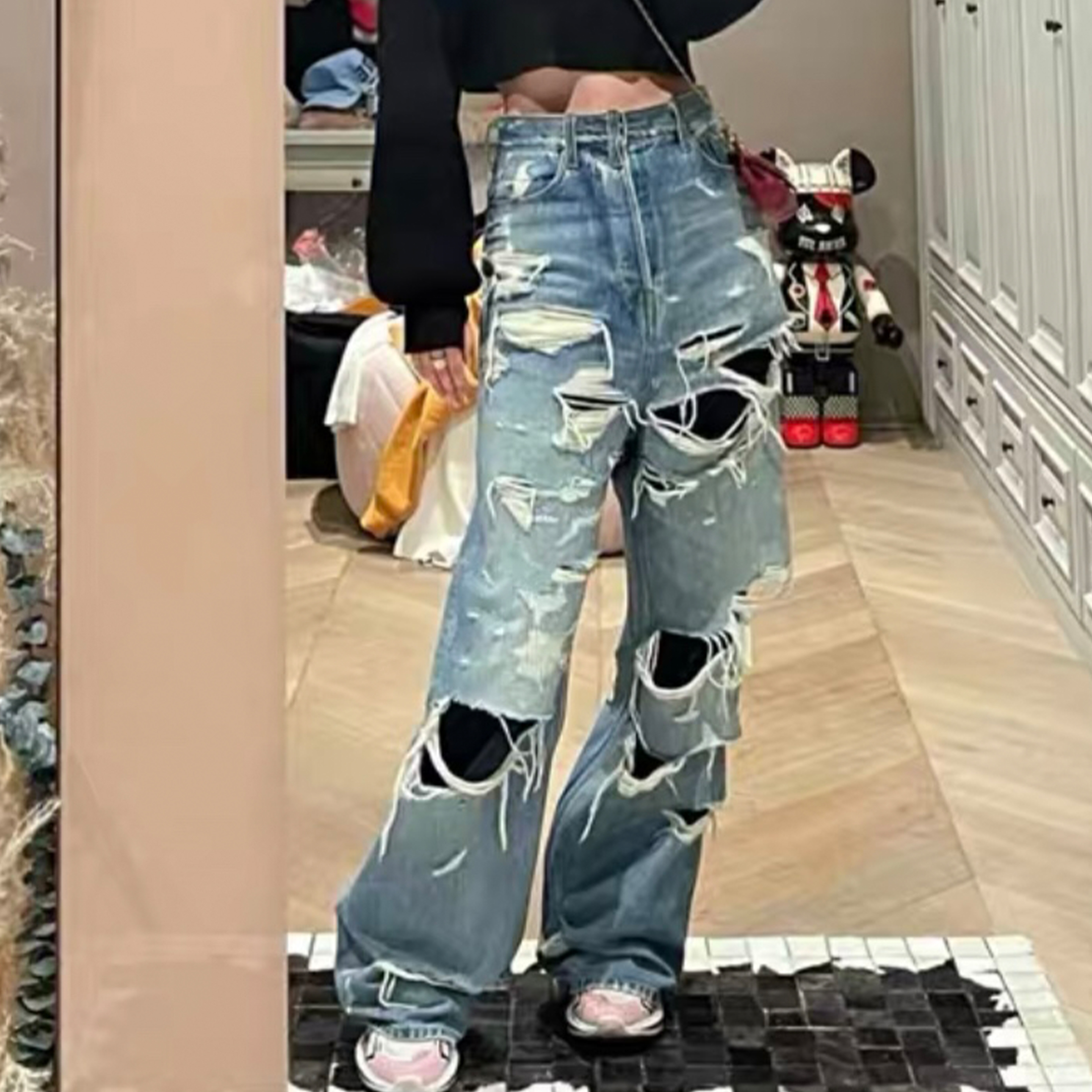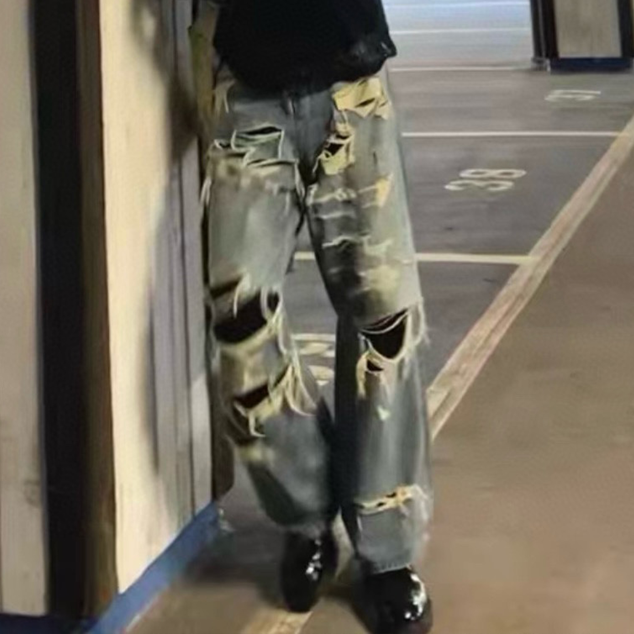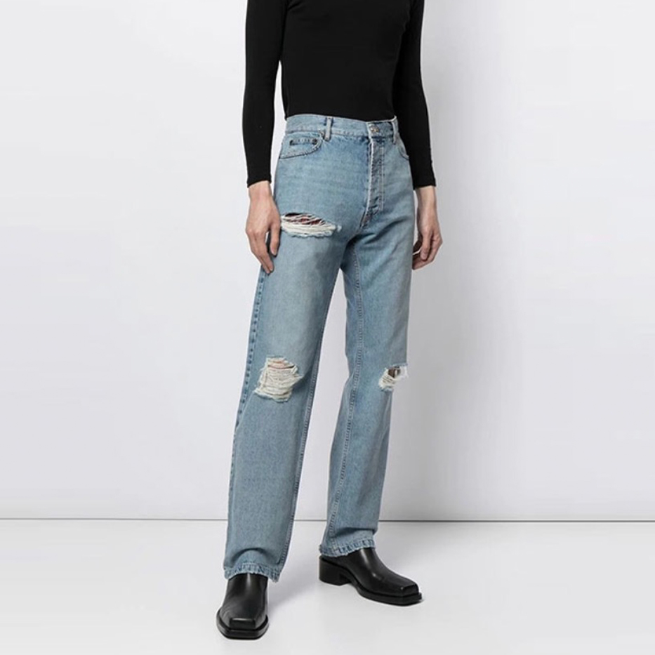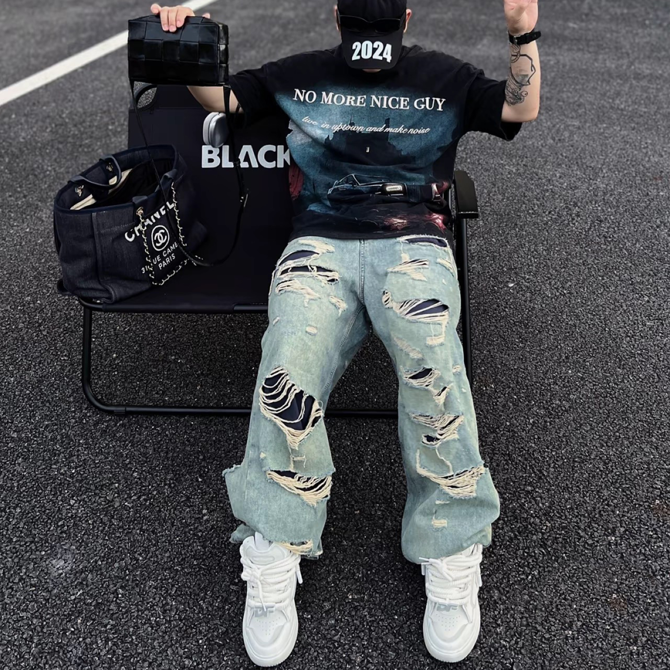 NIGO Vetements Men's Four Seasons Hole Blue Vintage Old Jeans Loose Straight Casual Wide Leg Pants Ngvp #nigo9123