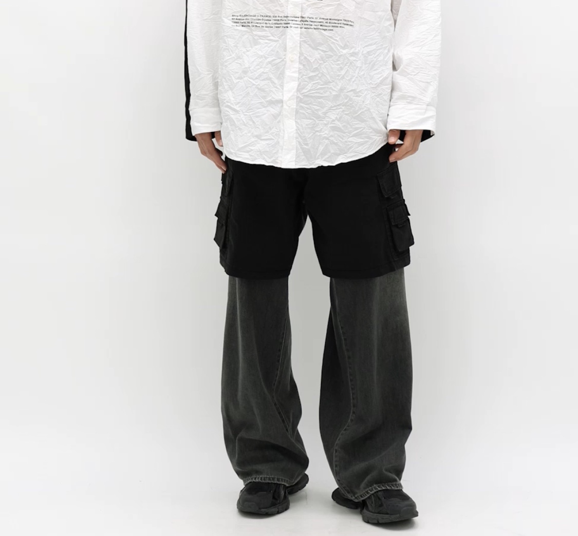 NIGO Rick Owens Men's Spring & Fall Black Multi-Pocket Drawstring Zipper Wide Leg Flared Pants #nigo72482