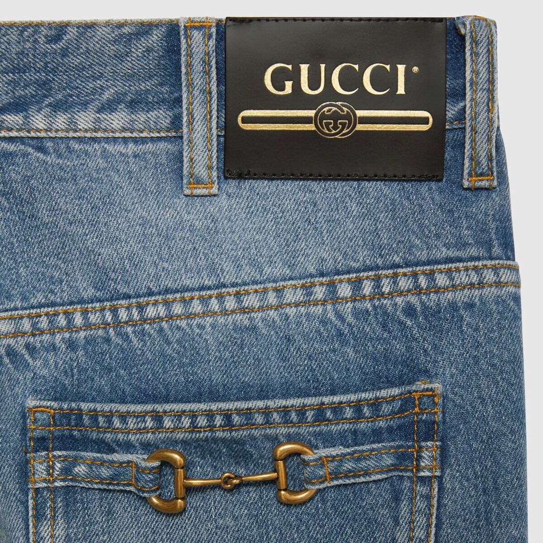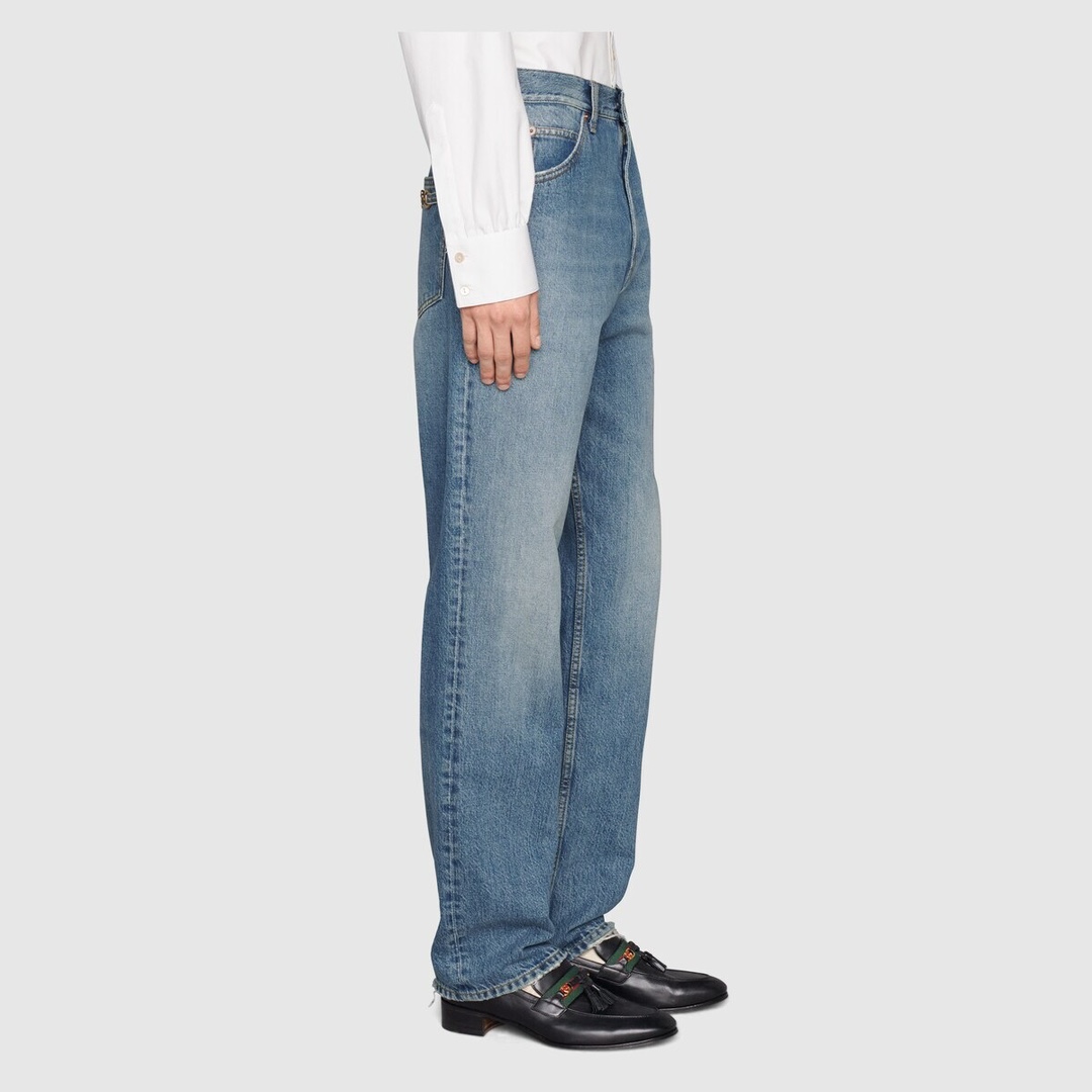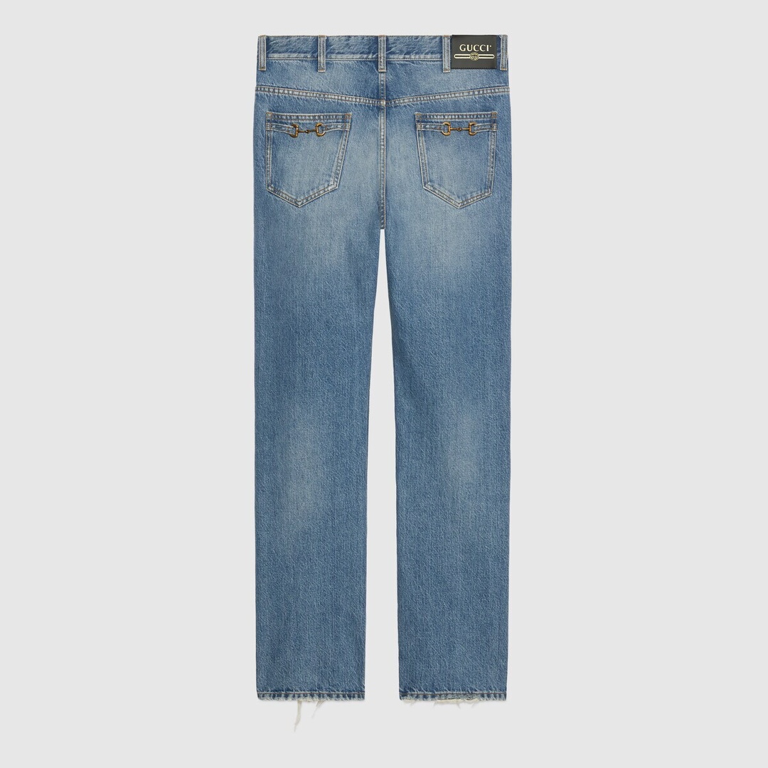 NIGO Gucci Men's Summer Logo Blue Gradient Washed Retro Casual Straight Leg Denim Pants #nigo71265