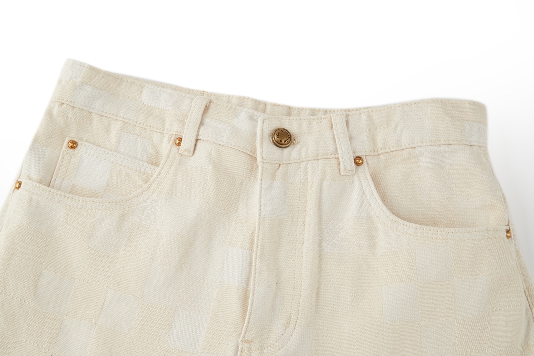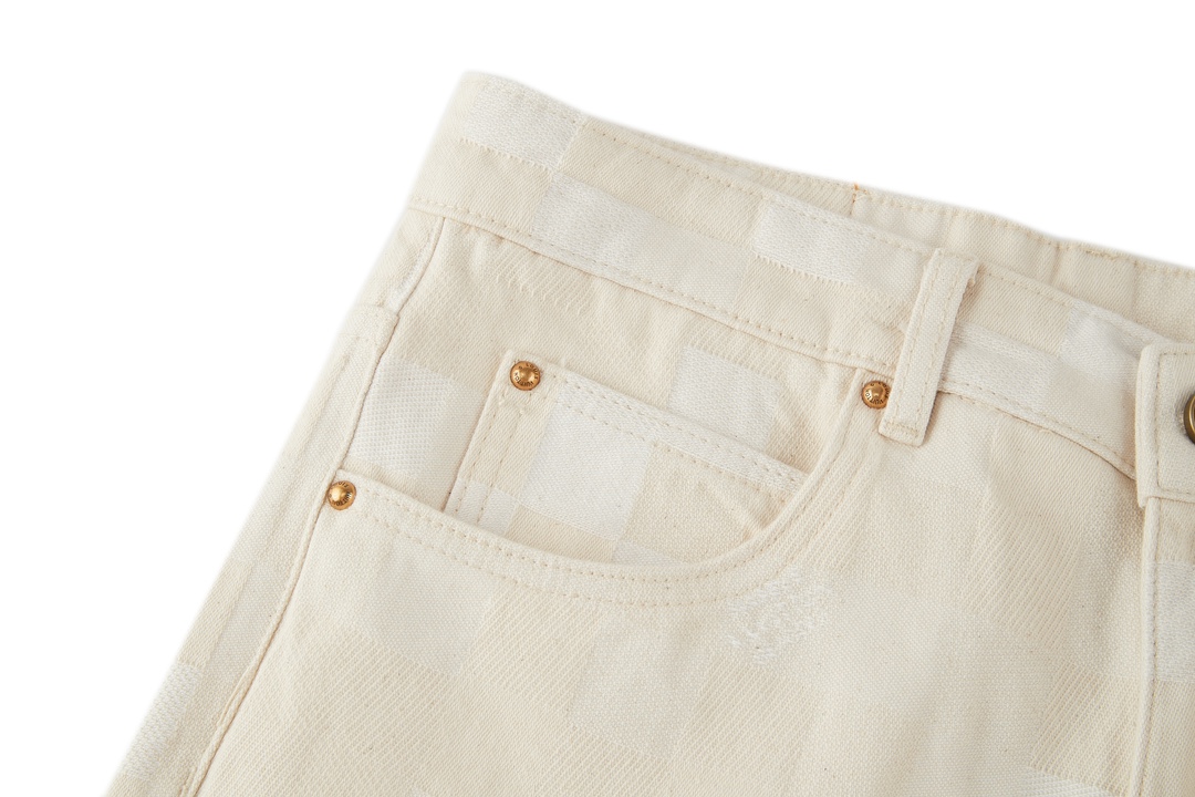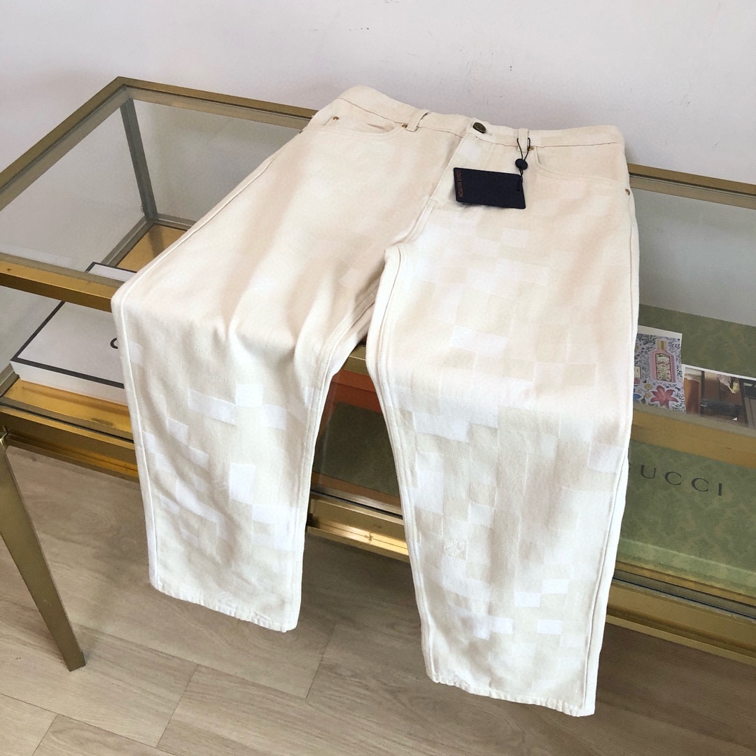 NIGO Louis Vuitton Men's Spring Summer Beige Plaid Jacquard Mid-Rise Straight Leg Jeans Pants #nigo99881
