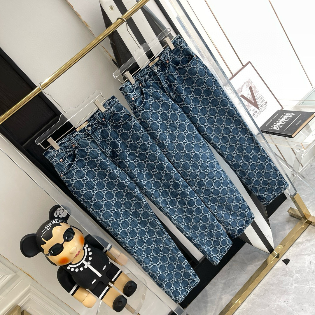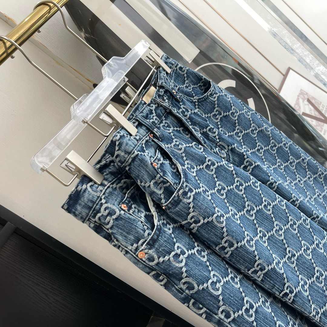 NIGO Men's Spring Autumn Blue Letter Print Jacquard Straight Zip Pocket Jeans Pants #nigo99275