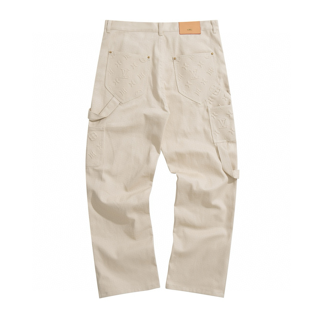 NIGO Louis Vuitton Men's Spring/Summer Monogrammed Khaki Mid-Rise Zipper Slim Straight Jeans Pants #nigo98427