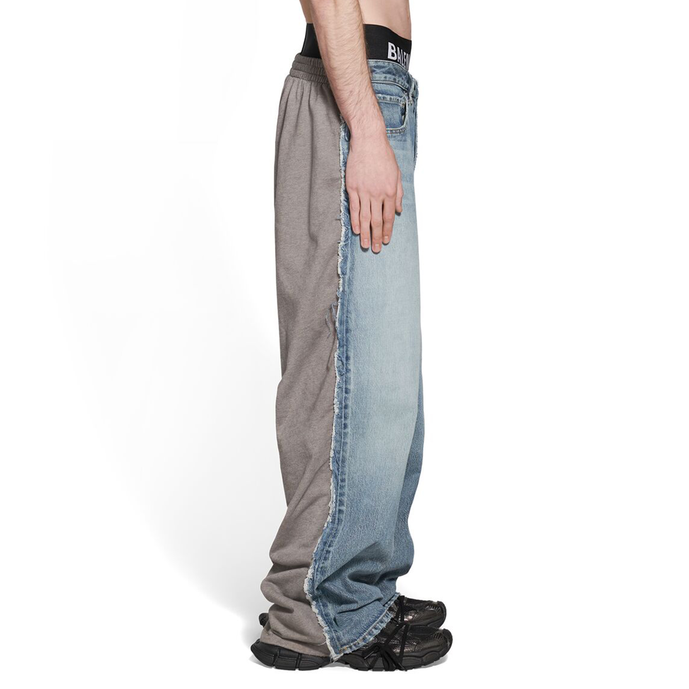 NIGO Balenciaga Men's Fashion Splicing Button Straight Washed Old Hybrid Baggy Blue Denim Pants Ngvp #nigo6188