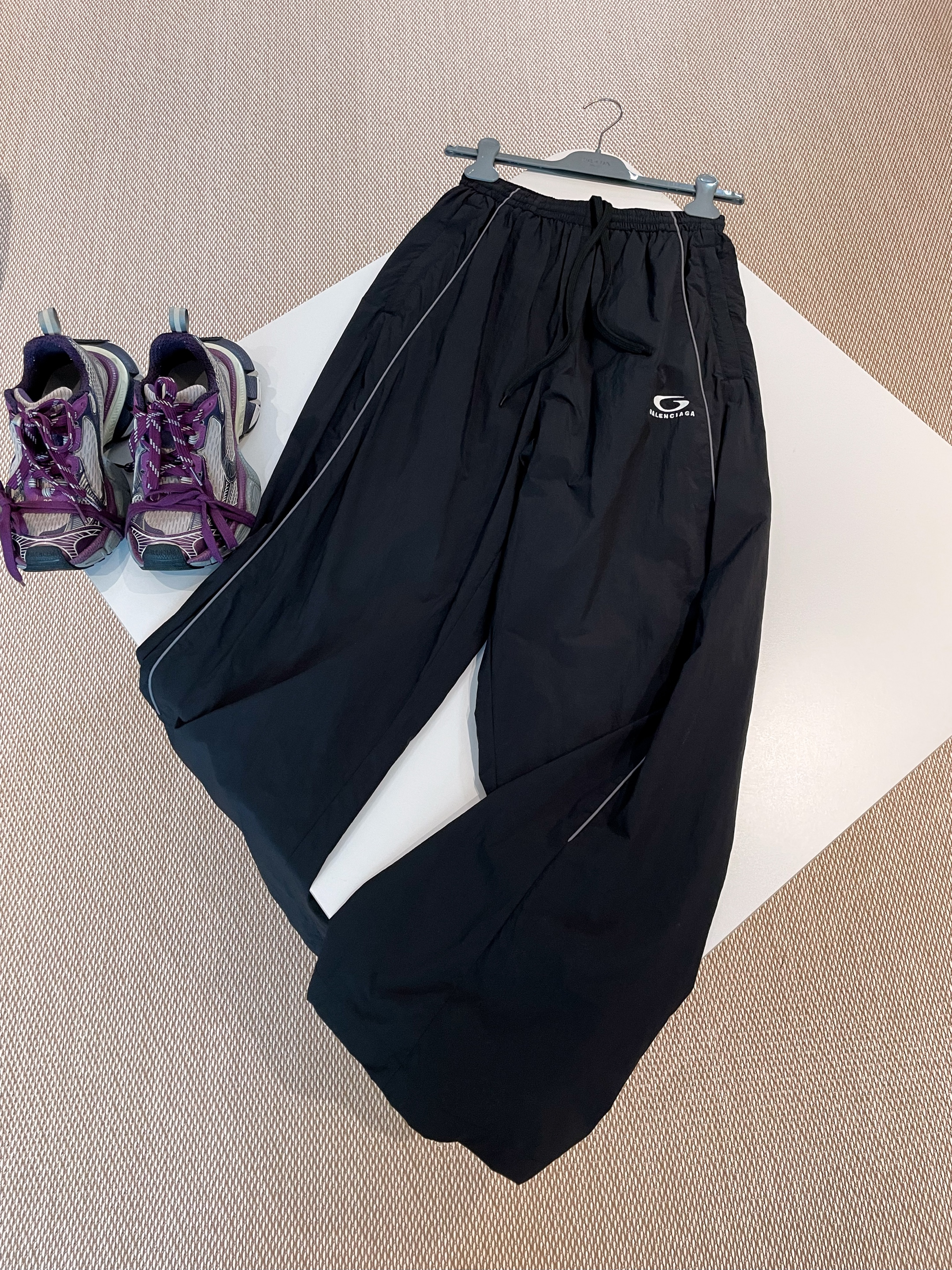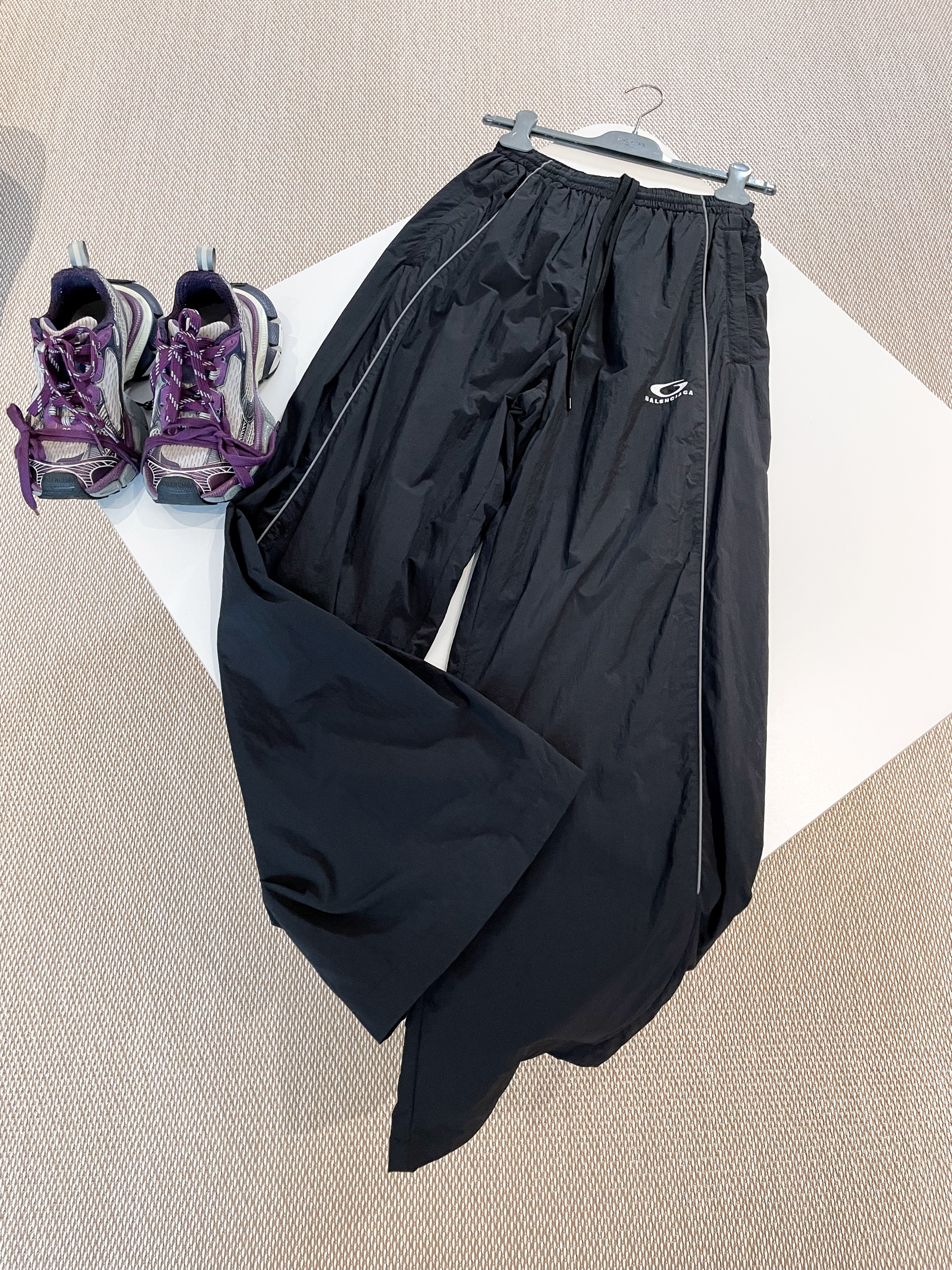 NIGO Balenciaga Men's Spring/Summer Polyester Black Stretch Fabric Fitted Sweatpants Pants #nigo75882