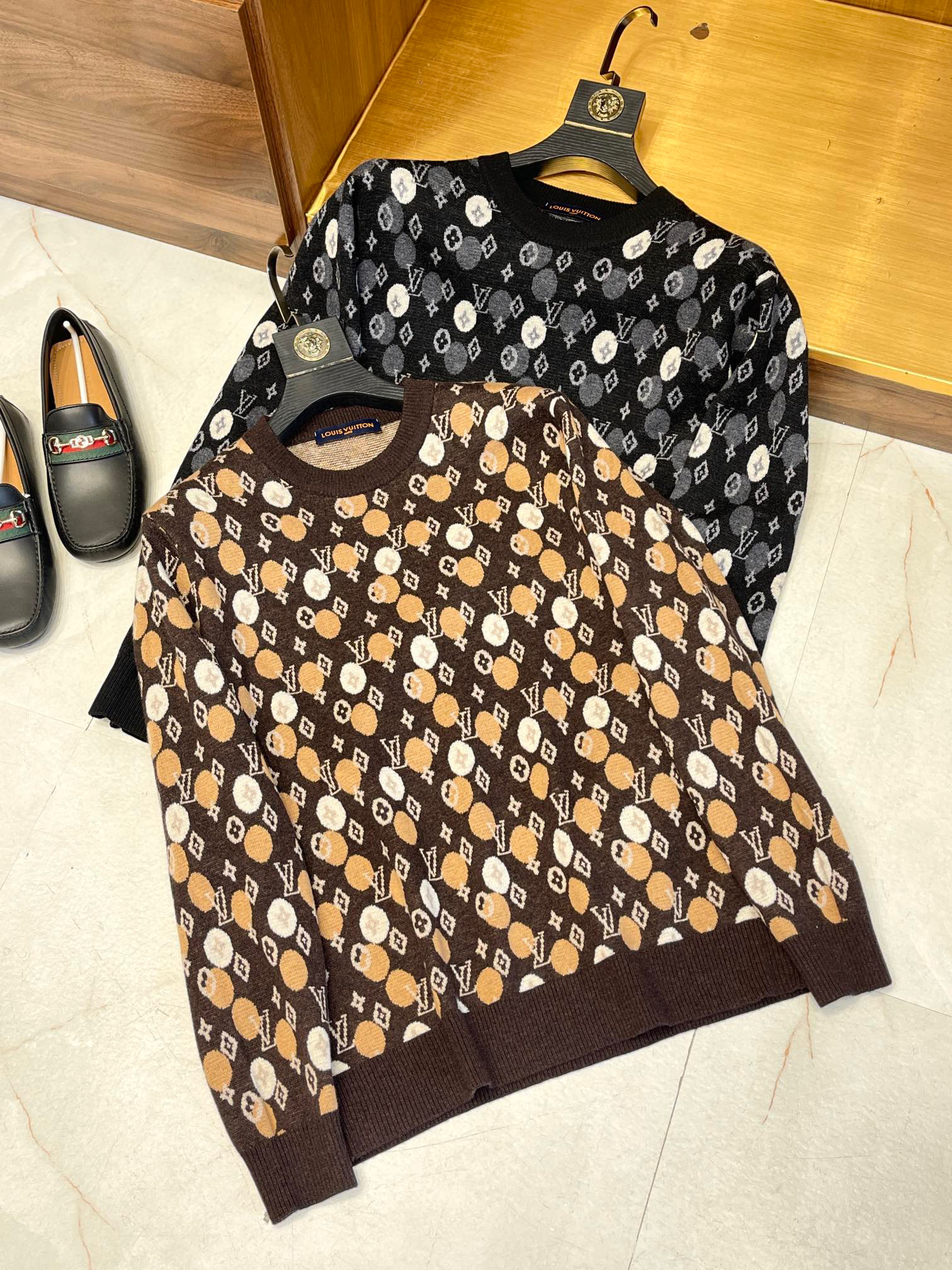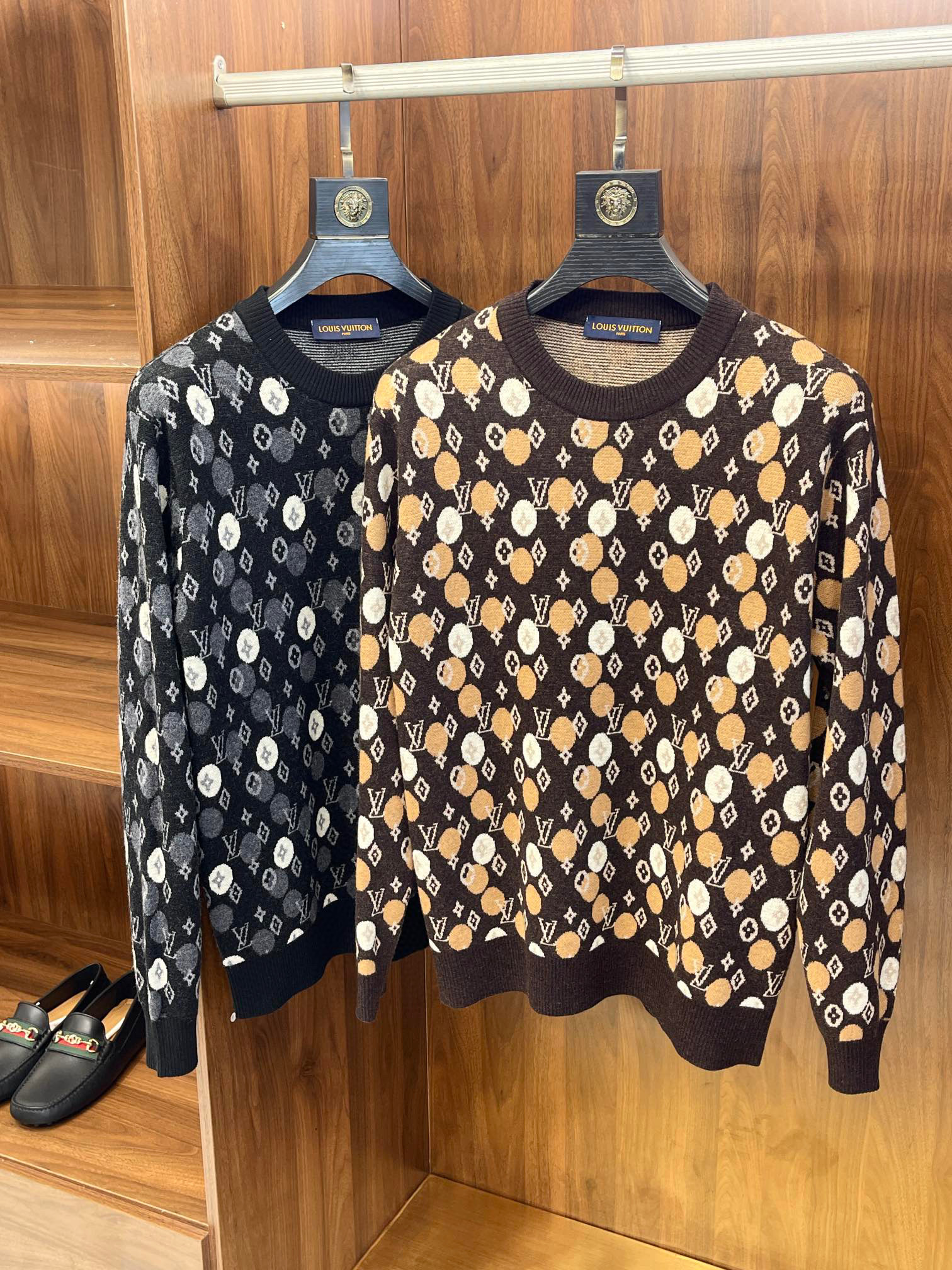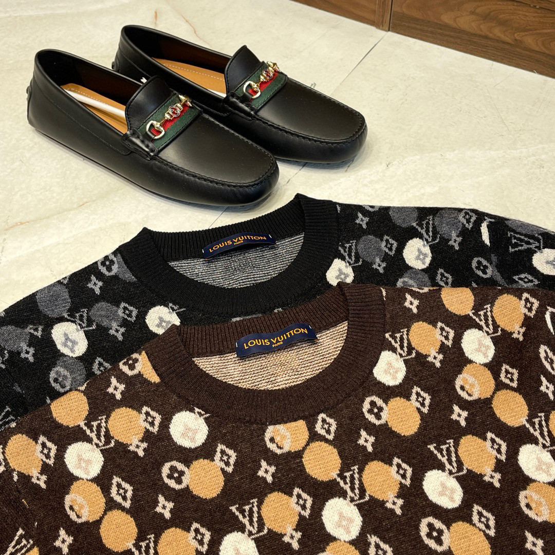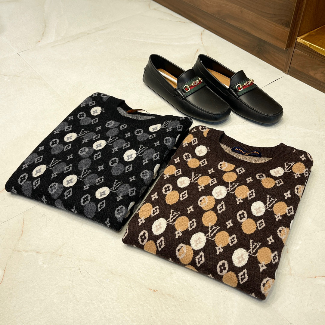 Louis Vuitton Men's Fall/Winter LV x YK Hand-Painted Polka Dot Print Crew Neck Wool Sweater #nigo97177