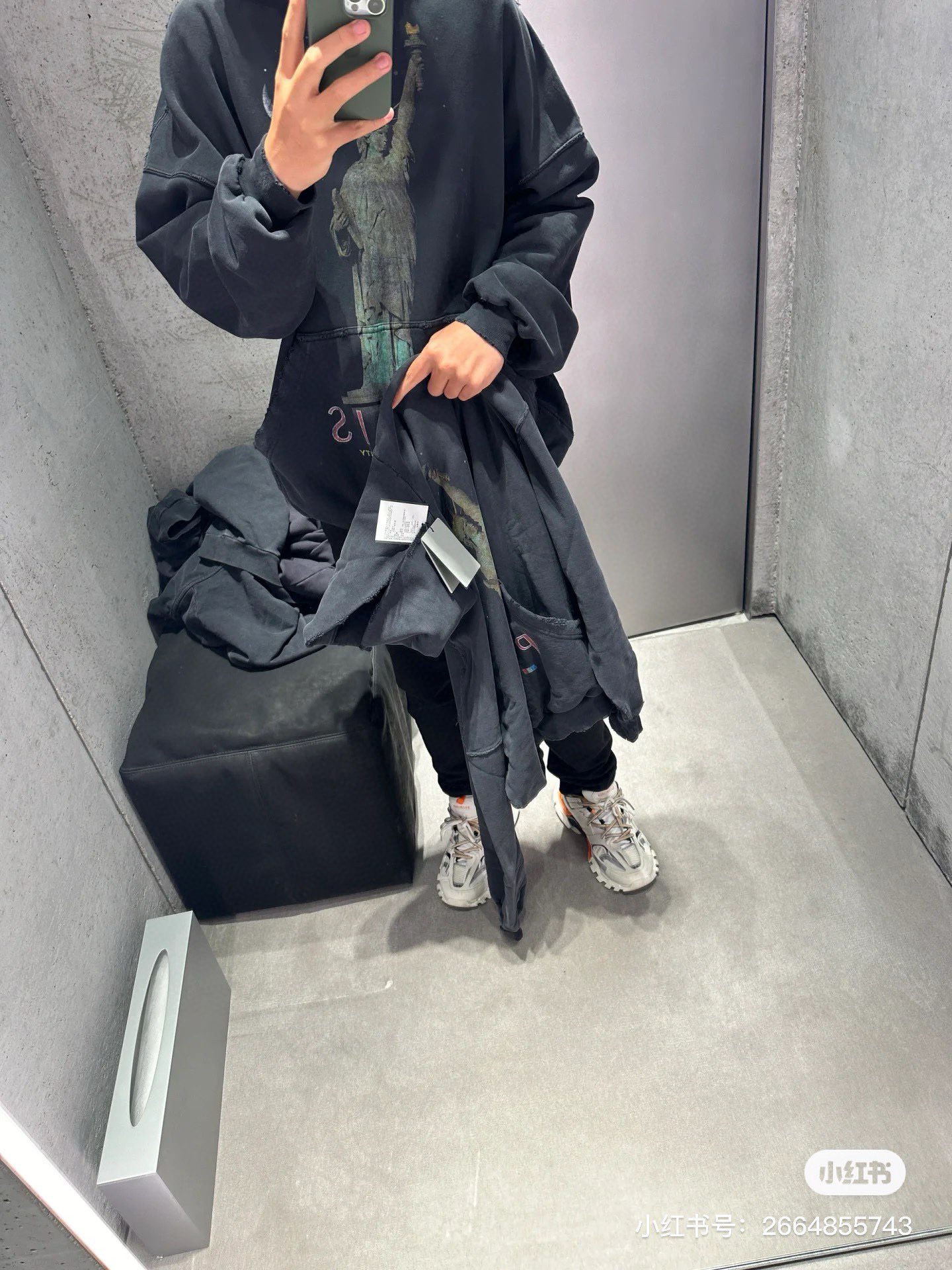NIGO Balenciaga Men's Spring And Autumn High Street Cotton PARIS LIBERTY Black Loose Old Torn Hooded Sweatshirt Ngvp #nigo8964