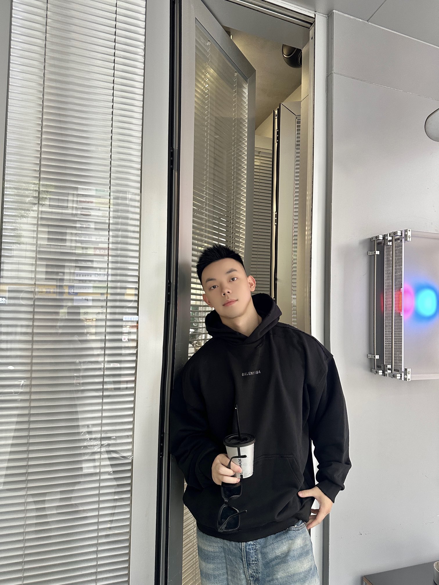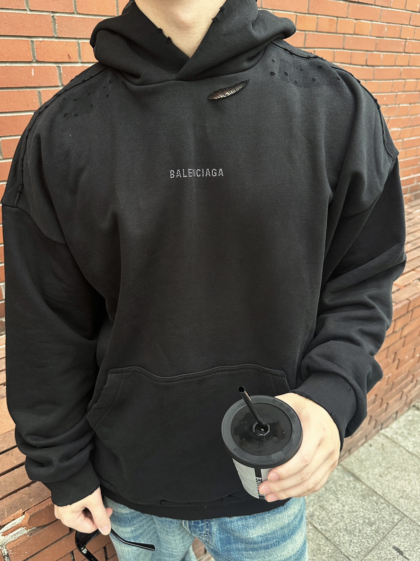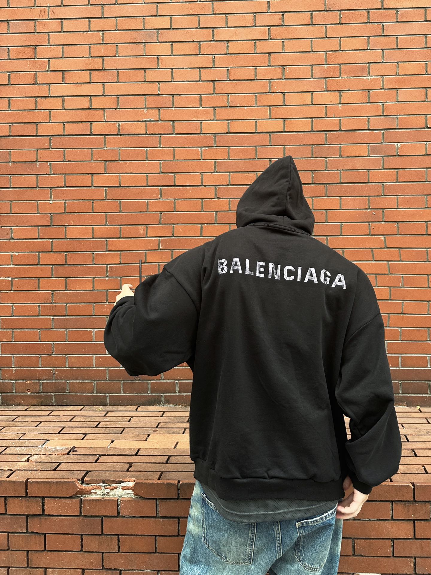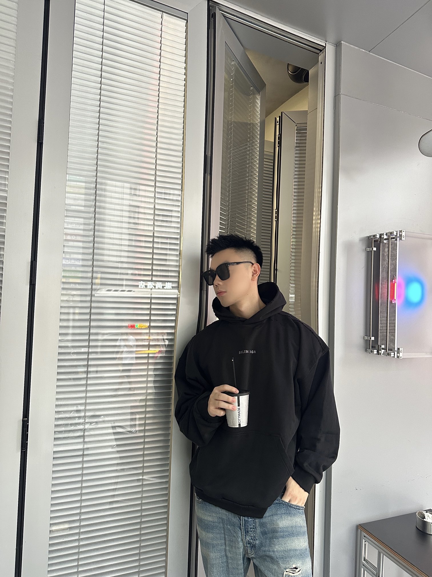 NIGO Balenciaga Men's Spring and Autumn Hot Drill Logo Letter Print Black Hooded Sweatshirt #nigo73135
