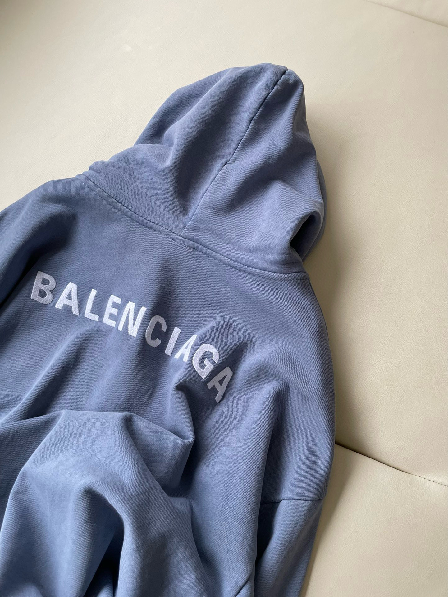 NIGO Balenciaga Men's Spring and Fall Blue Tie-Dye Gradient Embroidered Logo Regular Fit Hooded Sweatshirt Pullover #nigo98388