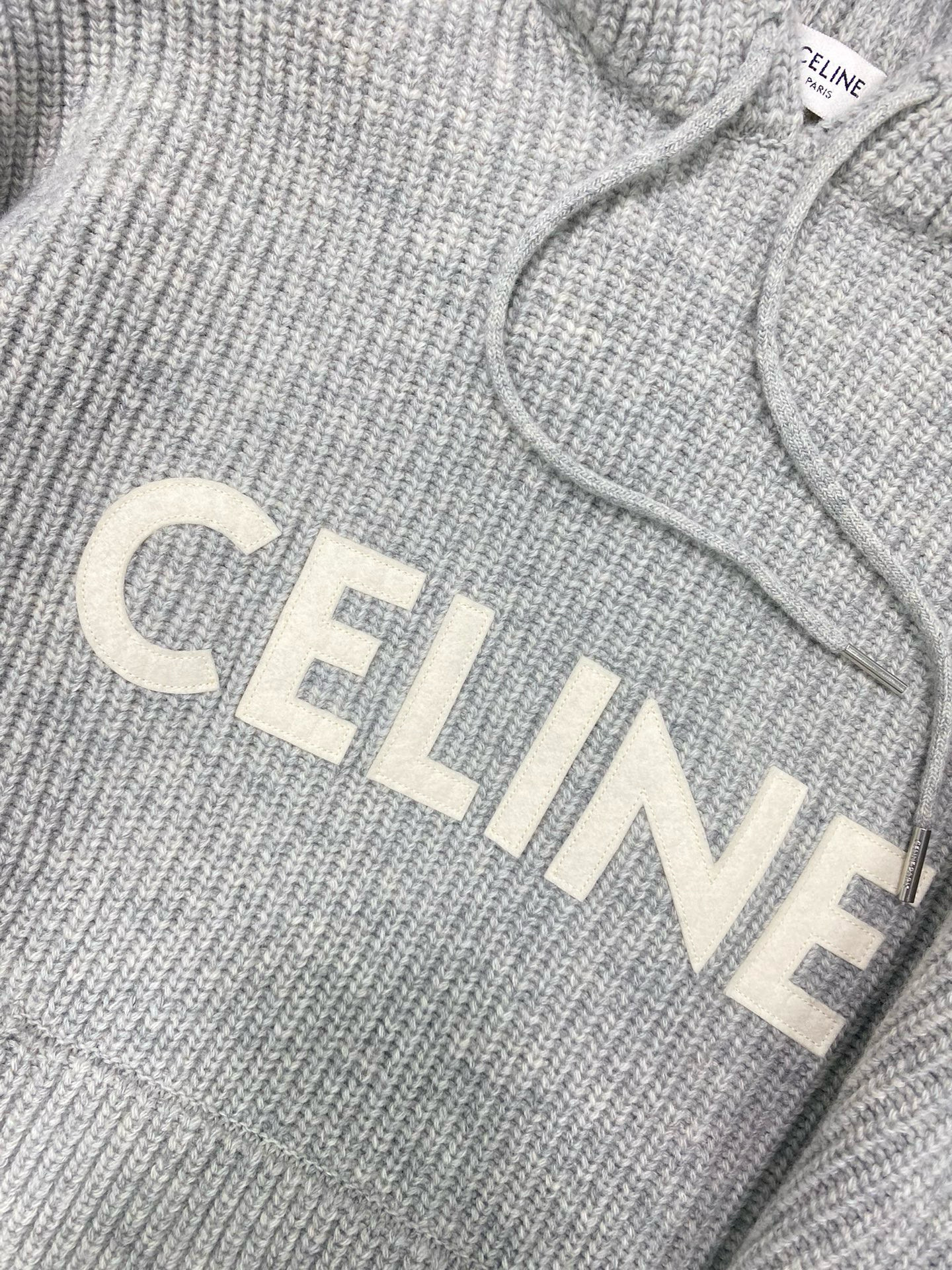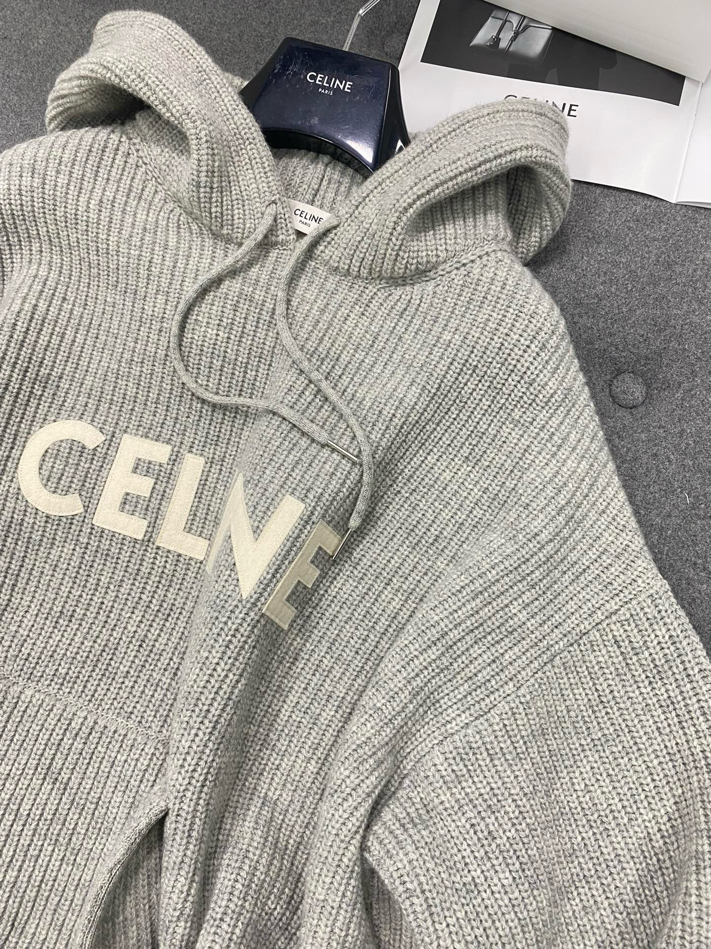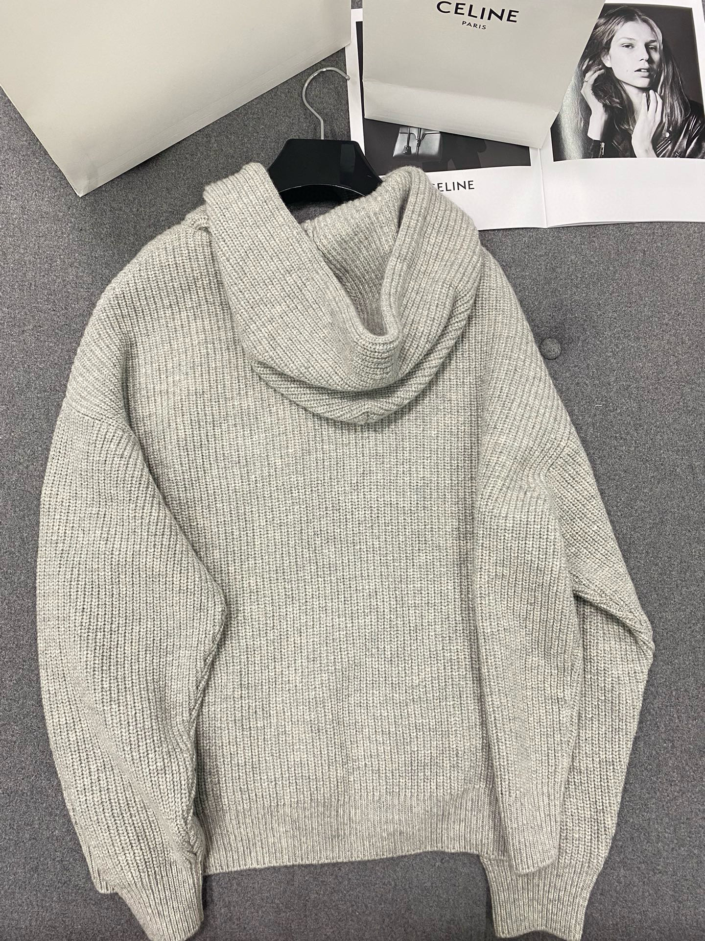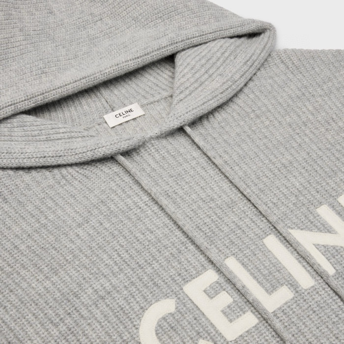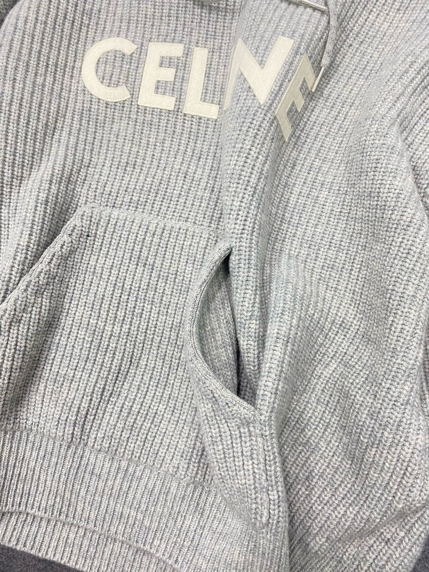 NIGO Celine Men's and Women's Autumn/Winter Grey Ribbed Wool Knit Hooded Sweatshirt Pullover #nigo97672