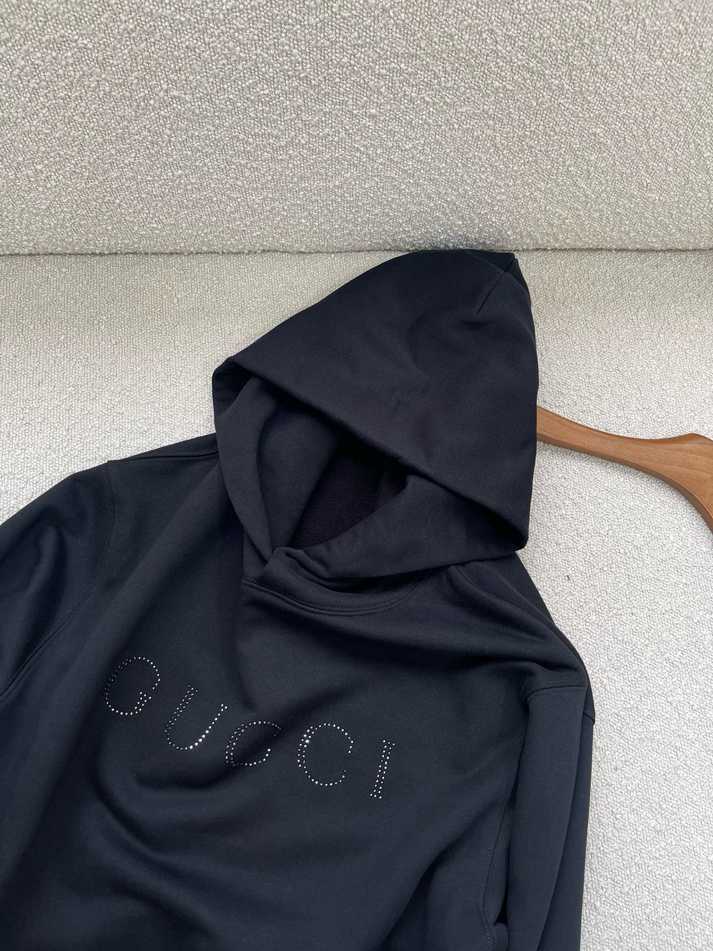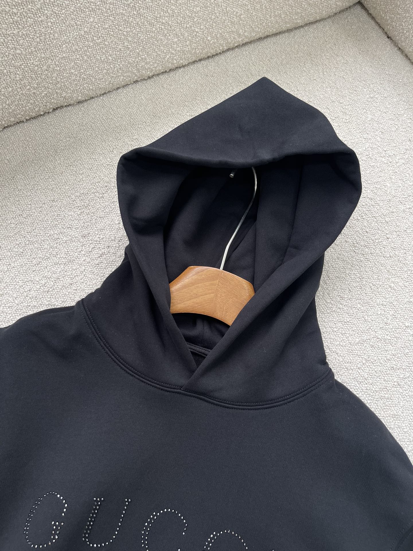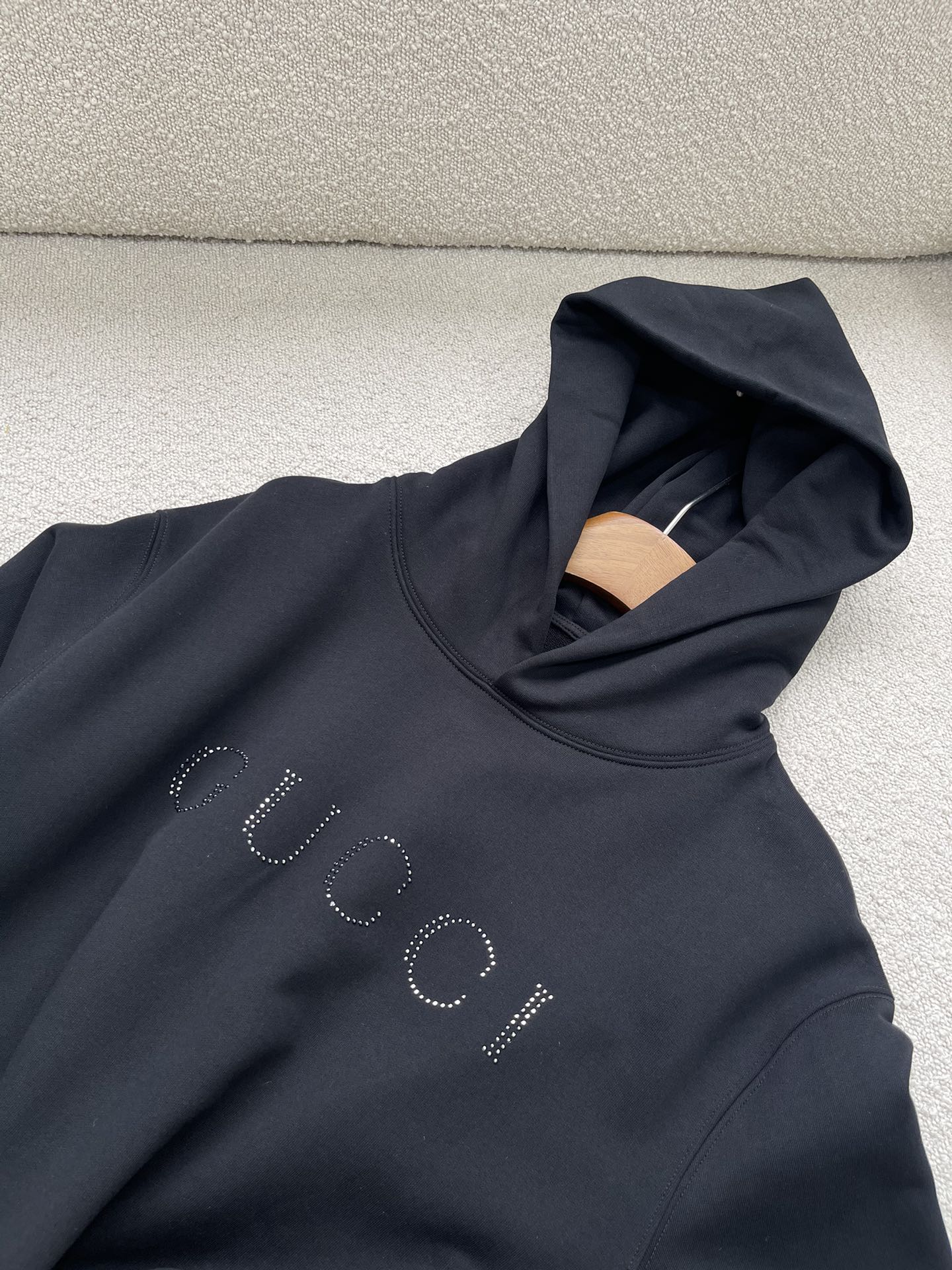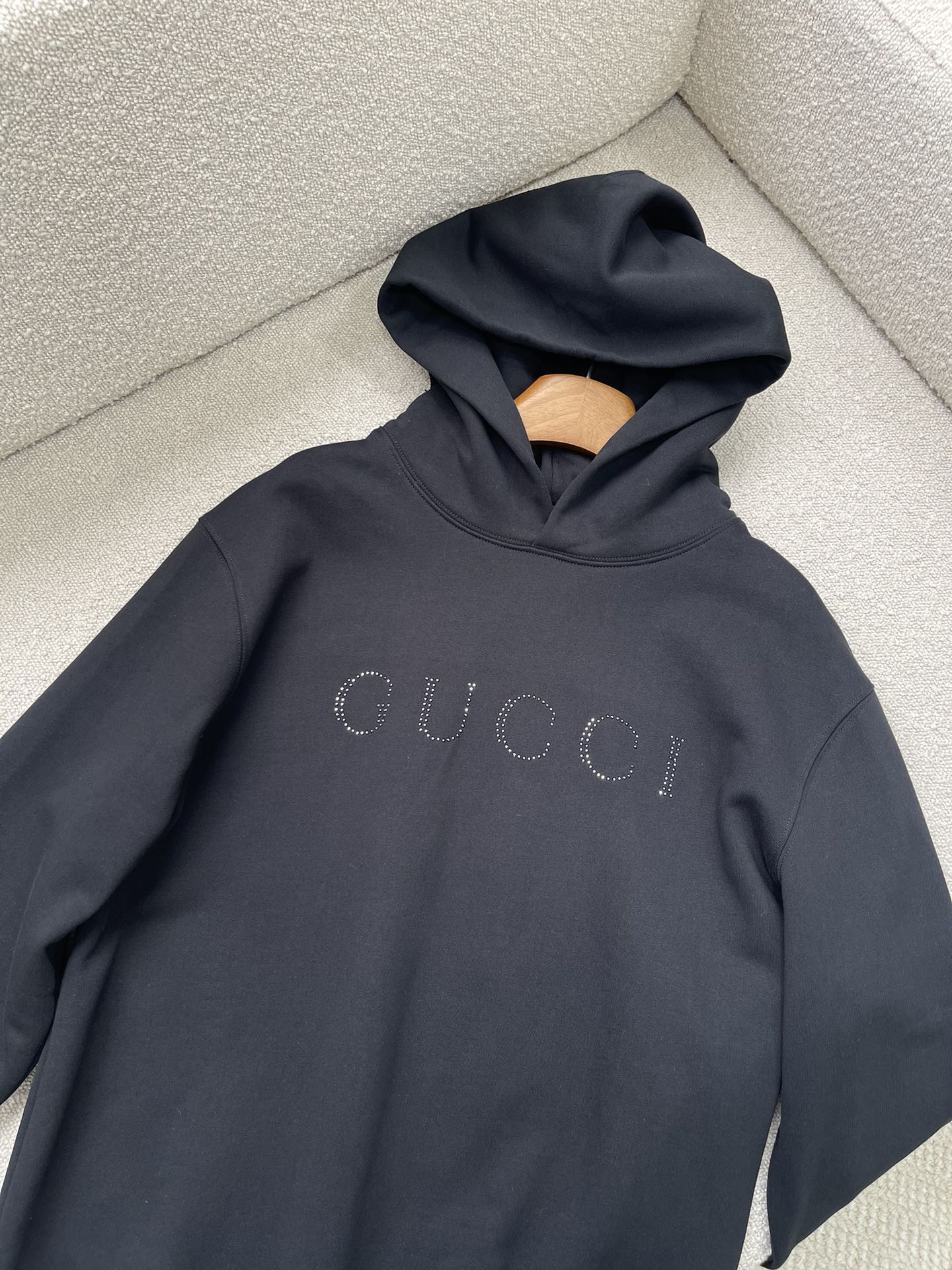 NIGO Gucci Men's Fall Knitted Cotton Hooded Sweatshirt Crystal Gucci Embroidery Black Fashion Casual Pullover Hoodie #nigo71487