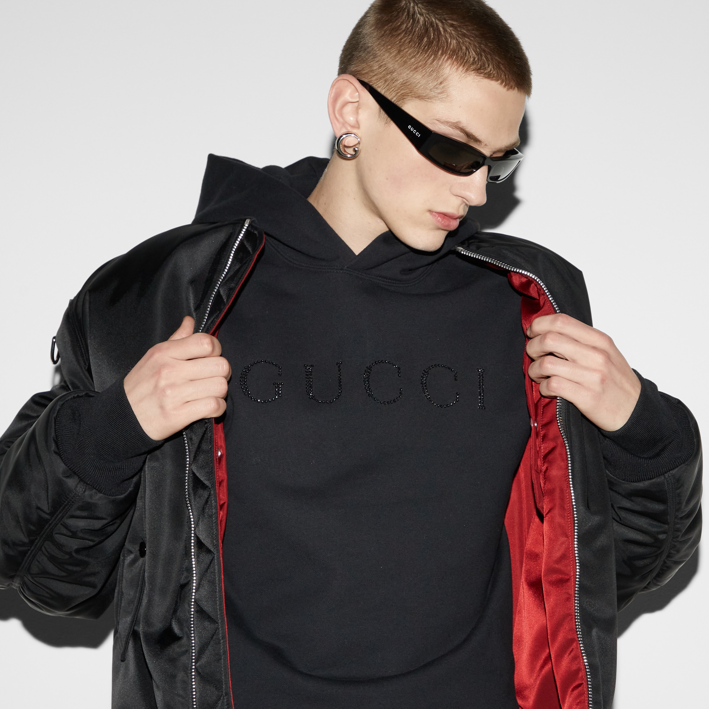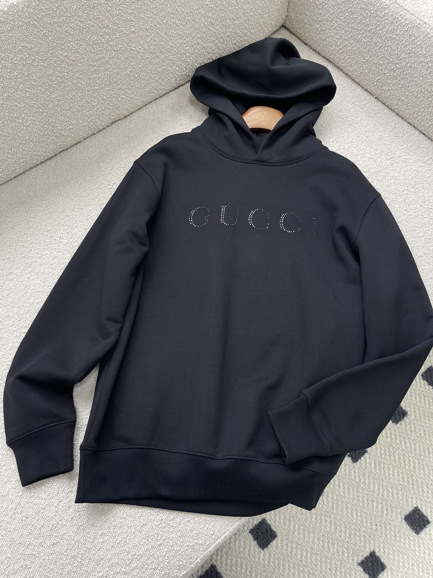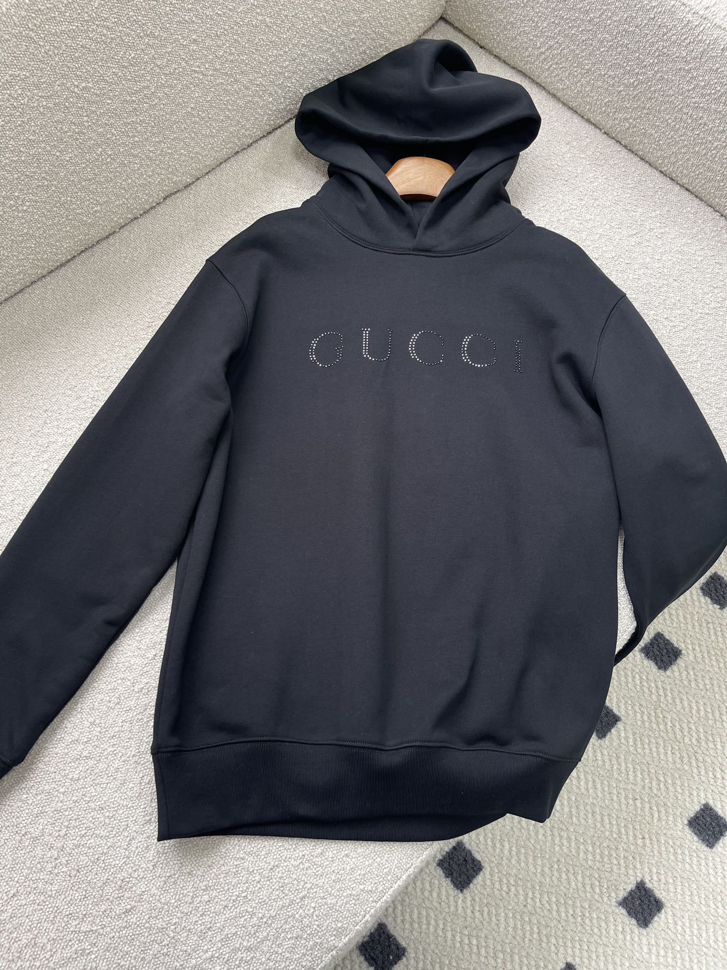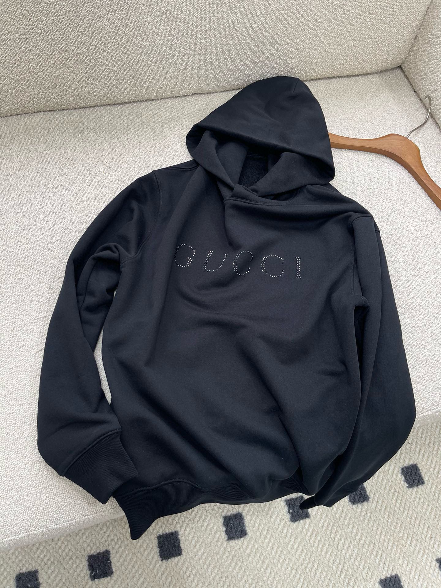 NIGO Gucci Men's Fall Knitted Cotton Hooded Sweatshirt Crystal Gucci Embroidery Black Fashion Casual Pullover Hoodie #nigo71487