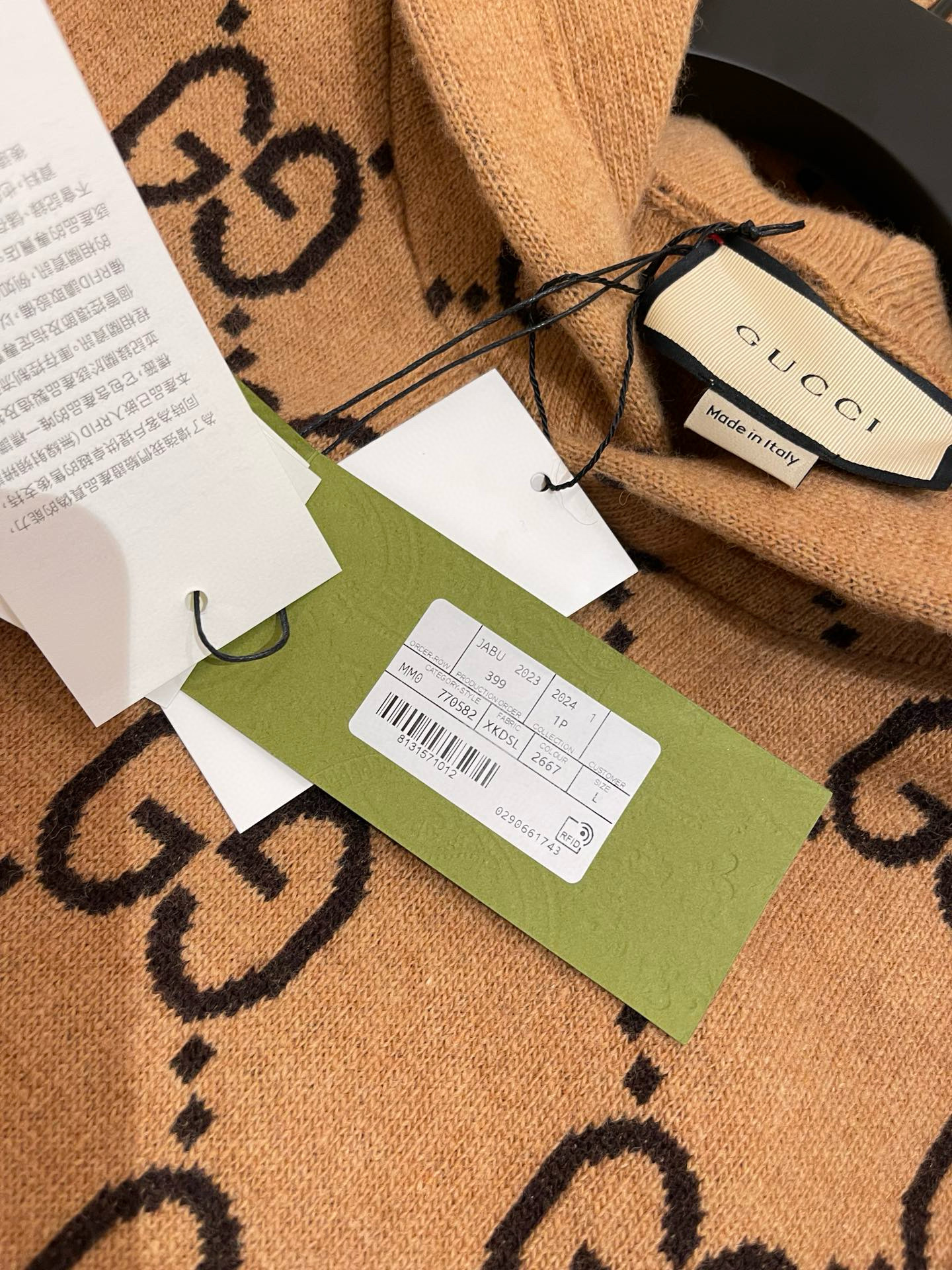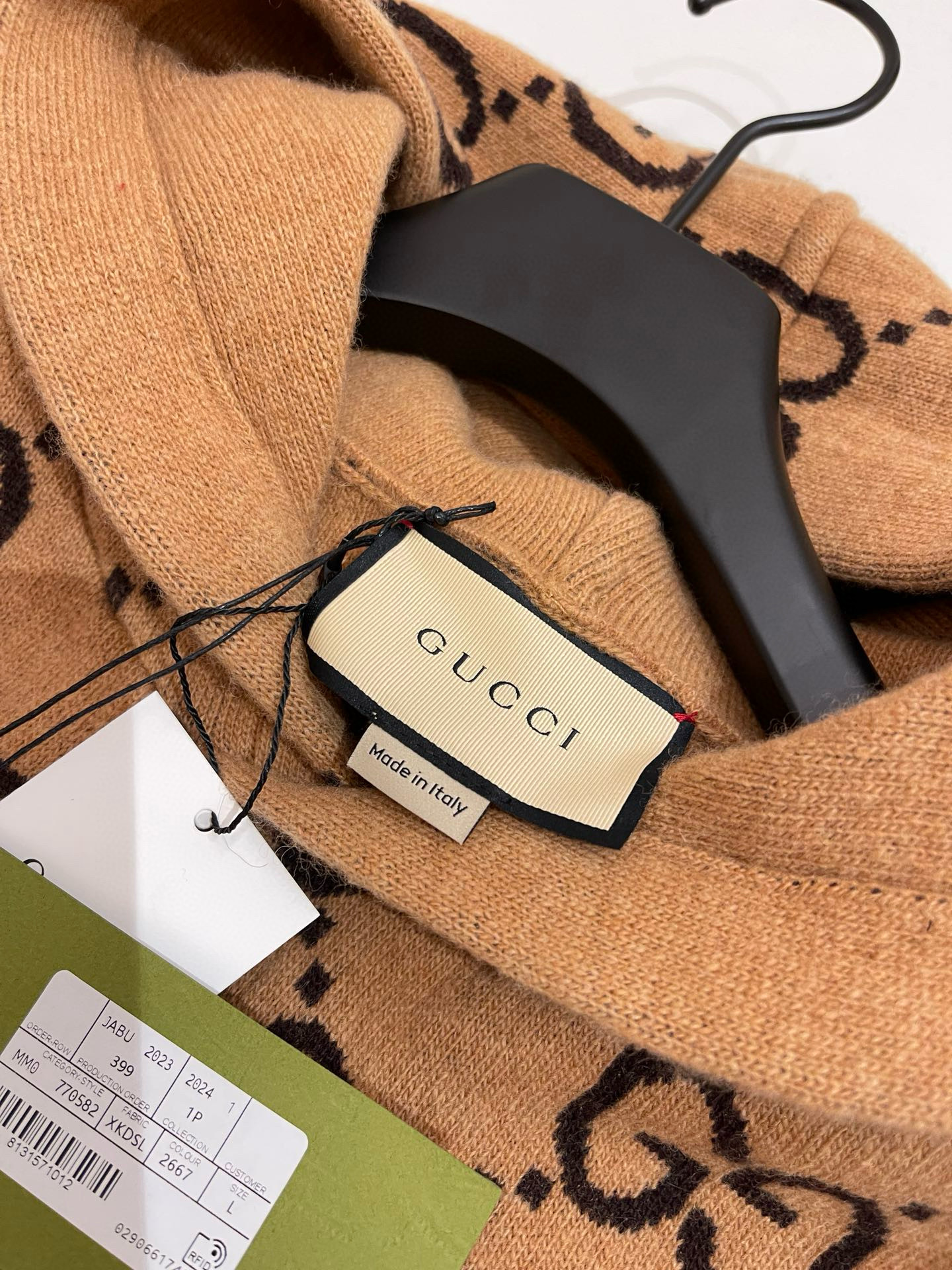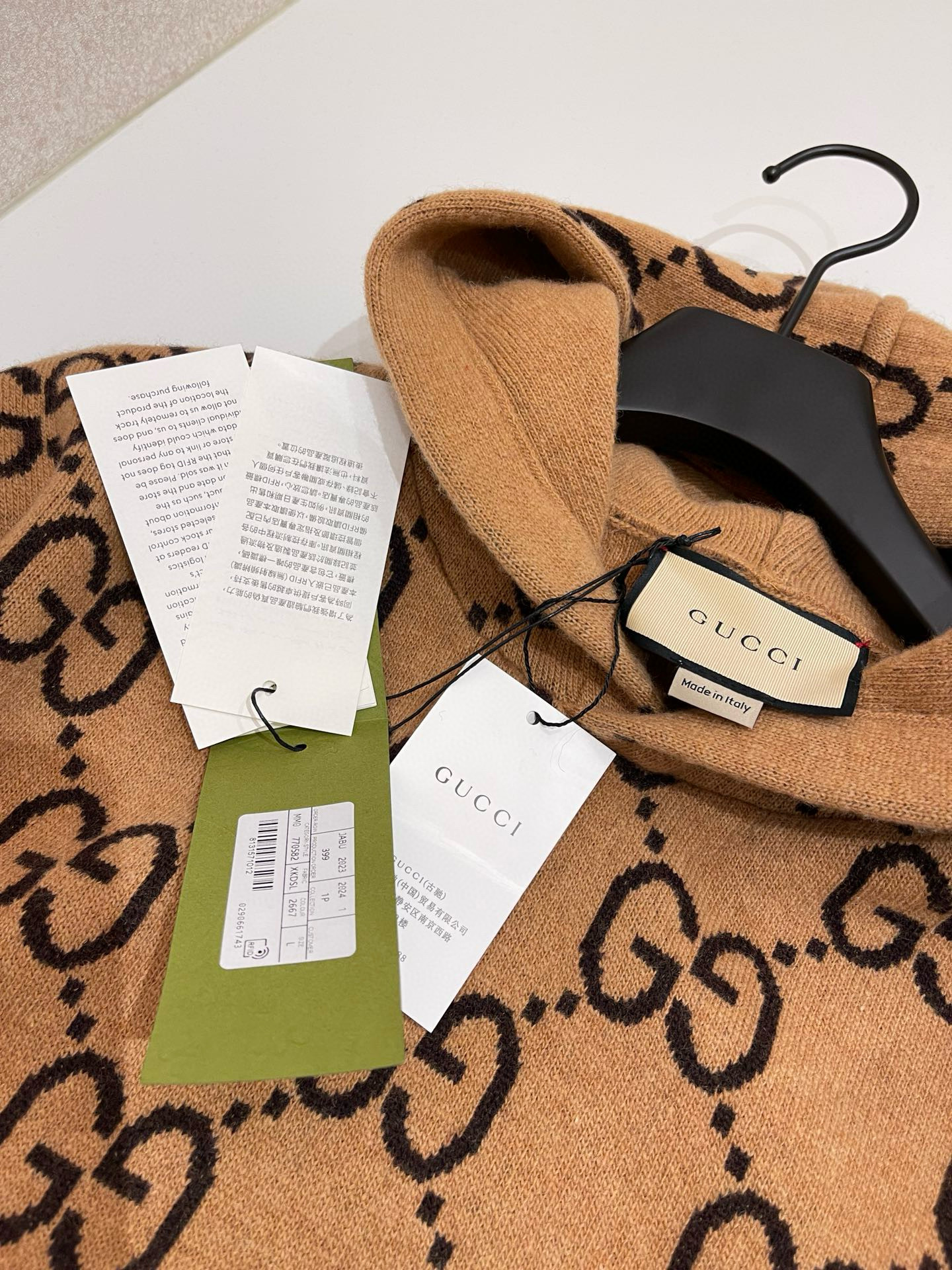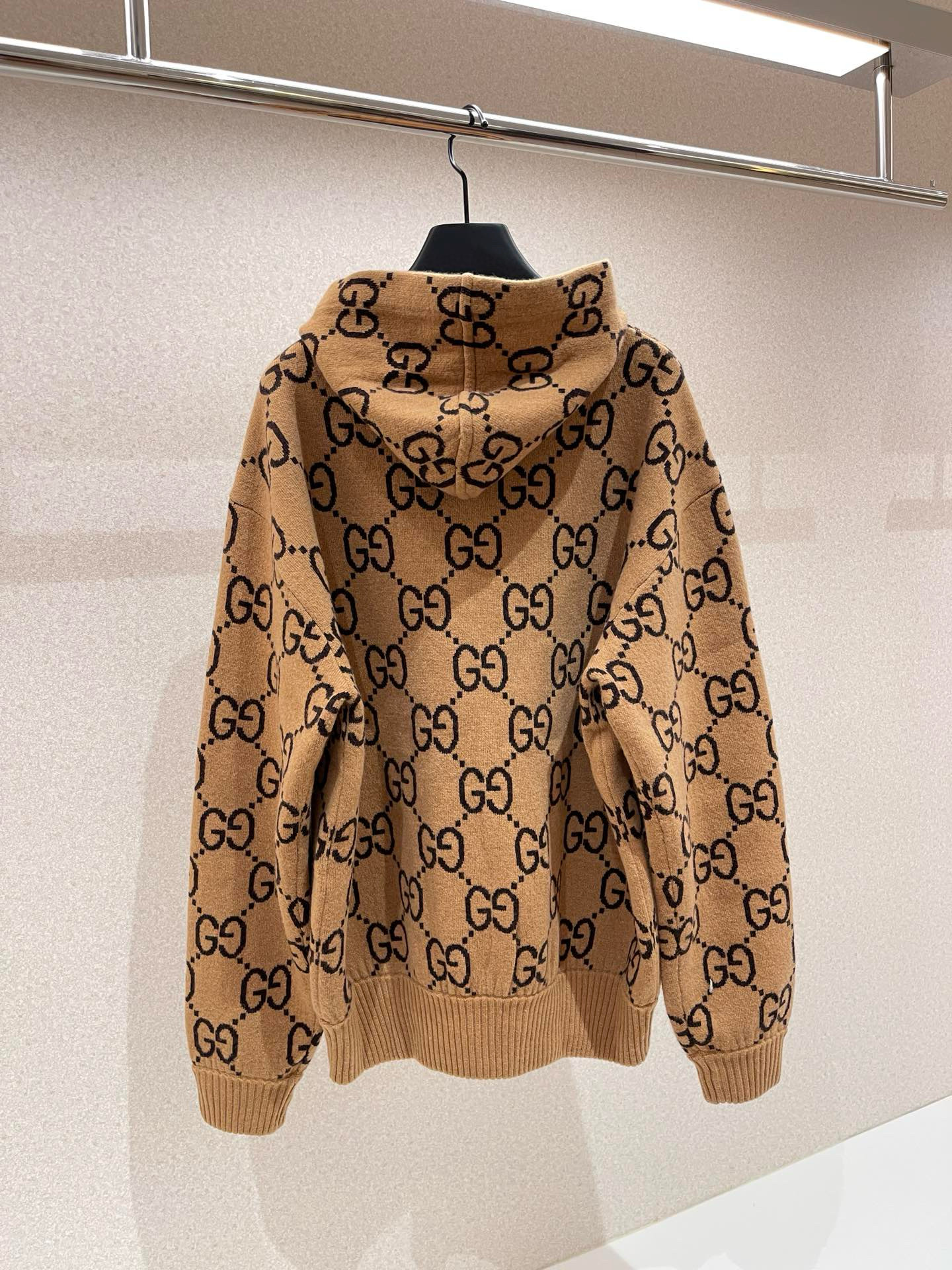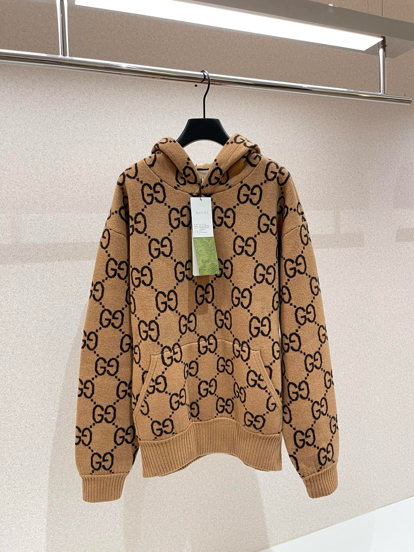 NIGO Gucci Men's Spring/Summer Khaki Logo Print GG Wool Hooded Sweatshirt Pullover #nigo97596