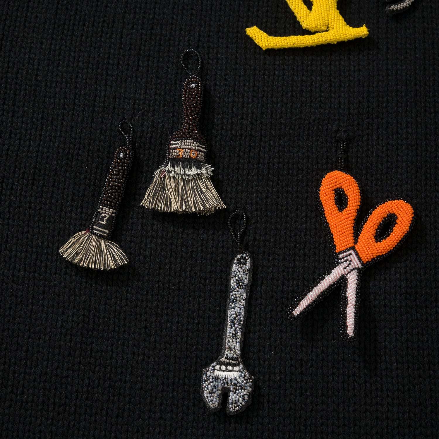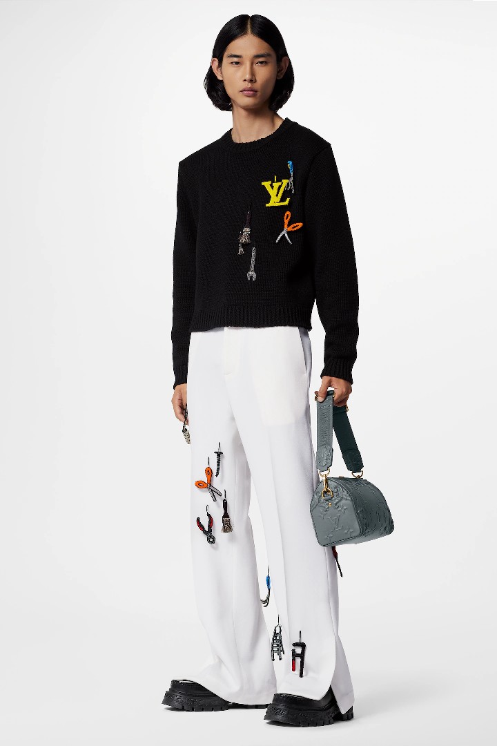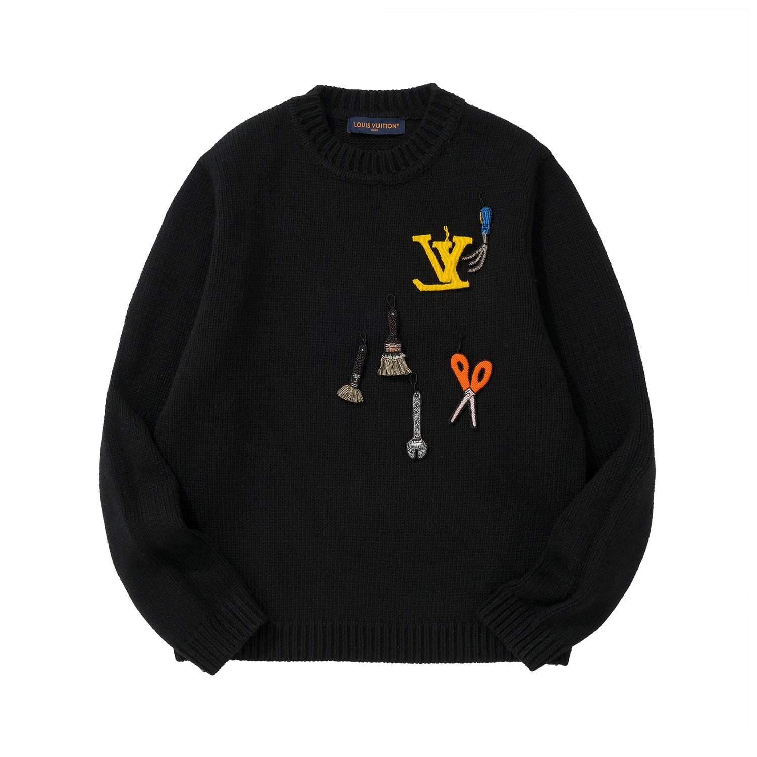 NIGO Louis Vuitton Men's Autumn and Winter Black Embroidered Letter Logo Tool Pattern Round Neck Long Sleeve Sweater Pullover #nigo73158