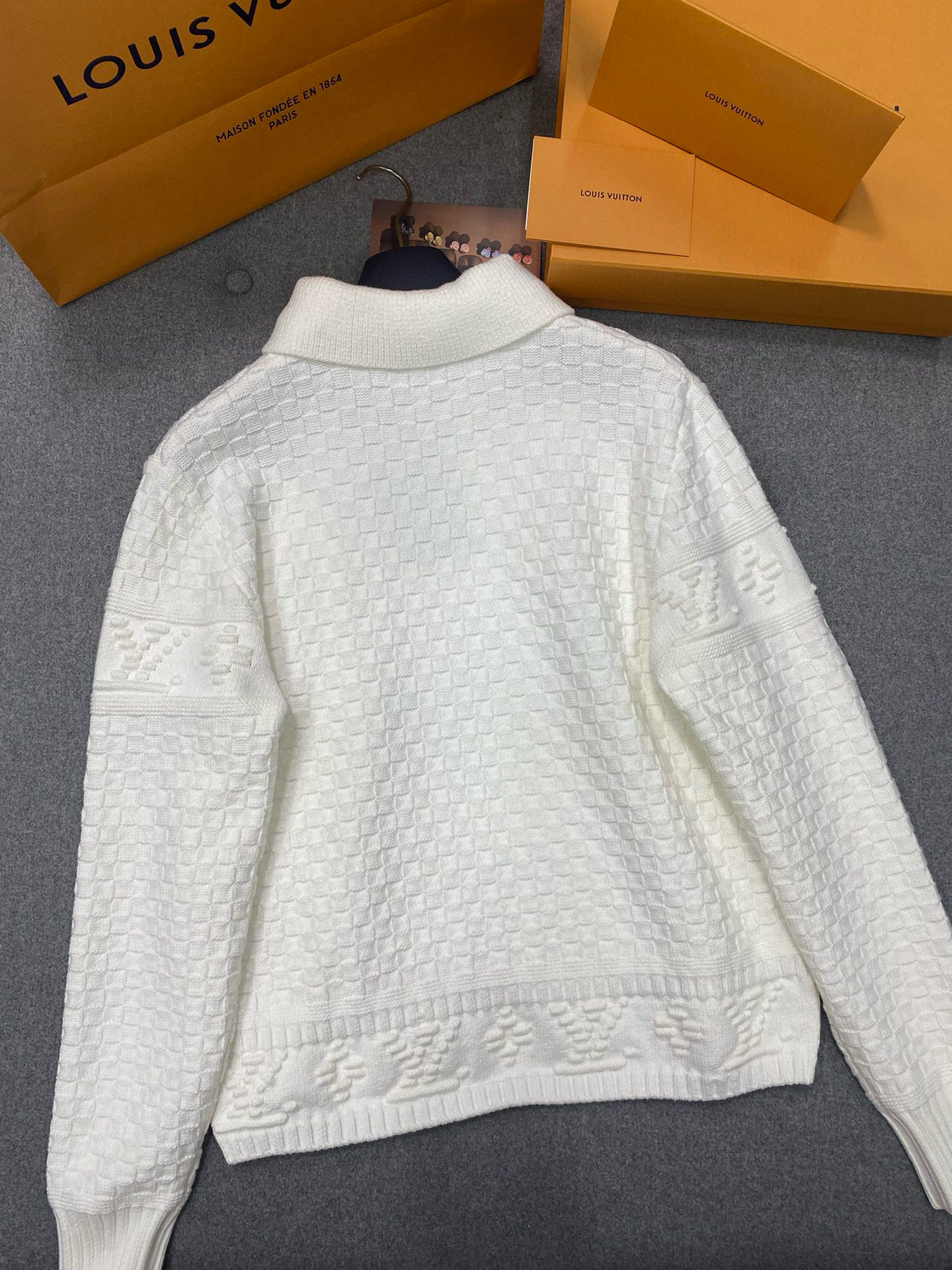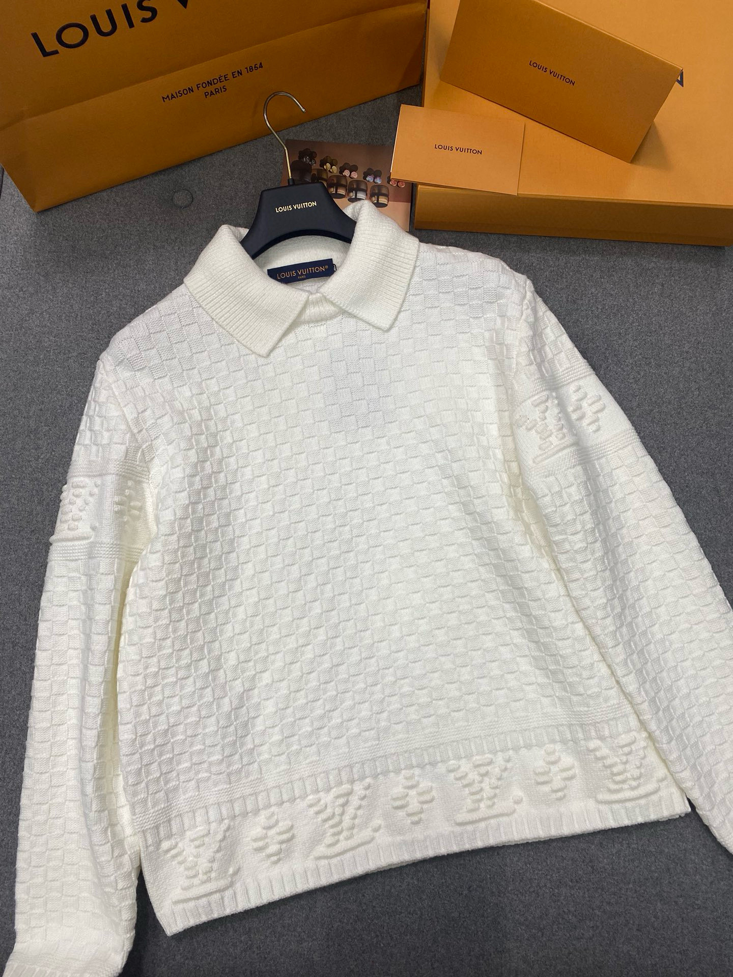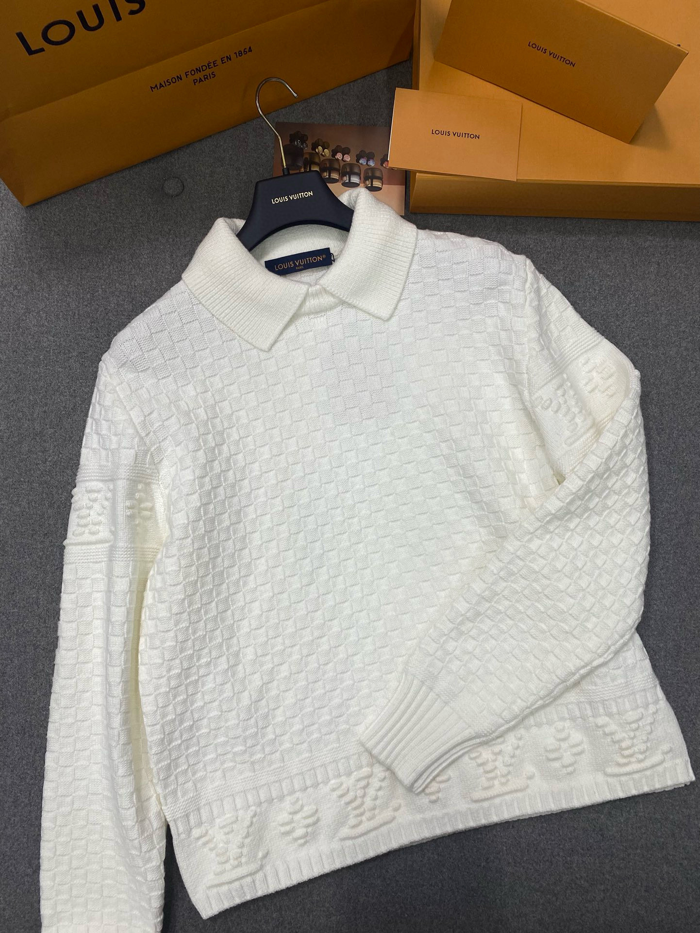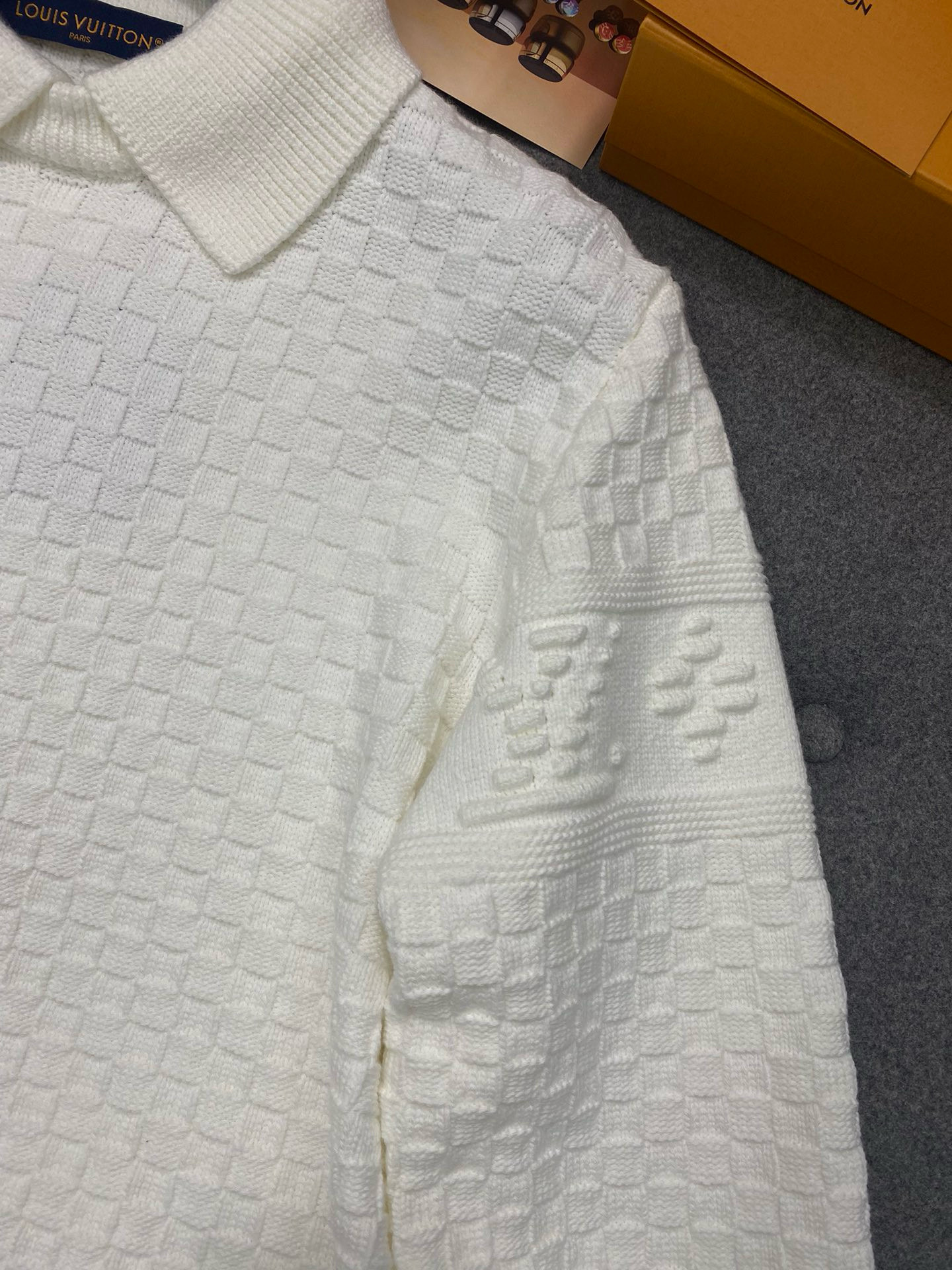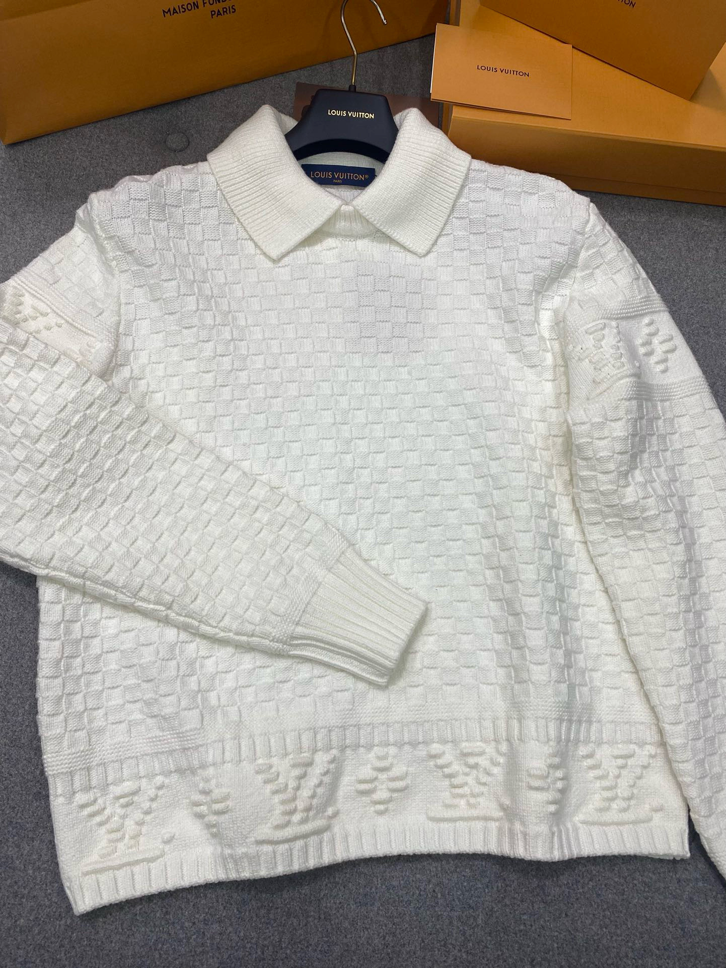 NIGO Louis Vuitton Men's Autumn/Winter White Lapel Knit Sweater LV Damier Wool Blend Pullover #nigo97613