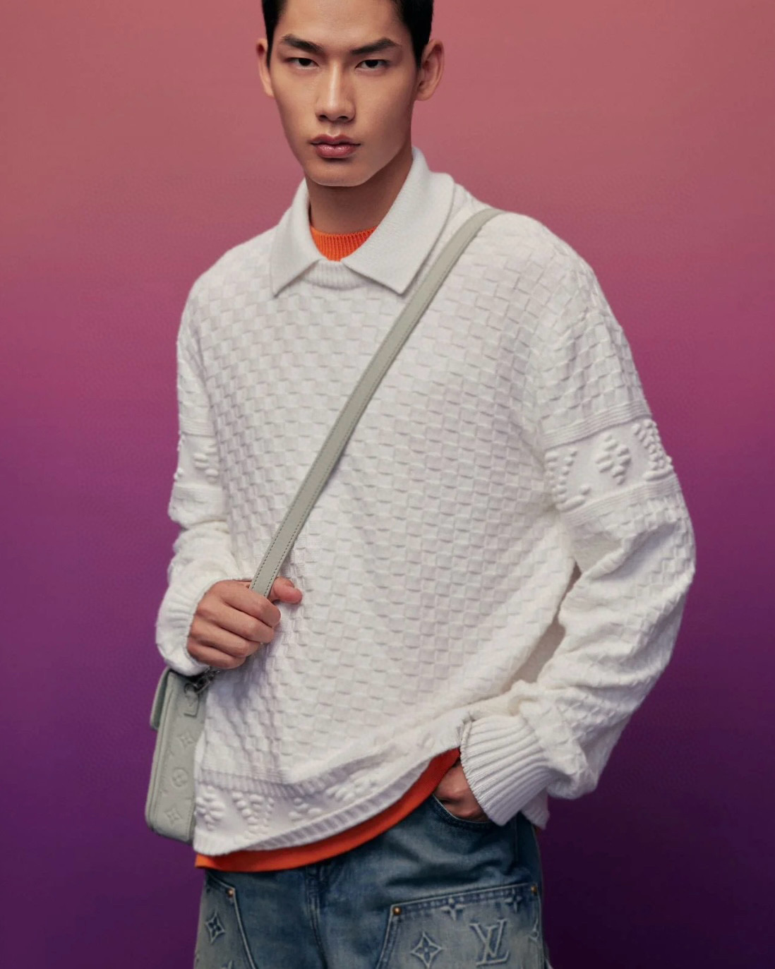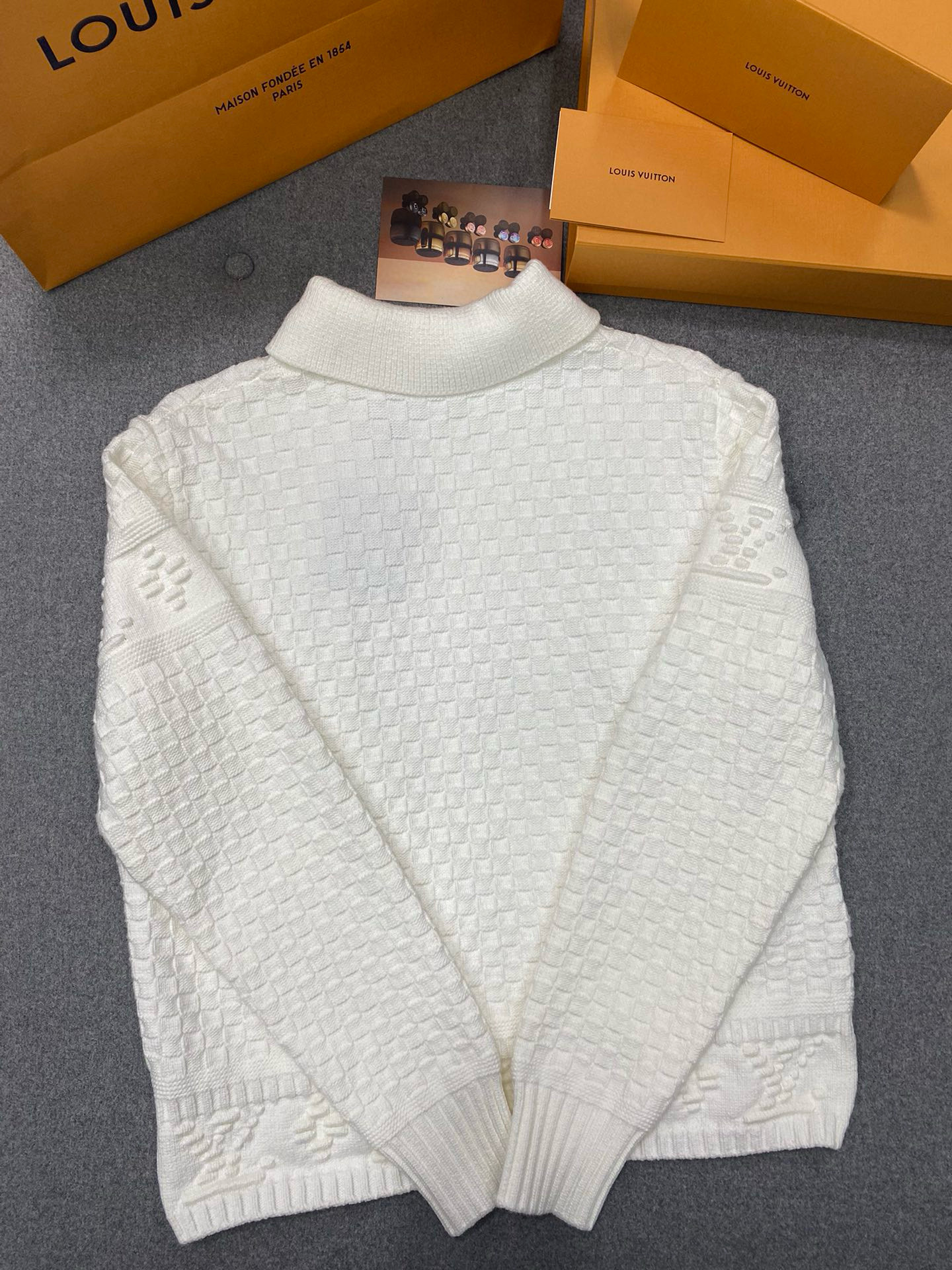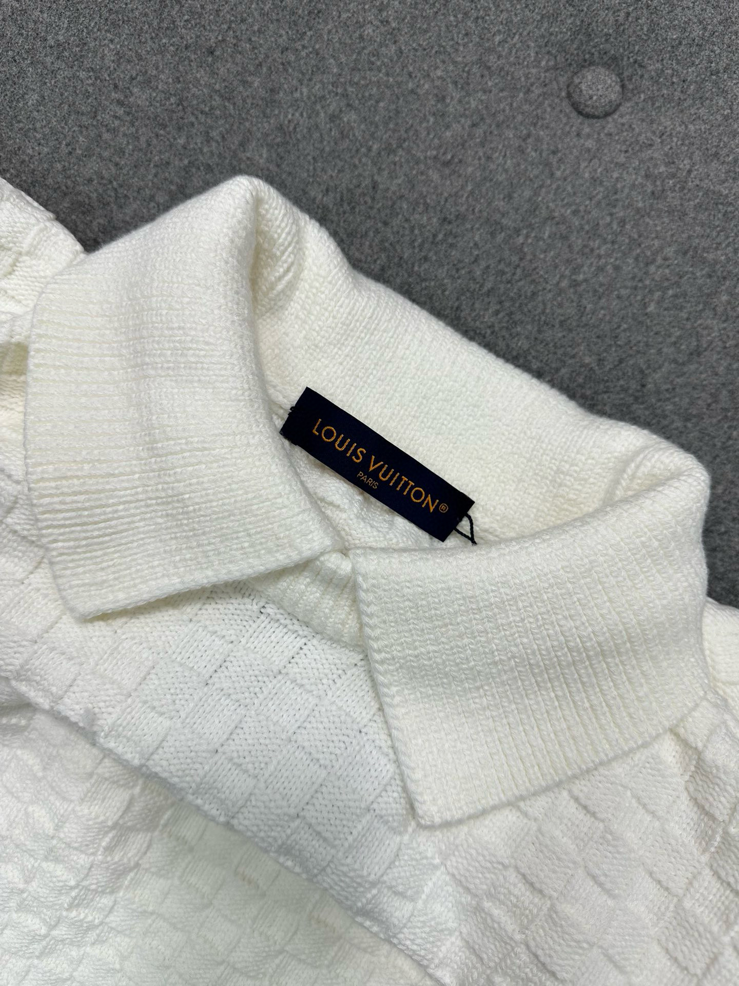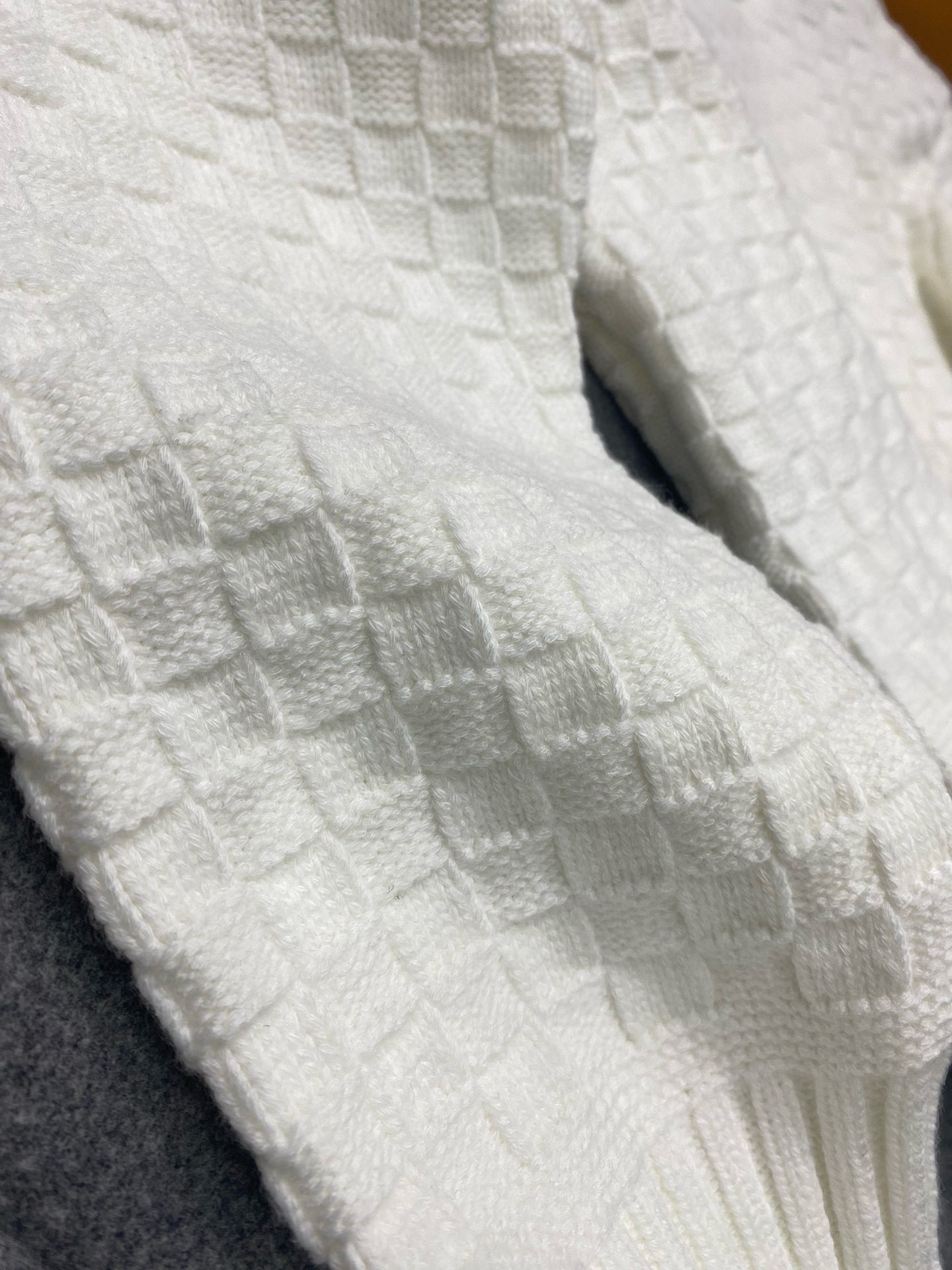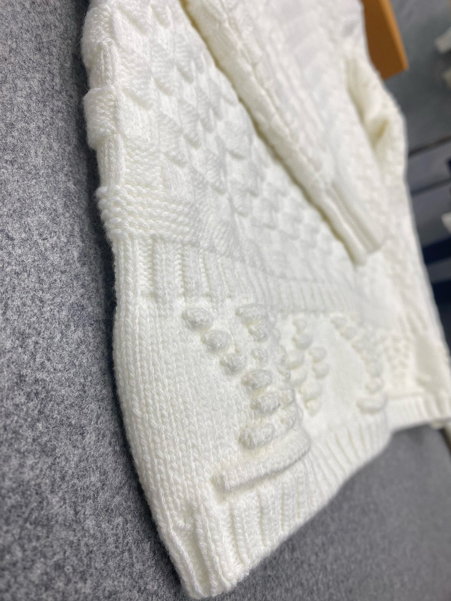 NIGO Louis Vuitton Men's Autumn/Winter White Lapel Knit Sweater LV Damier Wool Blend Pullover #nigo97613