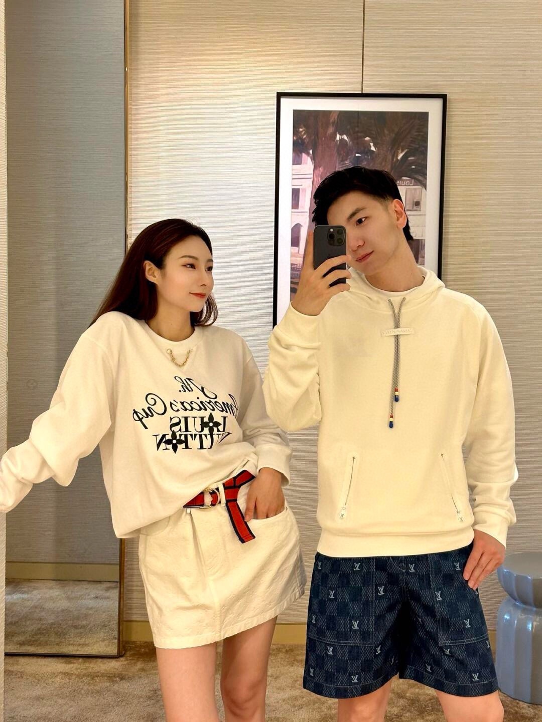 NIGO Louis Vuitton Men's Fall/Winter White Hooded Drawstring Logo Long Sleeve Sweatshirt Pullover #nigo72888